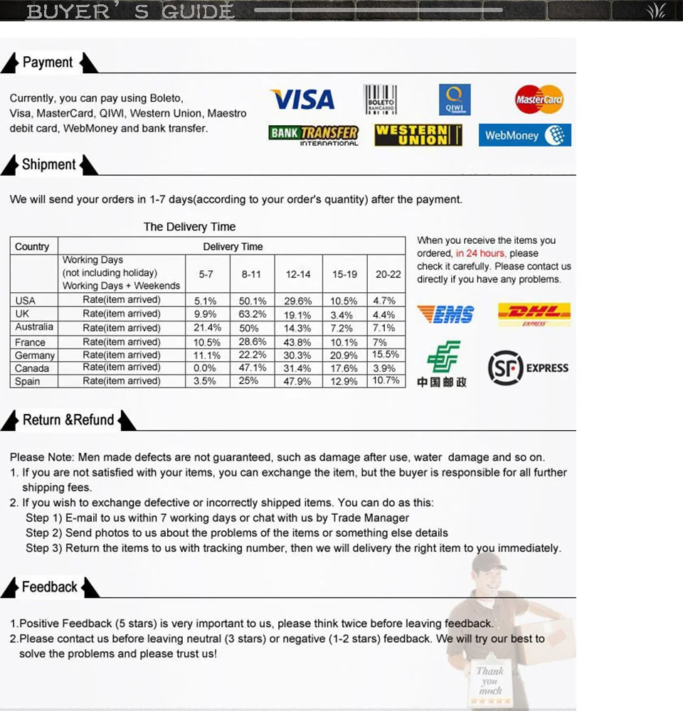 *You can submit refund requests within 15 days after the guaranteed period for delivery (45 days) has expired. You can do it by sending a message on Contact Us page
