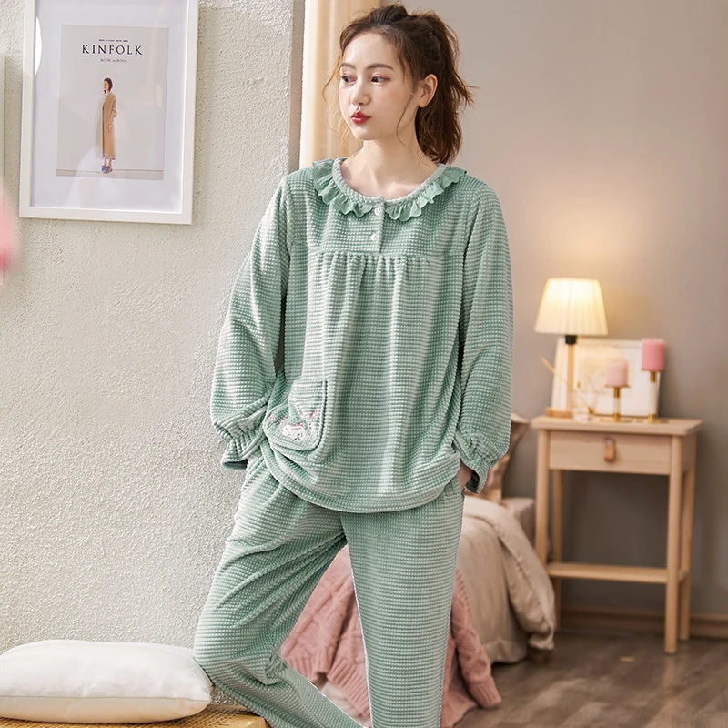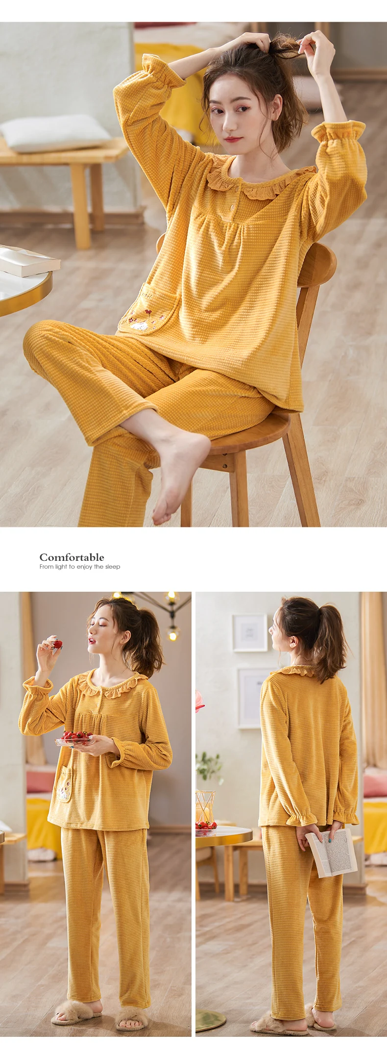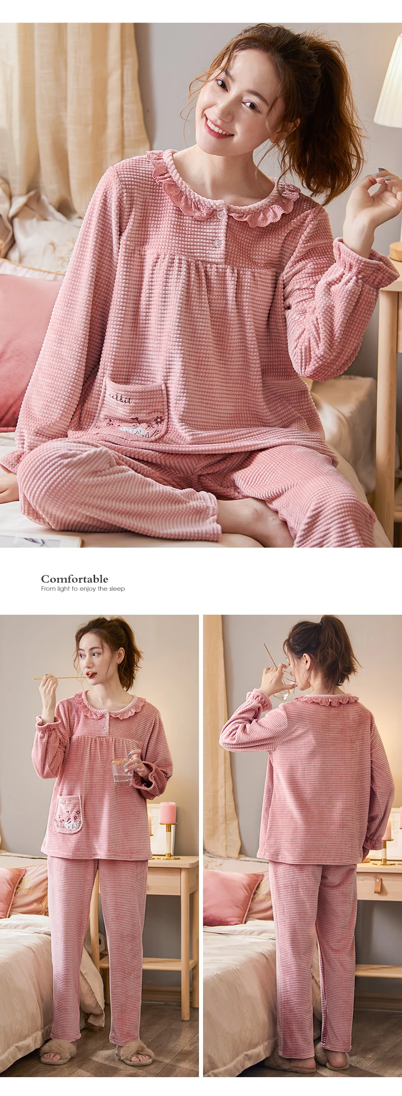 Warm Island Velvet Pajamas Winter Women Two Pieces Pajama Set Cartoon Print Female Sleepwear Home Clothing Women’s Pajamas Suit