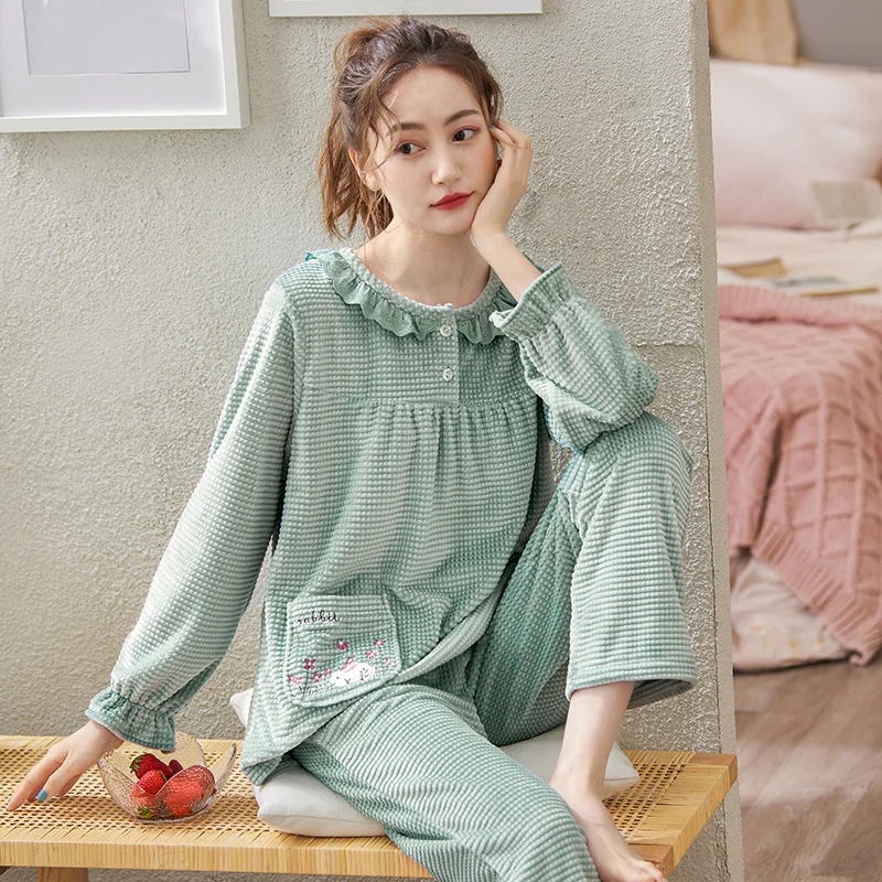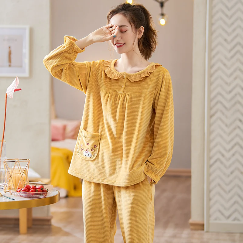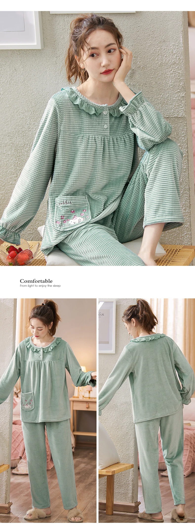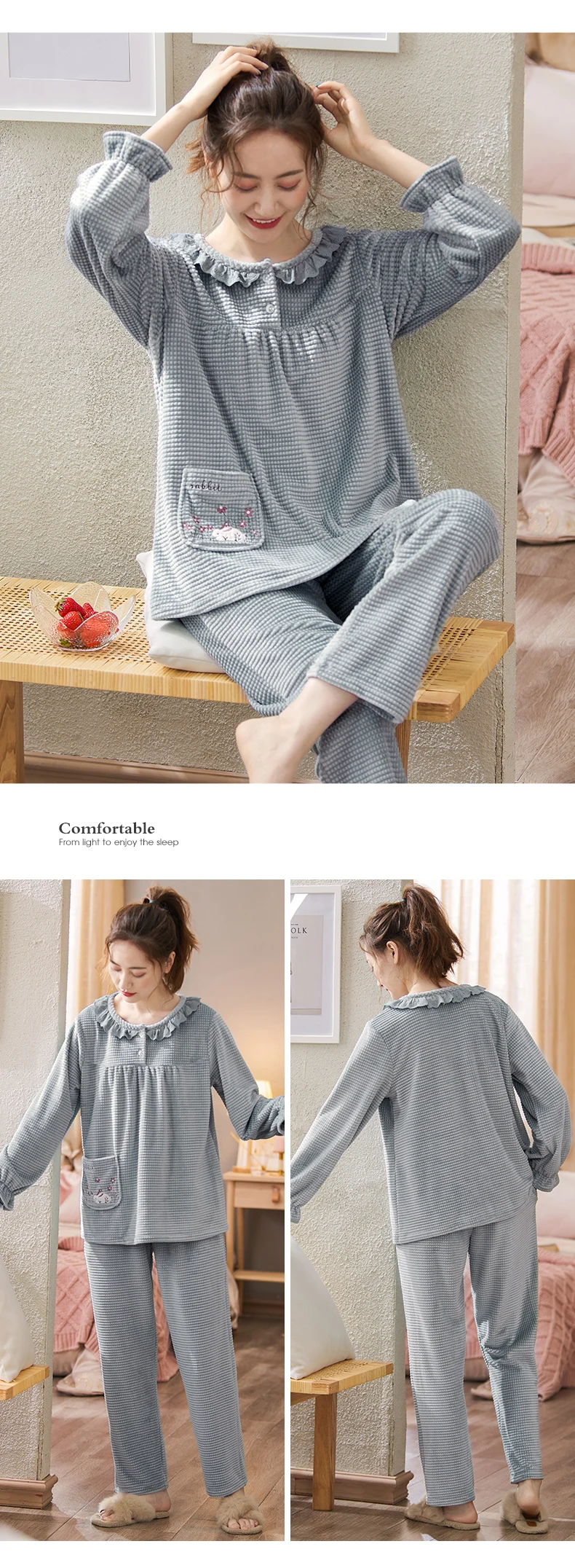 Warm Island Velvet Pajamas Winter Women Two Pieces Pajama Set Cartoon Print Female Sleepwear Home Clothing Women’s Pajamas Suit