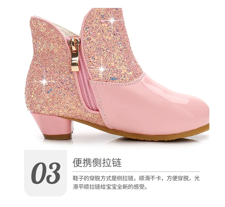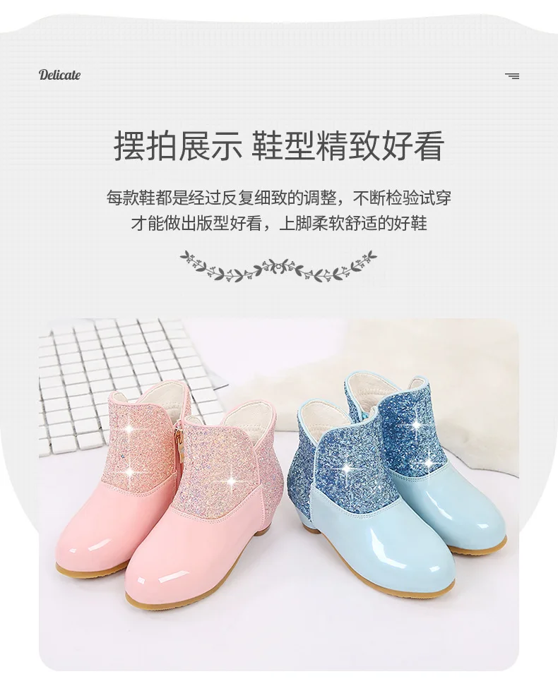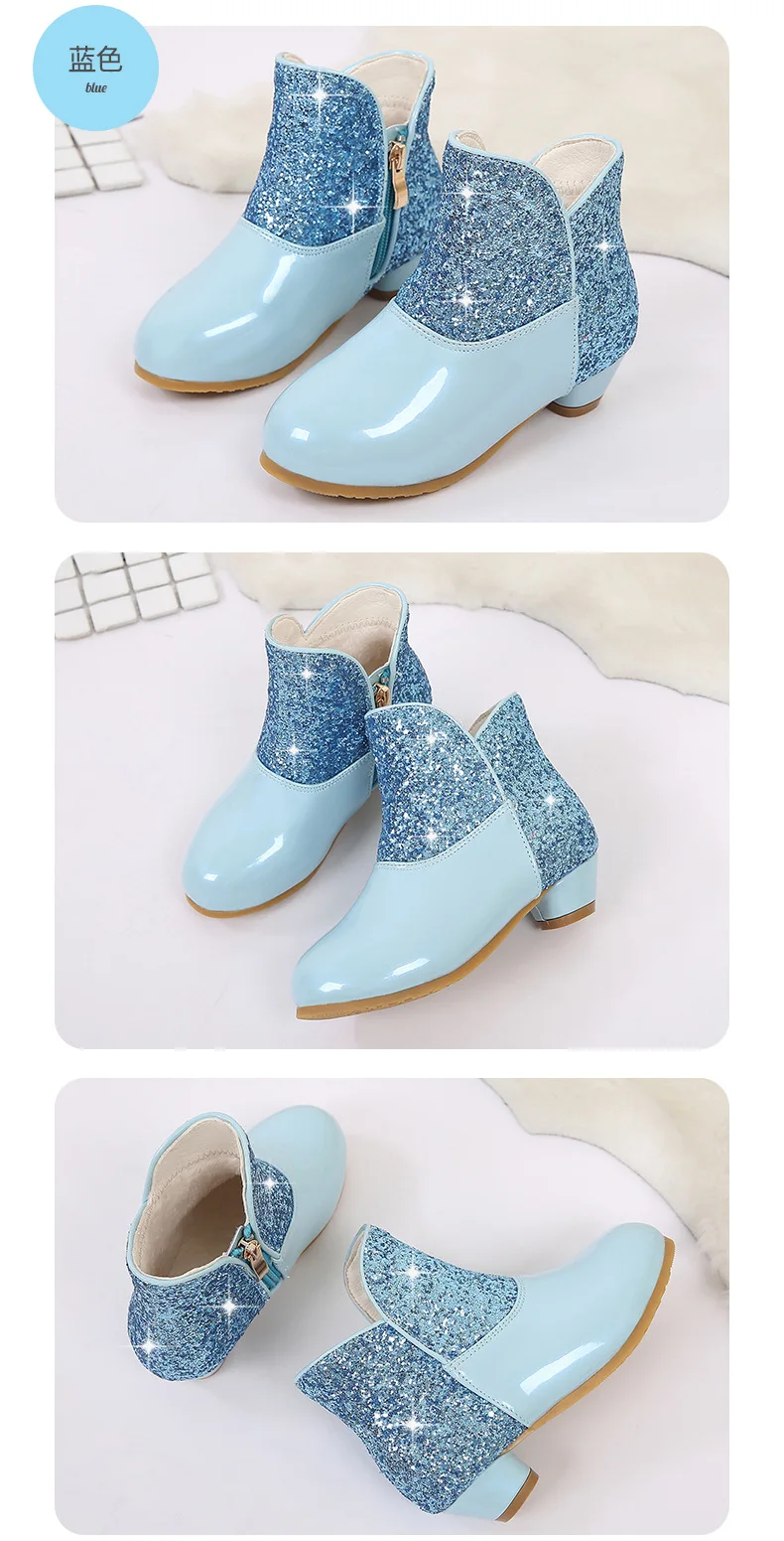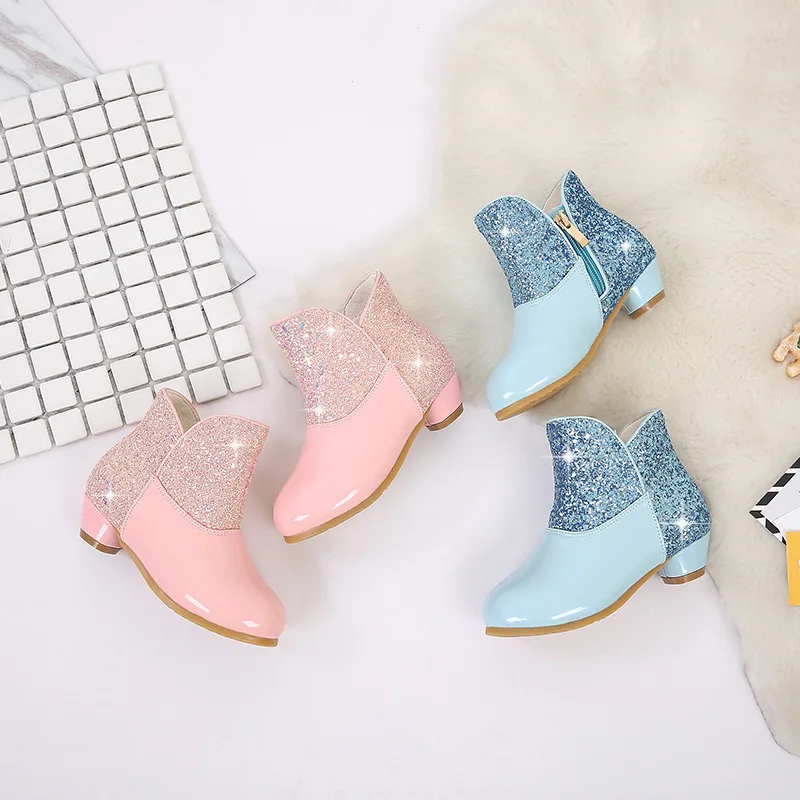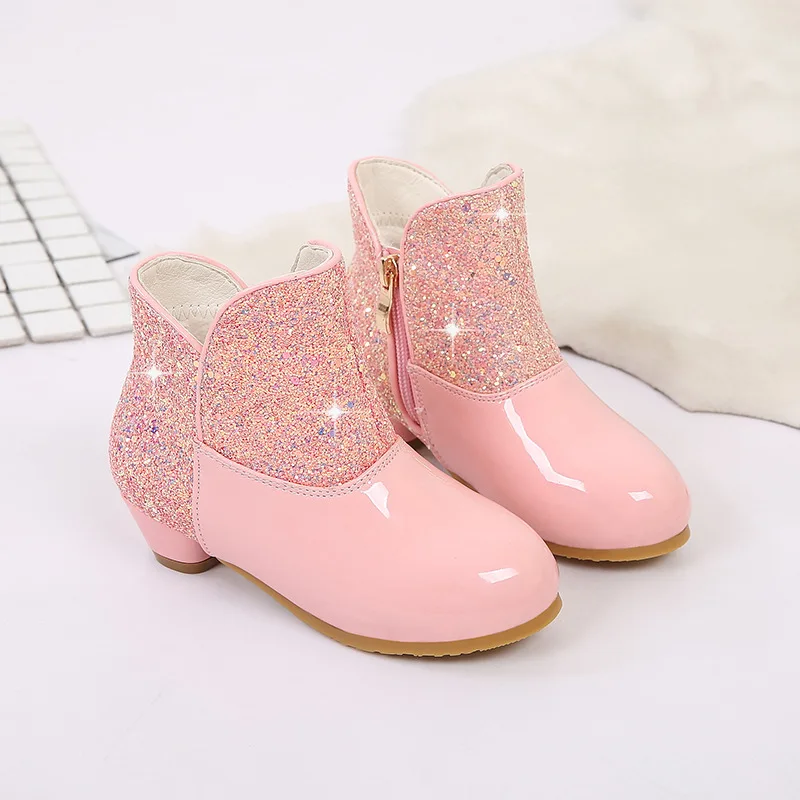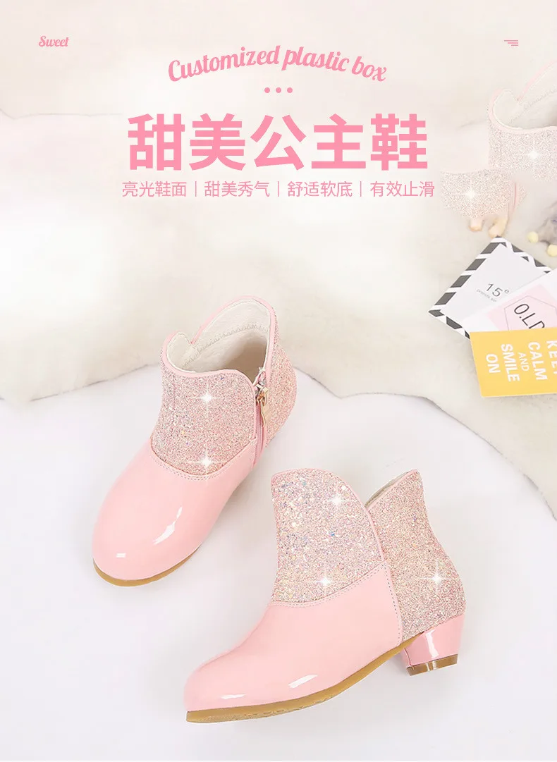 Warm Plush Party Dancing Shoes Sequins Bling Children Winter Boots Girls Princess Shoes Low Heeled Kids Botas Side Zipper Shoes