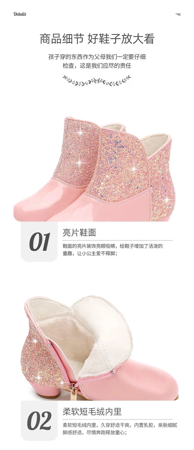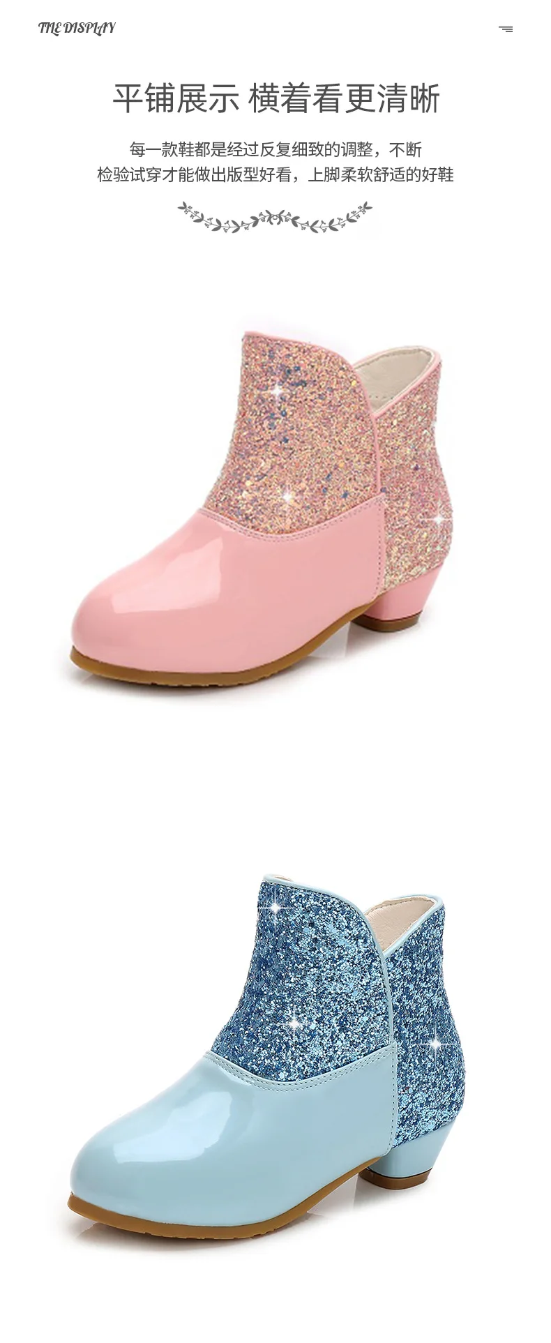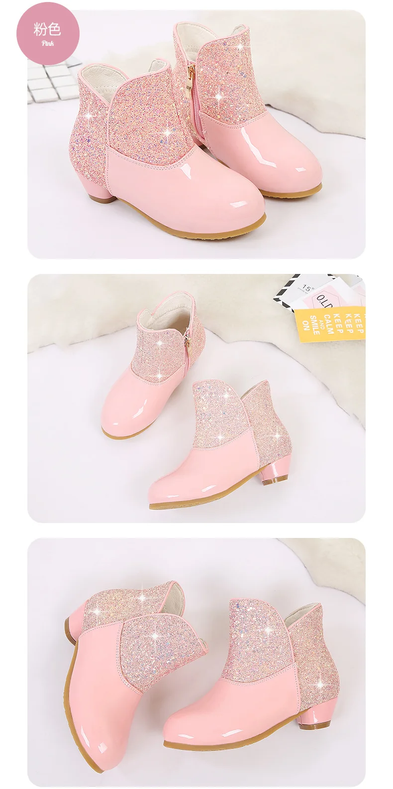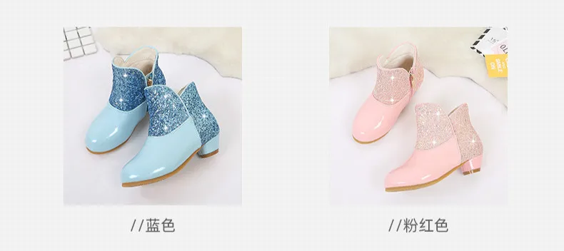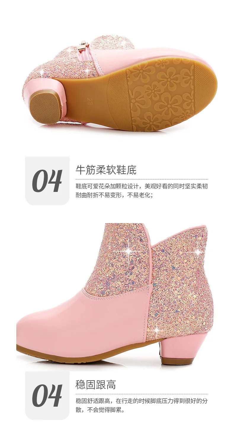 Warm Plush Party Dancing Shoes Sequins Bling Children Winter Boots Girls Princess Shoes Low Heeled Kids Botas Side Zipper Shoes
