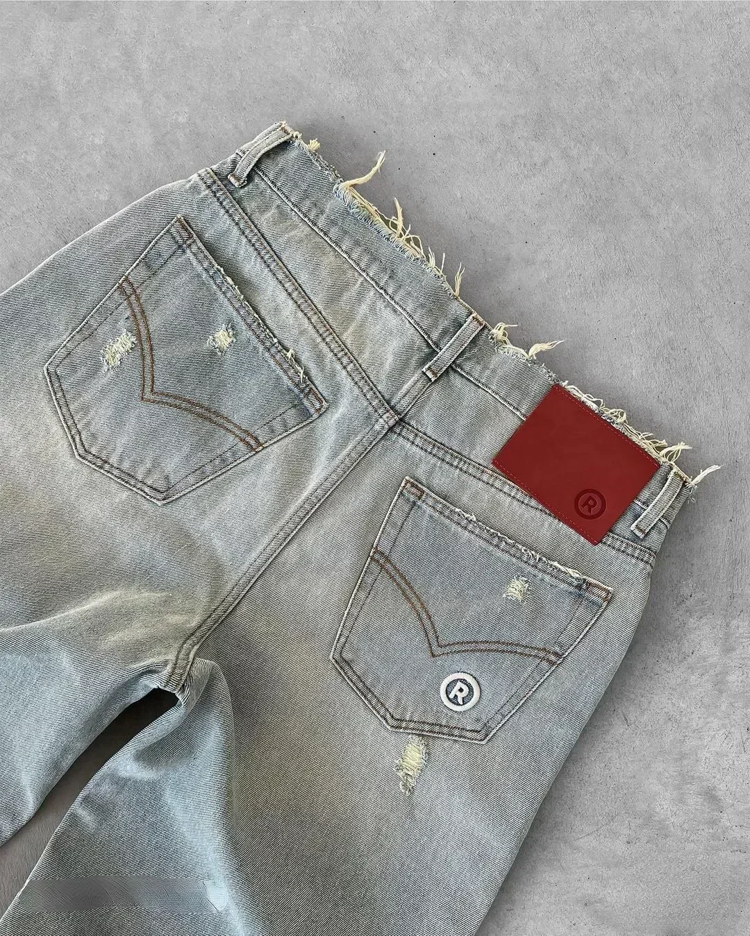 Washed Ripped Jeans Men’s American Retro High Street Couple Bag Embroidery Quality is higher than peers in all seasons