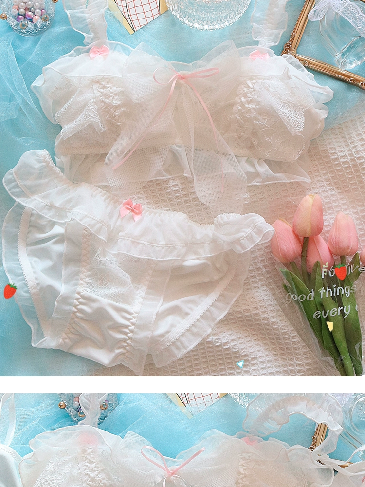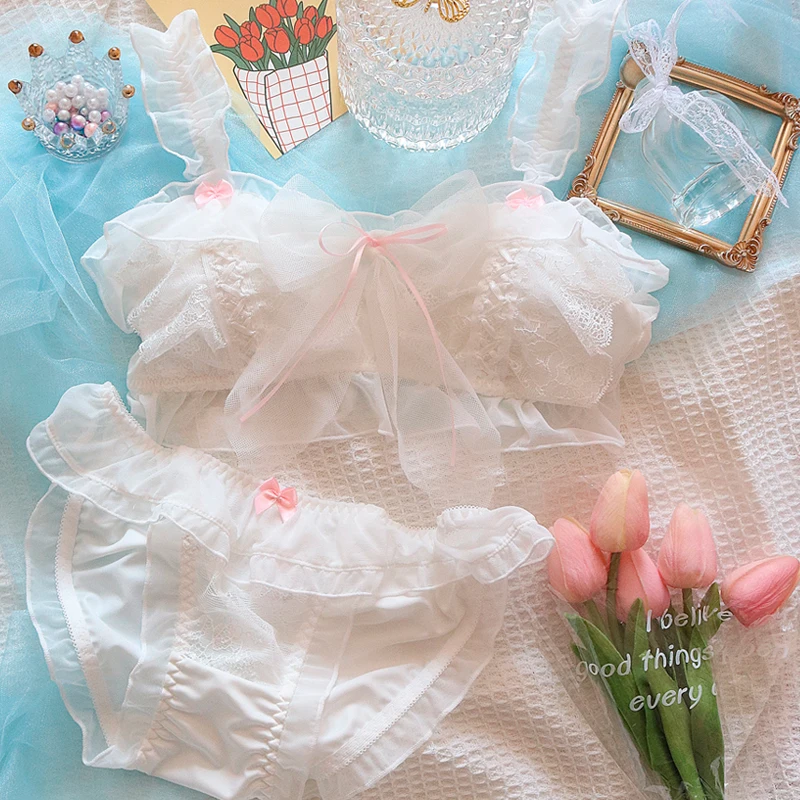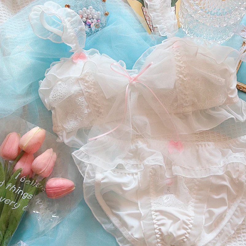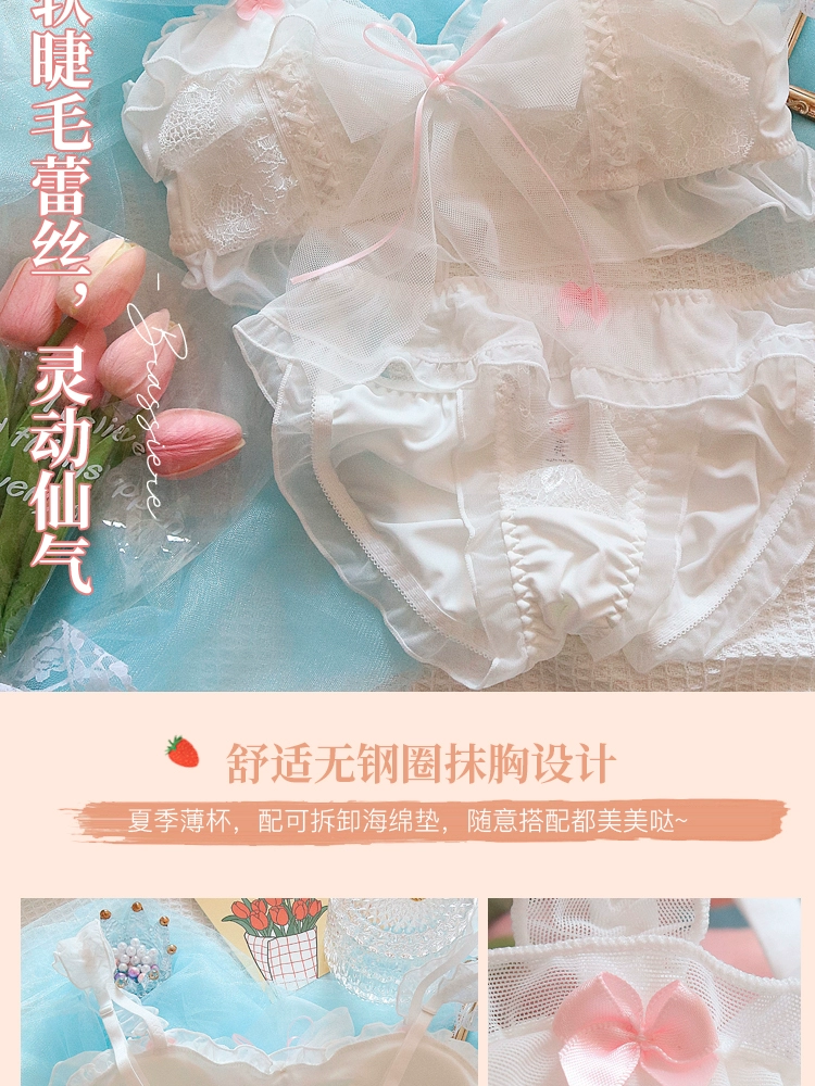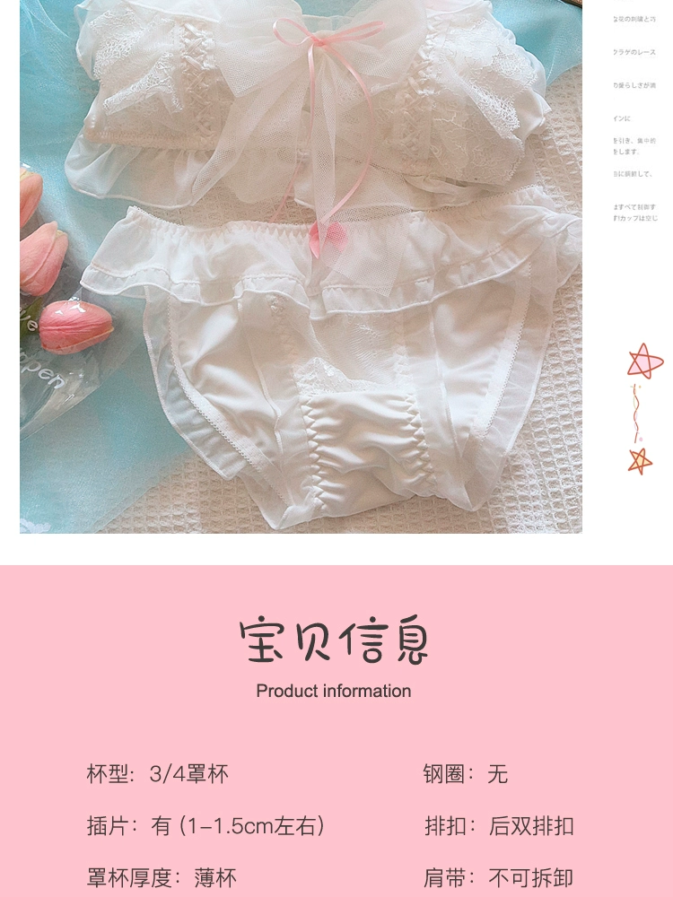 White bralette girl underwear lace summer thin fairy no steel ring bra set comfortable ladies bow lingerie with underpants suit