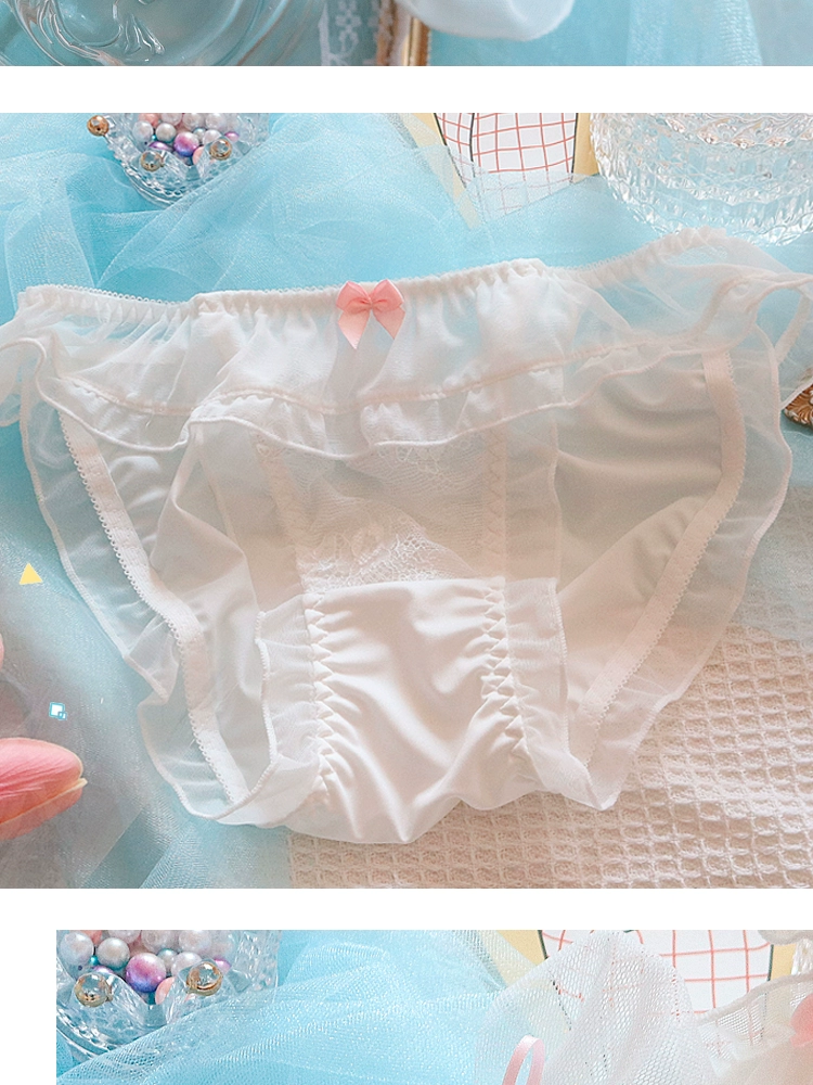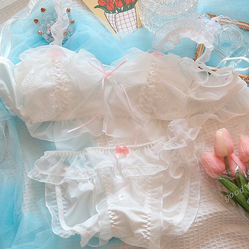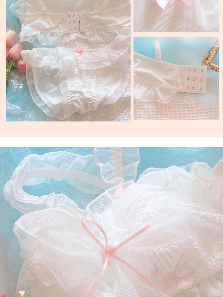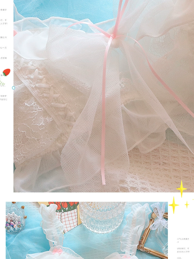 White bralette girl underwear lace summer thin fairy no steel ring bra set comfortable ladies bow lingerie with underpants suit