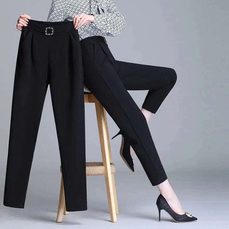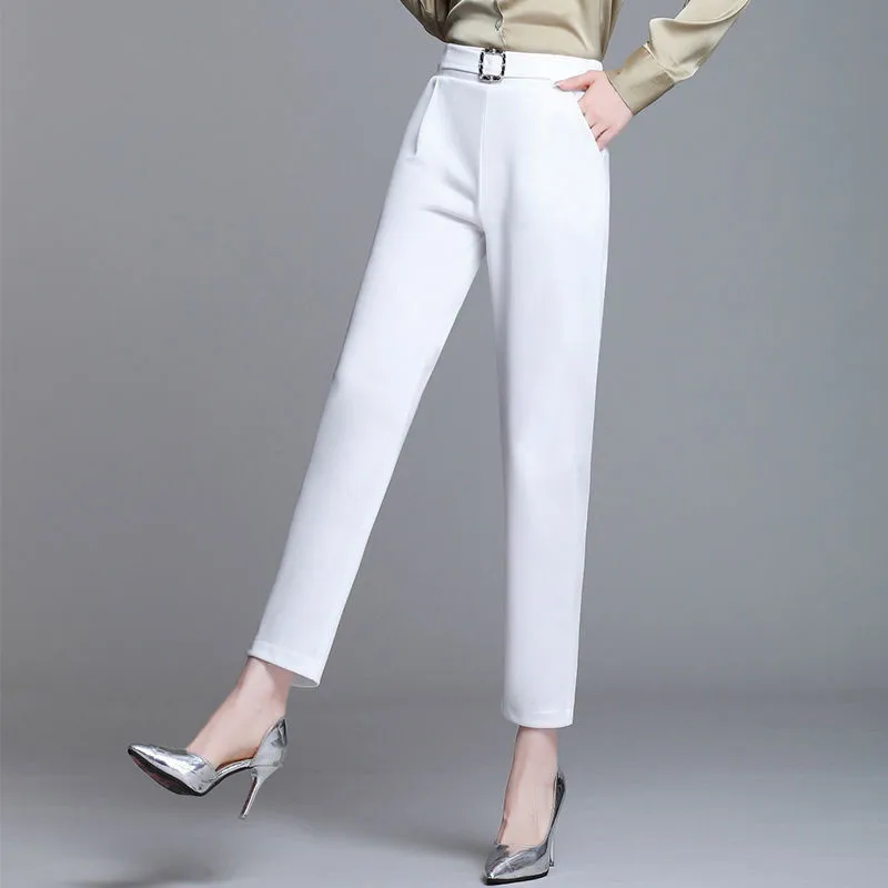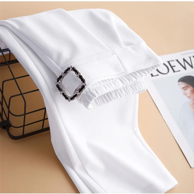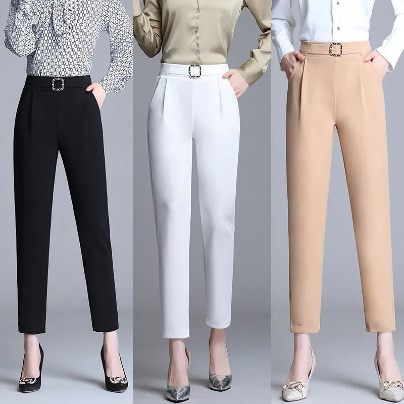 White Pants Women Elastic High-waisted Haren Pants Fashion Wild Professional Suit Pants Office Ladies Trousers Black Khaki Pants
