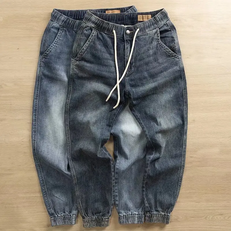 Wholesale 2022 New Denim Men’s Stretwear Beam-legged Harem Pants for Young Students Loose Drawstring Sweatpants Baggy Jeans