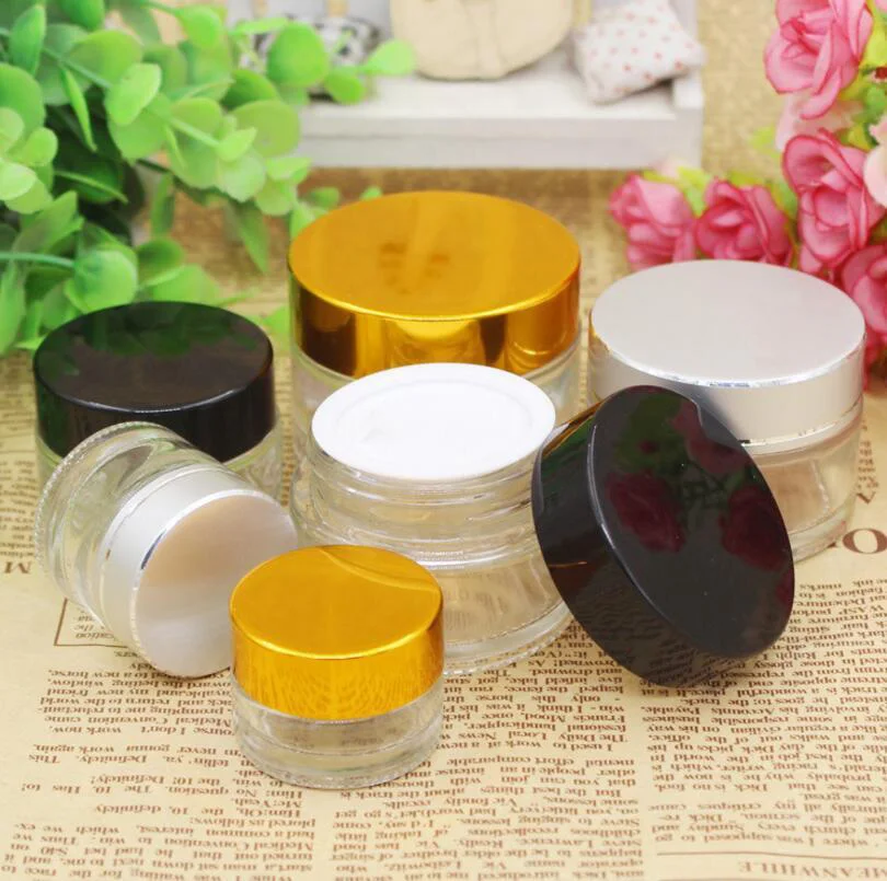 Wholesale 5G glass cream container,5ml glass cream jar with gold/silver/black cap, 5g glass cosmetic case