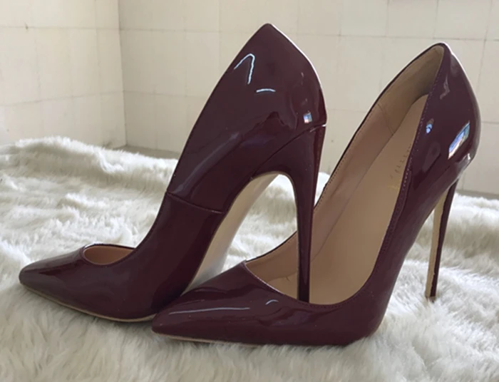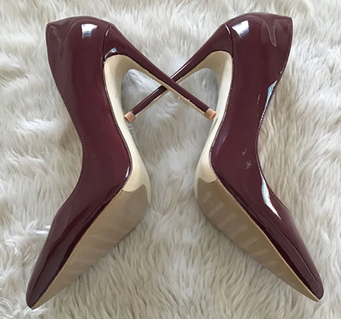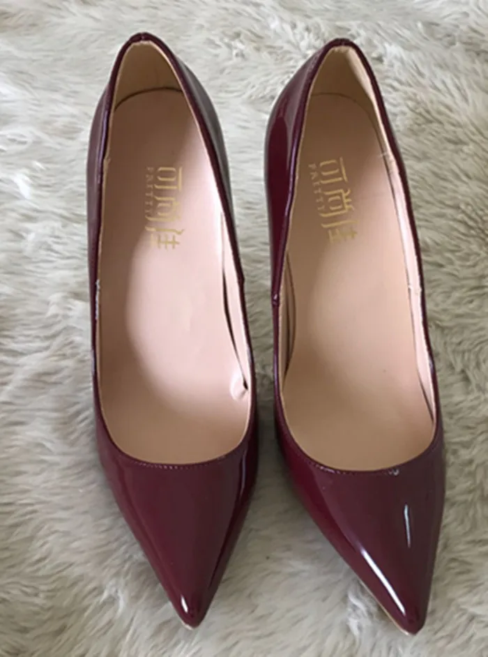 Wine red high heel shoes pointed shoes shallow mouth single shoes 10cm 12cm ladies banquet shoes