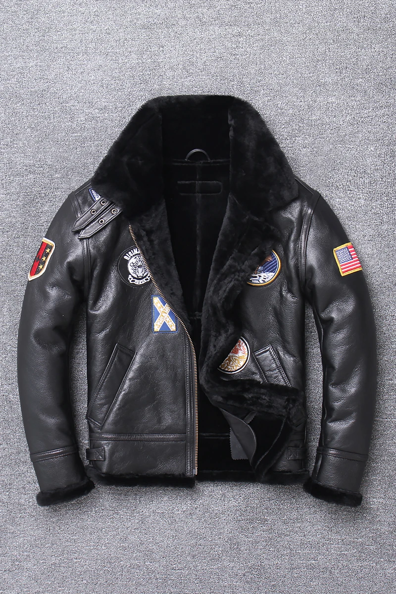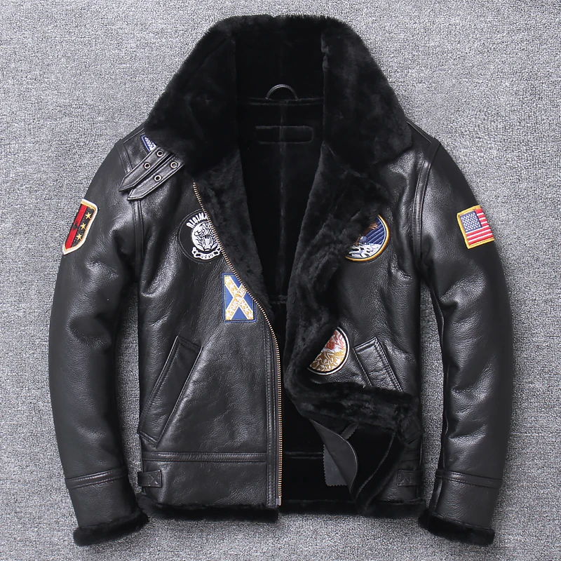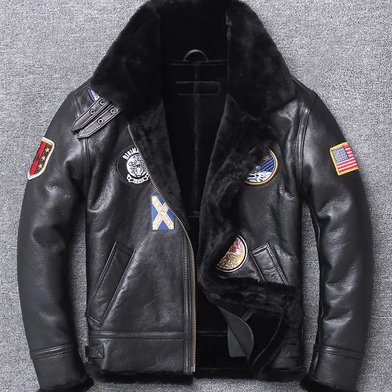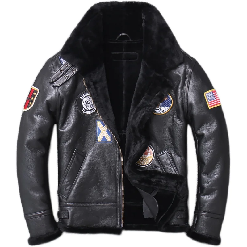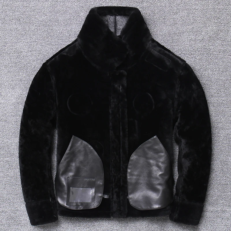 Winter 100%Original lamb fur and fur imported from Australia multi standard Jacket flight suit Genuine Leather Male Coat