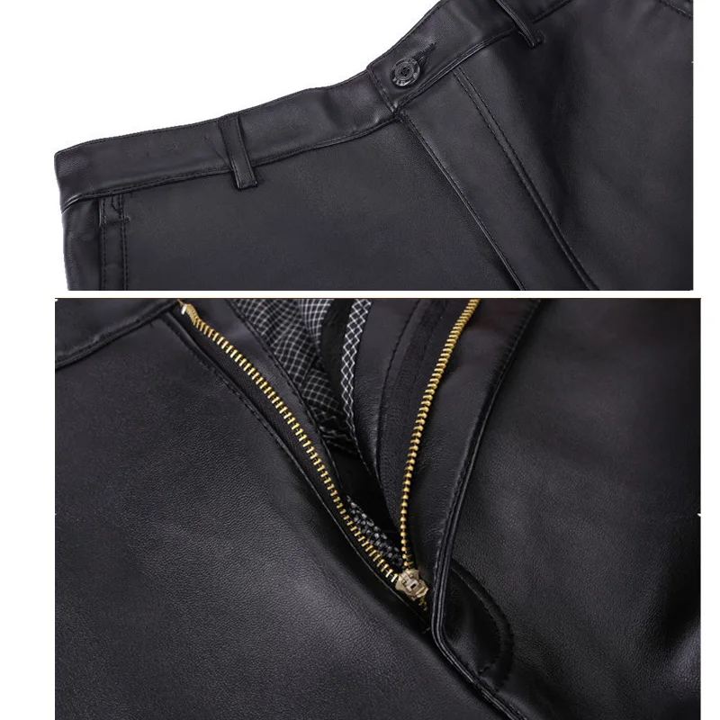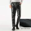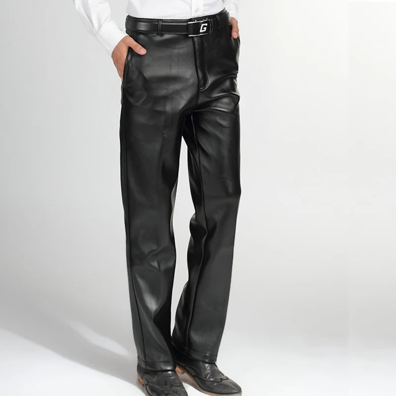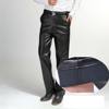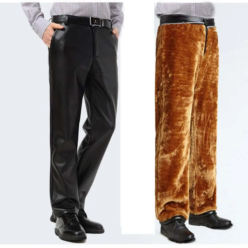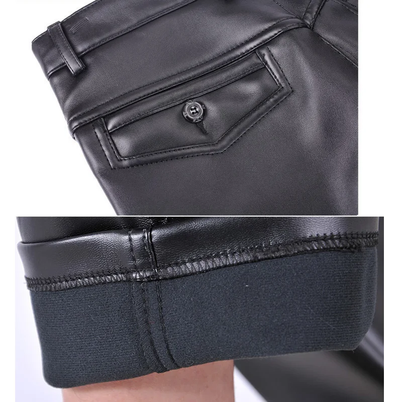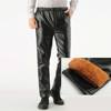 Winter 2022 Indoor Fleece Thicken Casual Business Black Straight Slim Fit PU Leather Wool Middle-aged Men Warm Plus Size 29-45