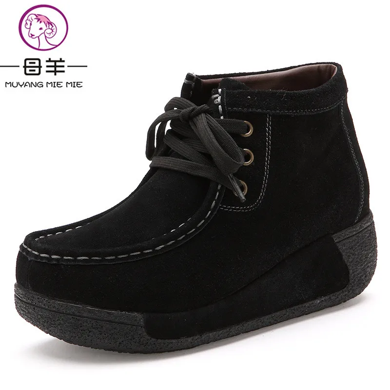 Winter Ankle Boots Women Genuine Leather Flat Snow Boots Women’s Platform Casual Warm Shoes Women Boots