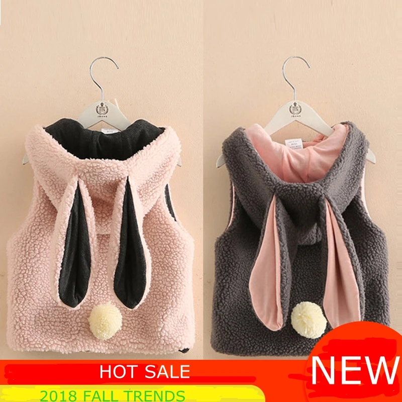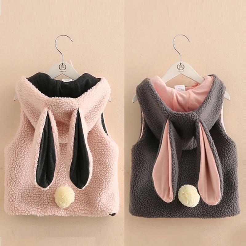 Winter Autumn Baby Girls Coat Sleevless 3D Rabbit Ears Fashion Hooded Vest Kids Clothes Clothing Children Outerwear Waistcoats