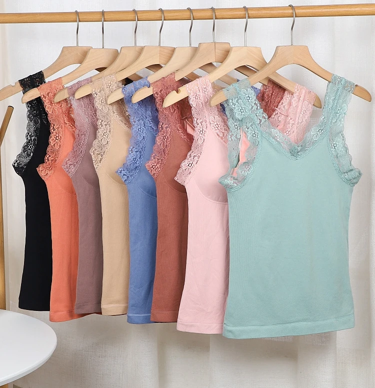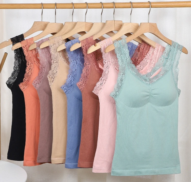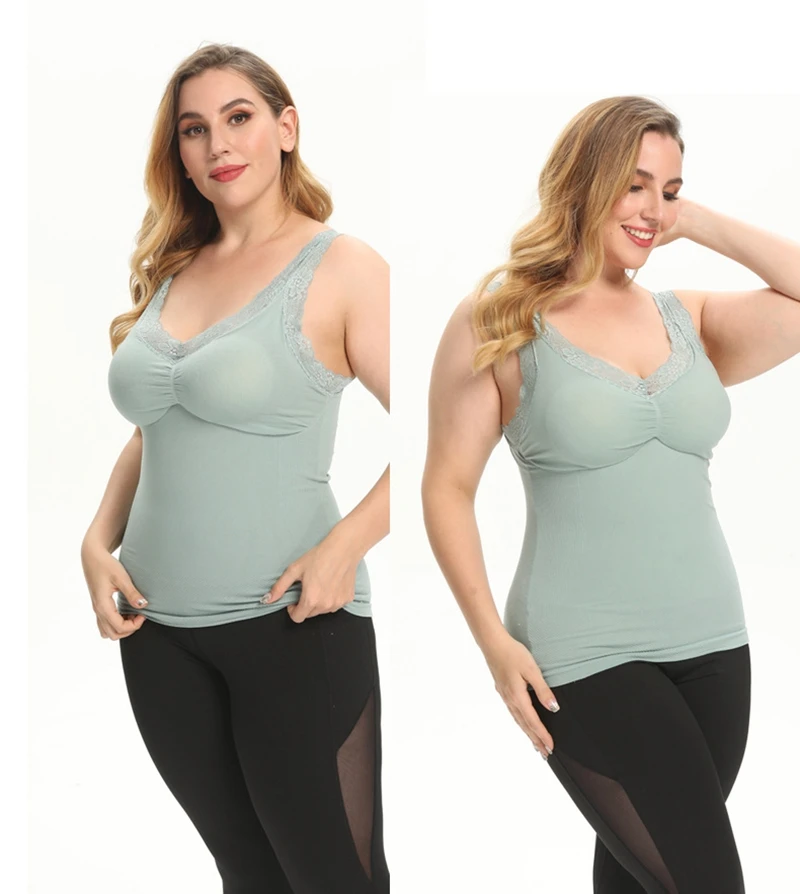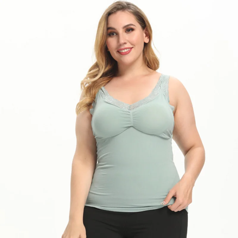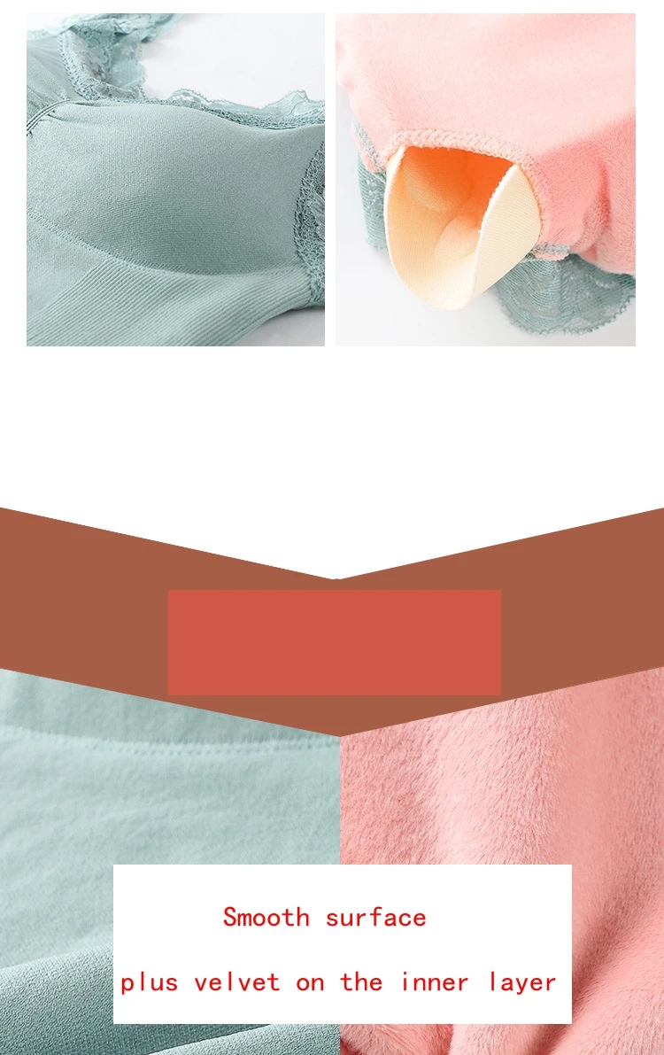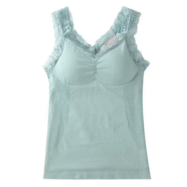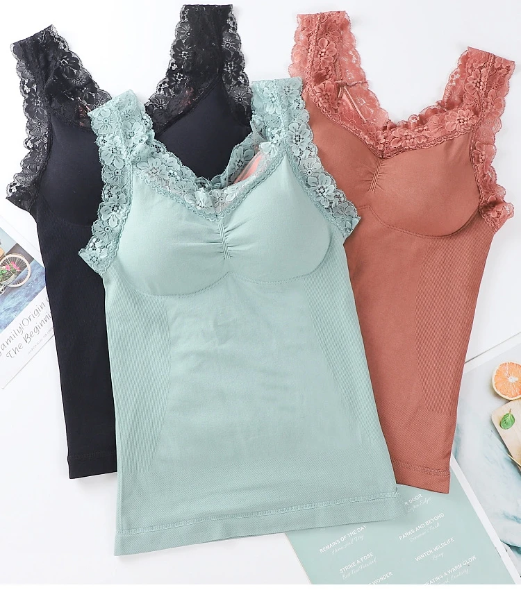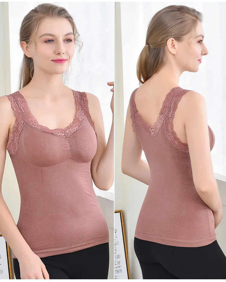 Winter Autumn Plus Velvet Thick Warm Thermal Vest Underwear Lace Soft Elastic Slim Fleece Tank Tops With Chest Pad
