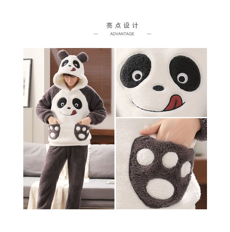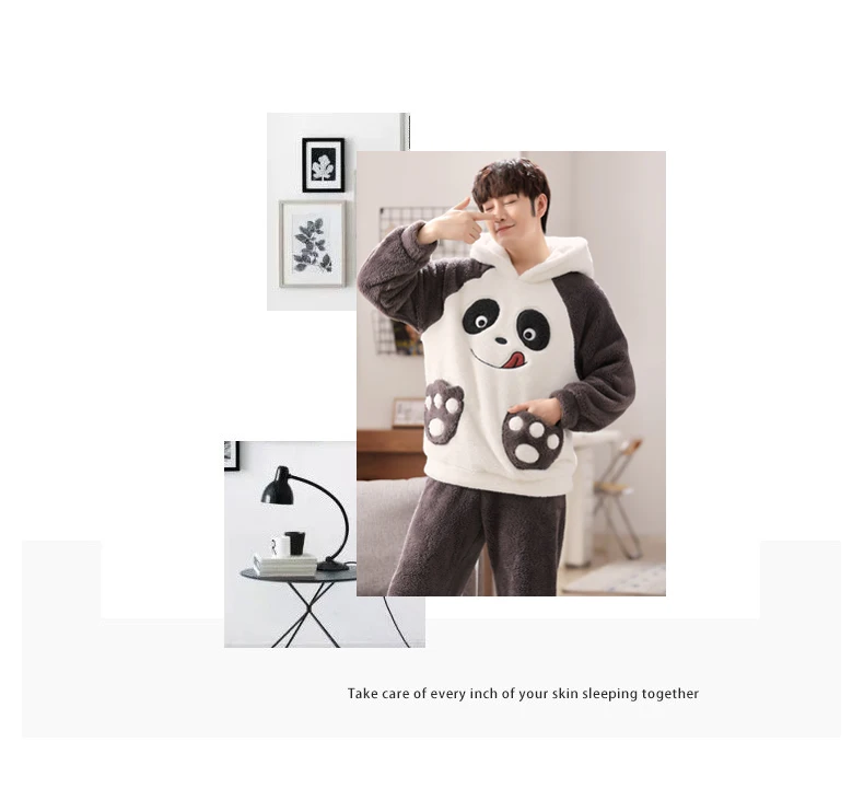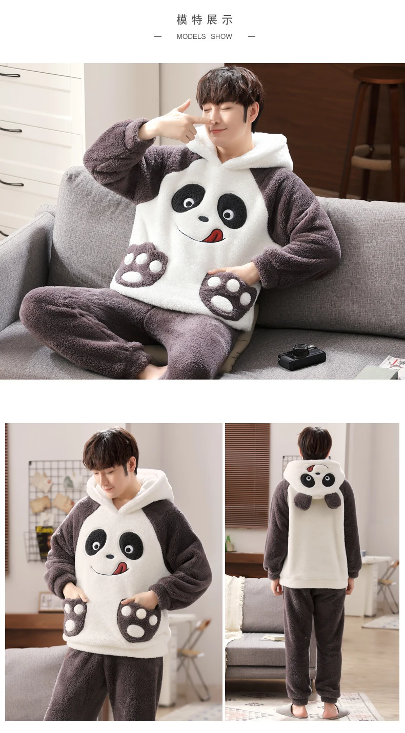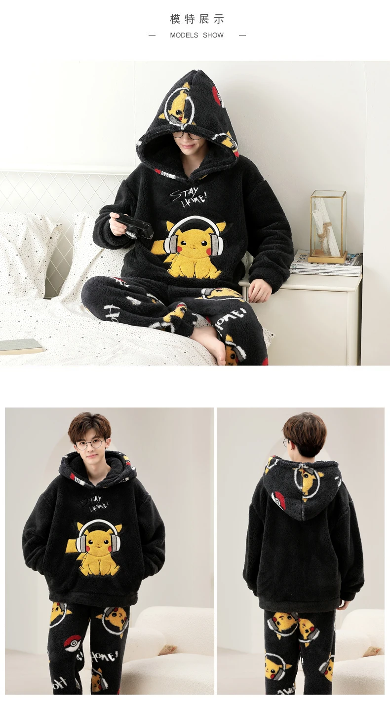 Winter Autumn Warm Boy Sleepwear Coral Velvet Unisex Print Men’s Pajama Sets Casual Pjs Male Loungewear Pyjamas Soft Nightwear