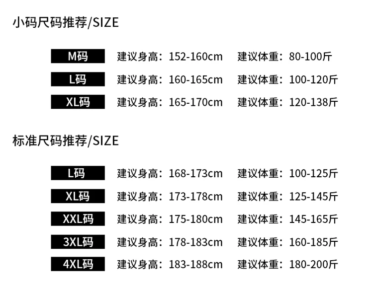 Size standard 3XL for height: 183-188cm, weight: 82-92kg
