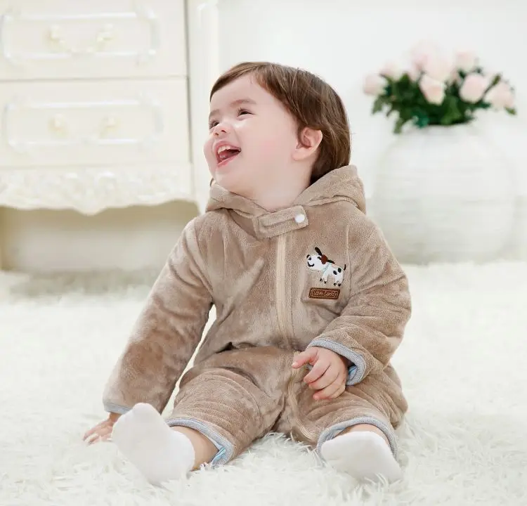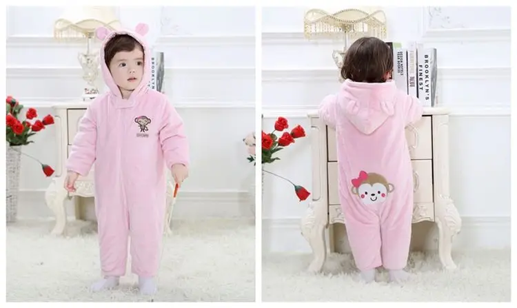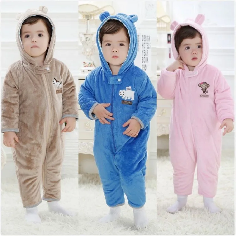 Winter Baby Rompers Fleece Thick Newborn Clothes Outfits Baby Boy Jumpsuit Girl One-Piece Clothes Hoodies Animal Cute Coat