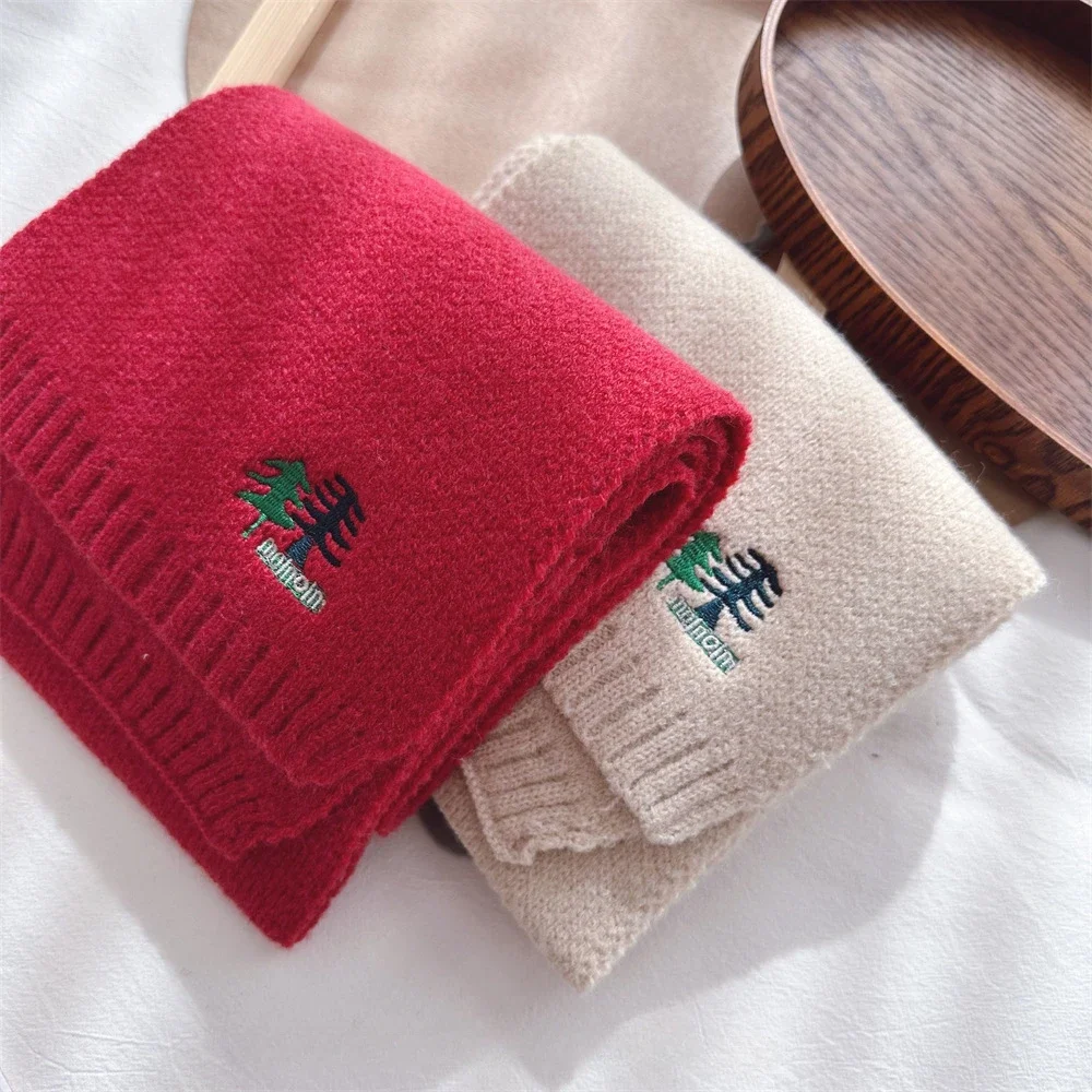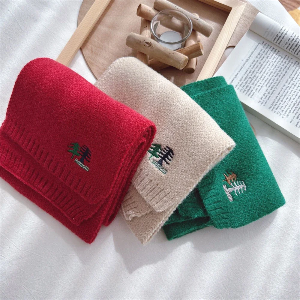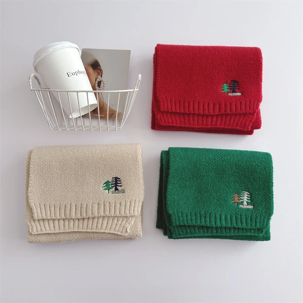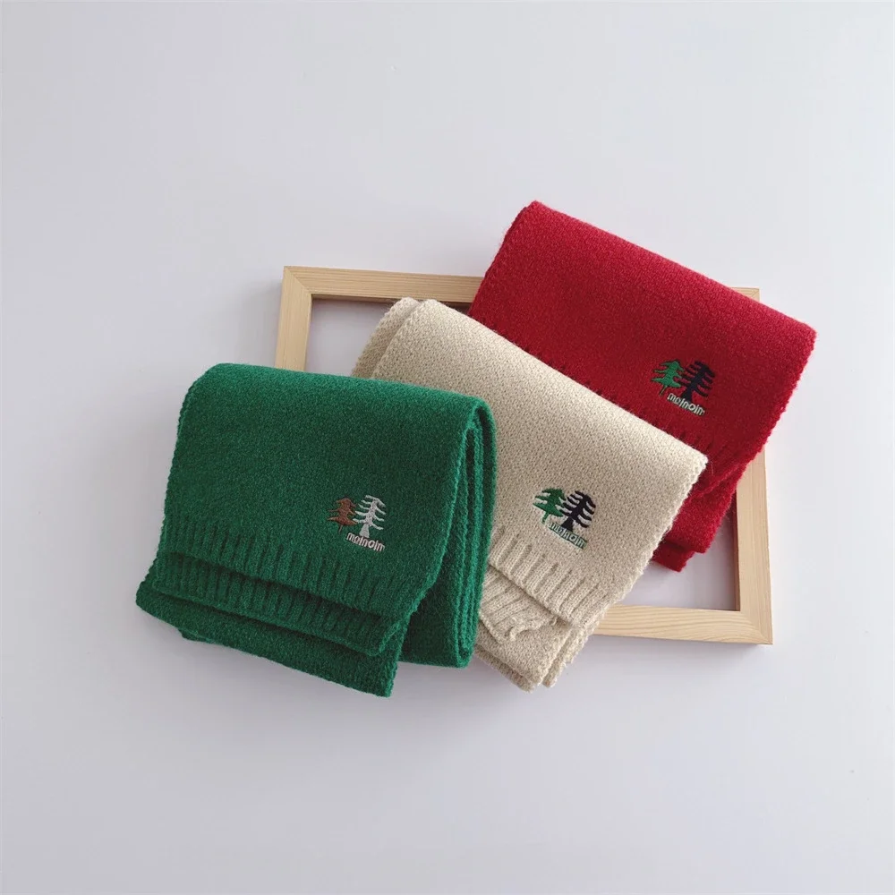 Winter boys and girls fashion Christmas tree Embroidered scarf New year warm knitted neck scarf