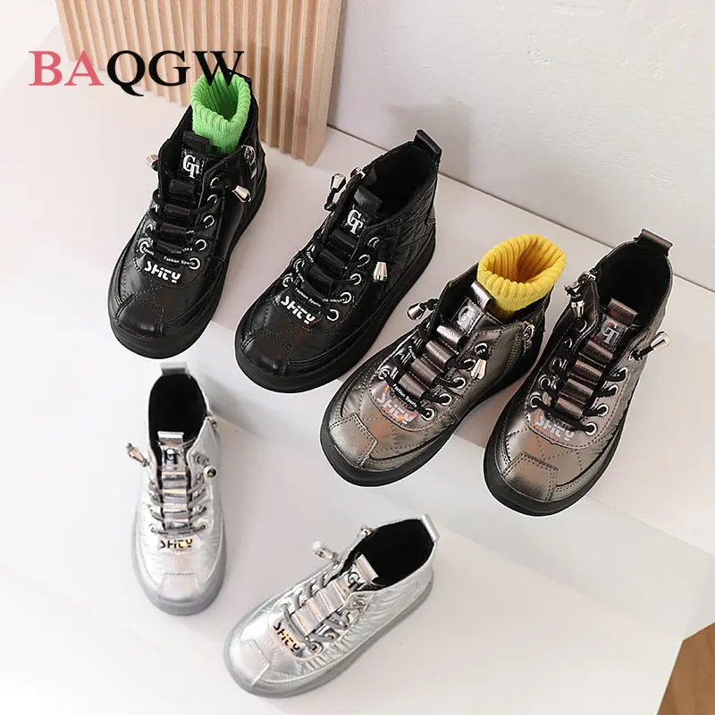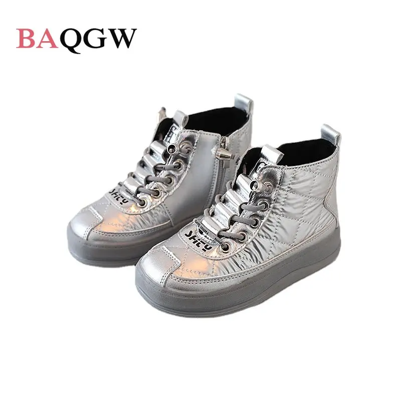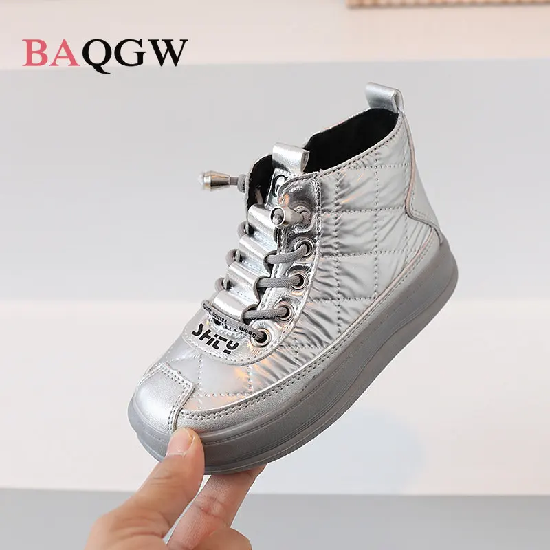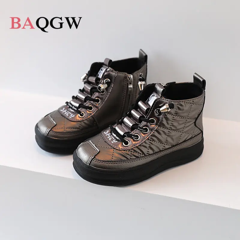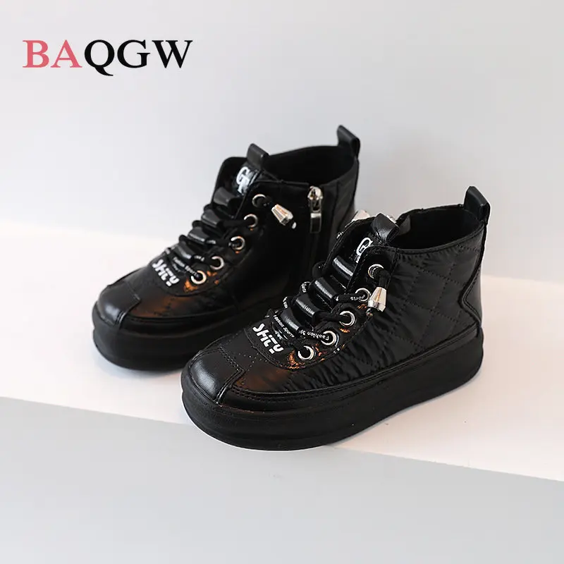 Winter Children Fashion Boots Warm PU High Top Shoes Sneakers Flats Lace Up Baby Girls Shoes Boy Short Warm Boots Size 23-37