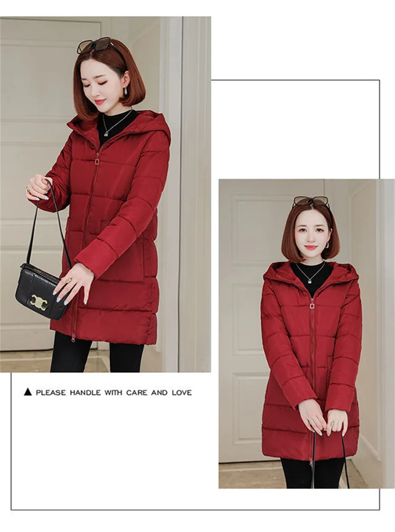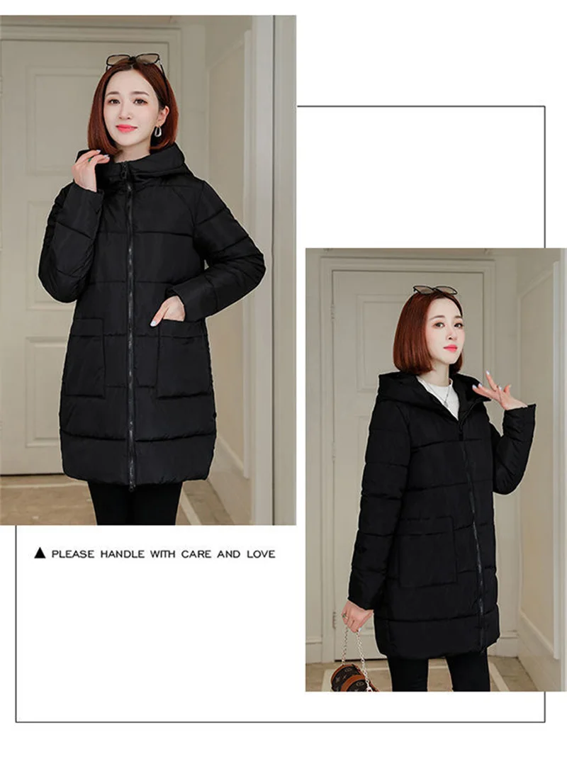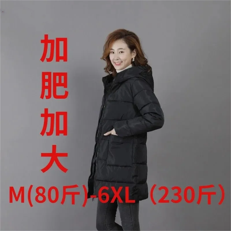 Winter Coat 2022 New Parka Female Mother Wear Cotton-Padded Jacket Women’s Long And Fat MM Loose Thick Down Coat Hooded Size 6XL