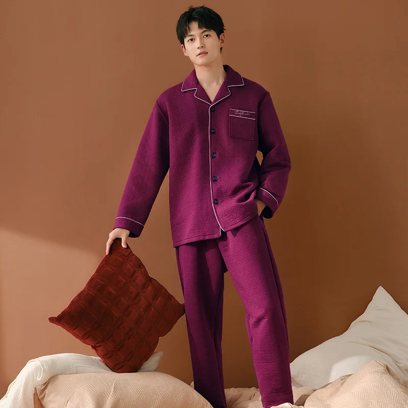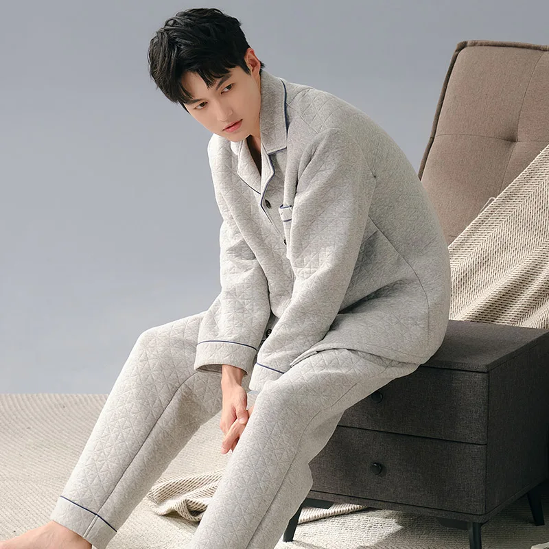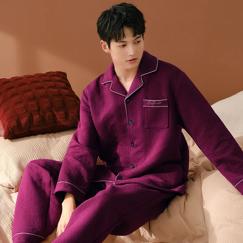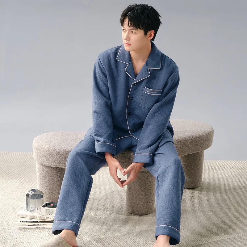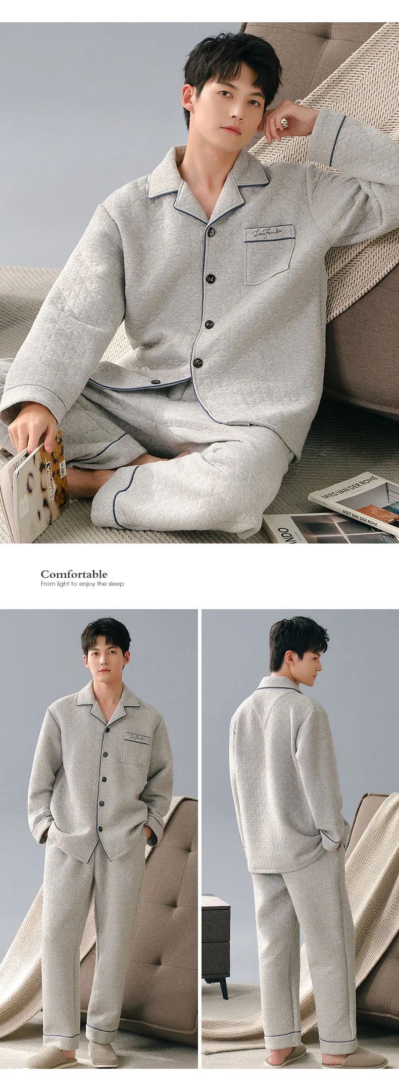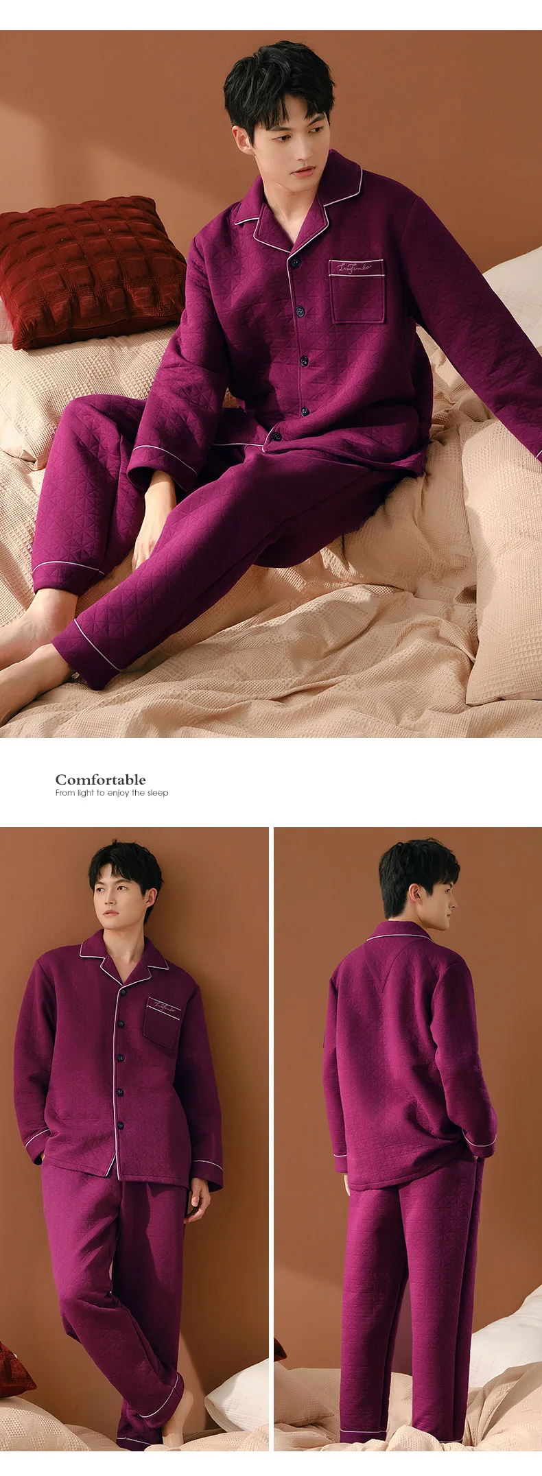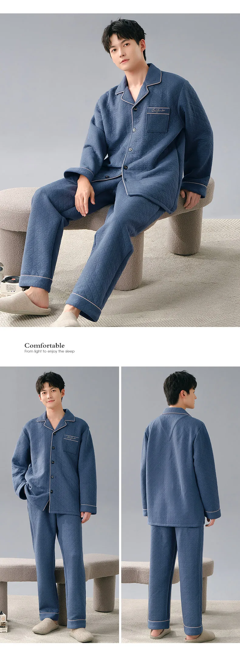 Winter Cotton Mezzanine Pyjamas Thick Jackets Men’s Pajamas Set Sleepwear Pyjamas Nightwear Big Yards M-3XL Quilted Pijamas