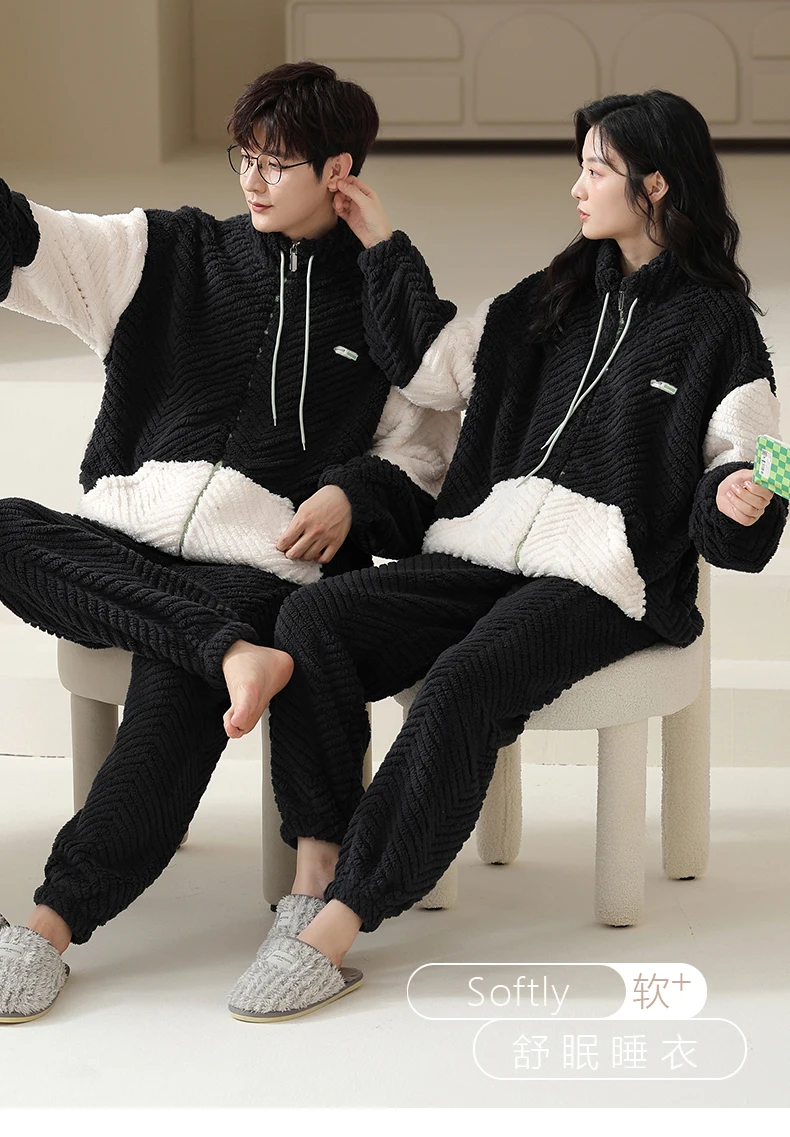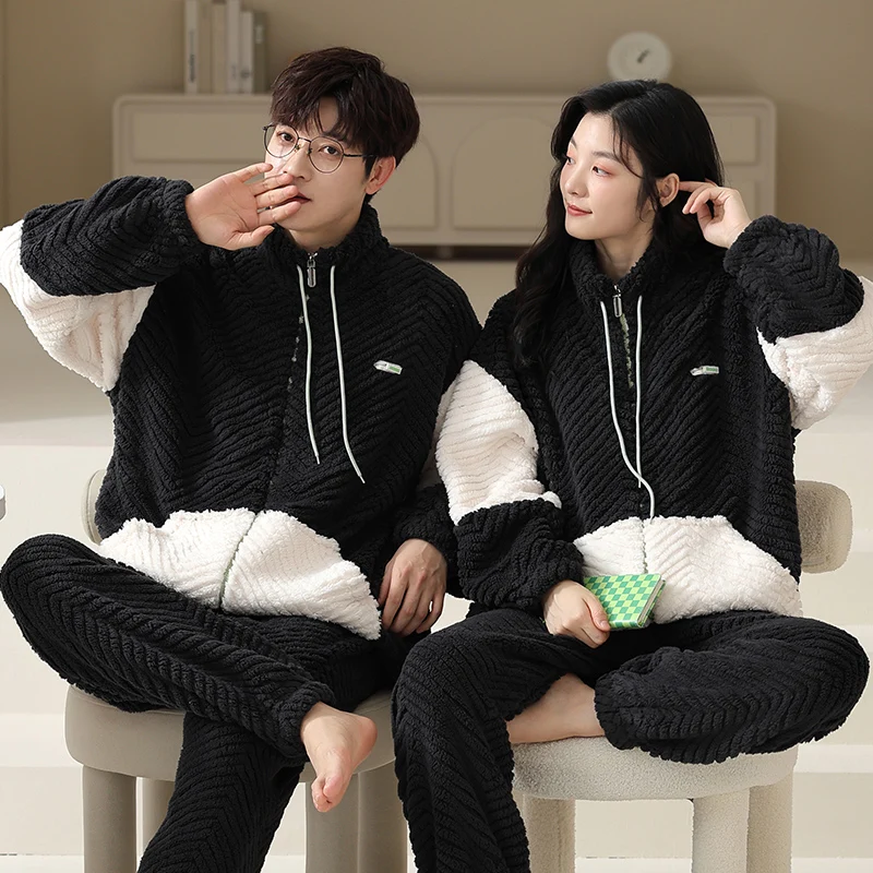 Winter Couple Pajama Sets Women Men Sleepwear Winter Soft Warm Pyjamas Lovely Pajamas