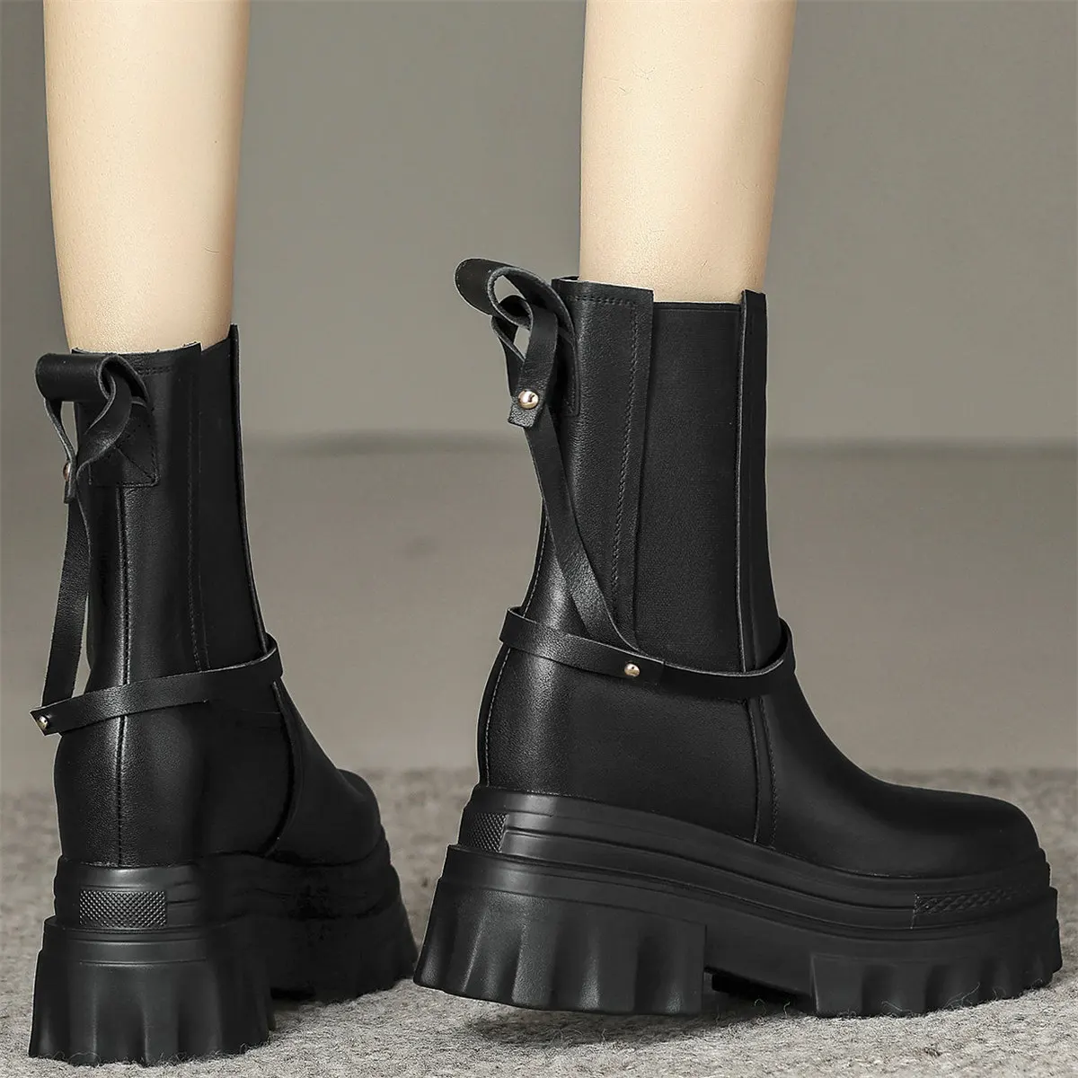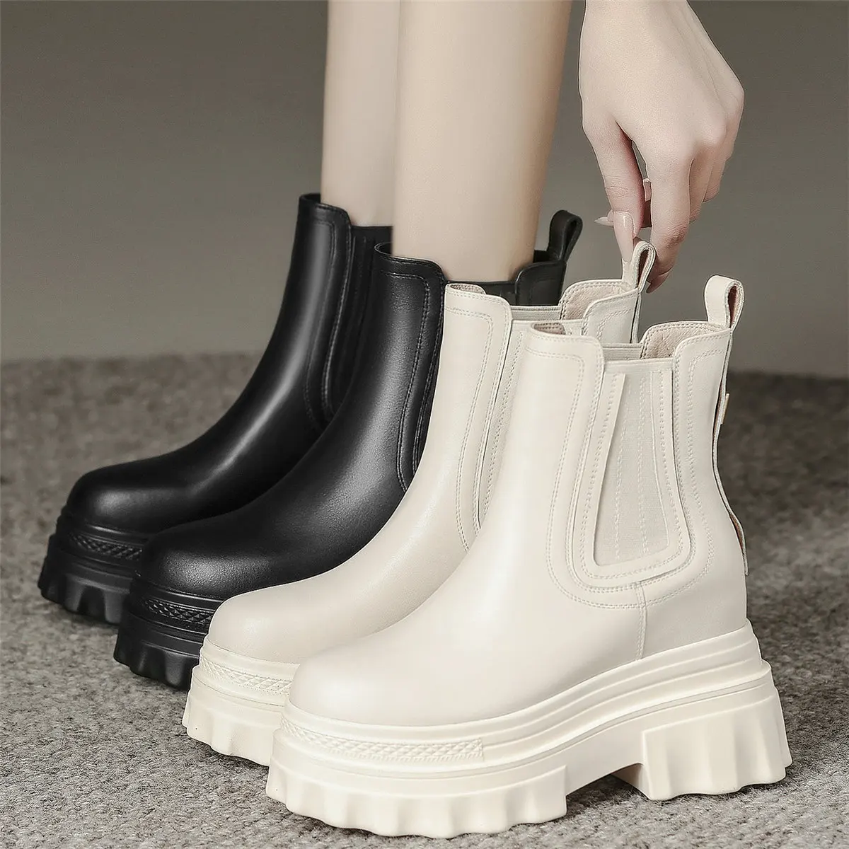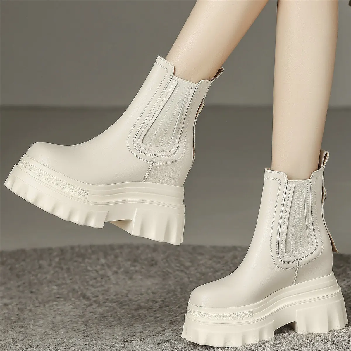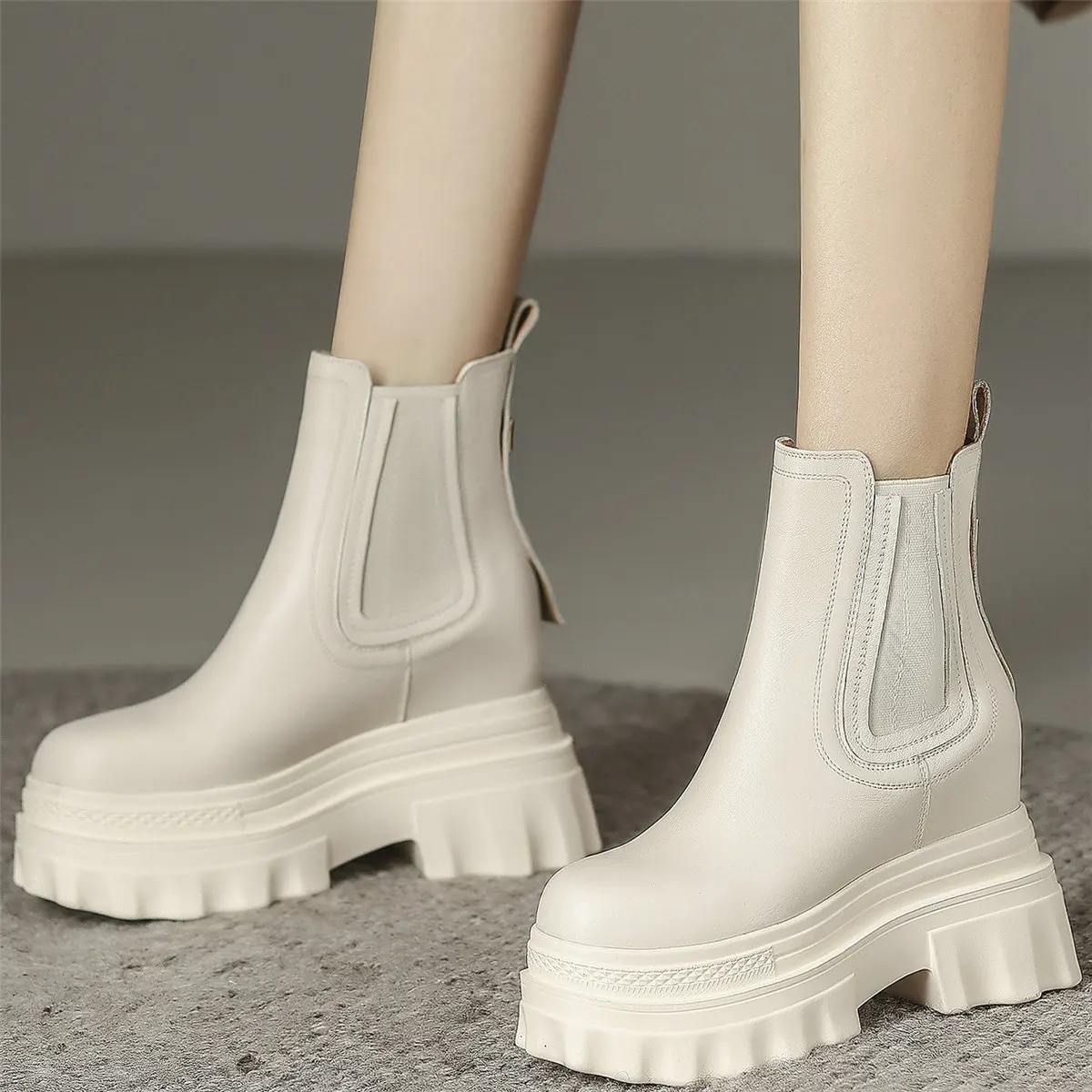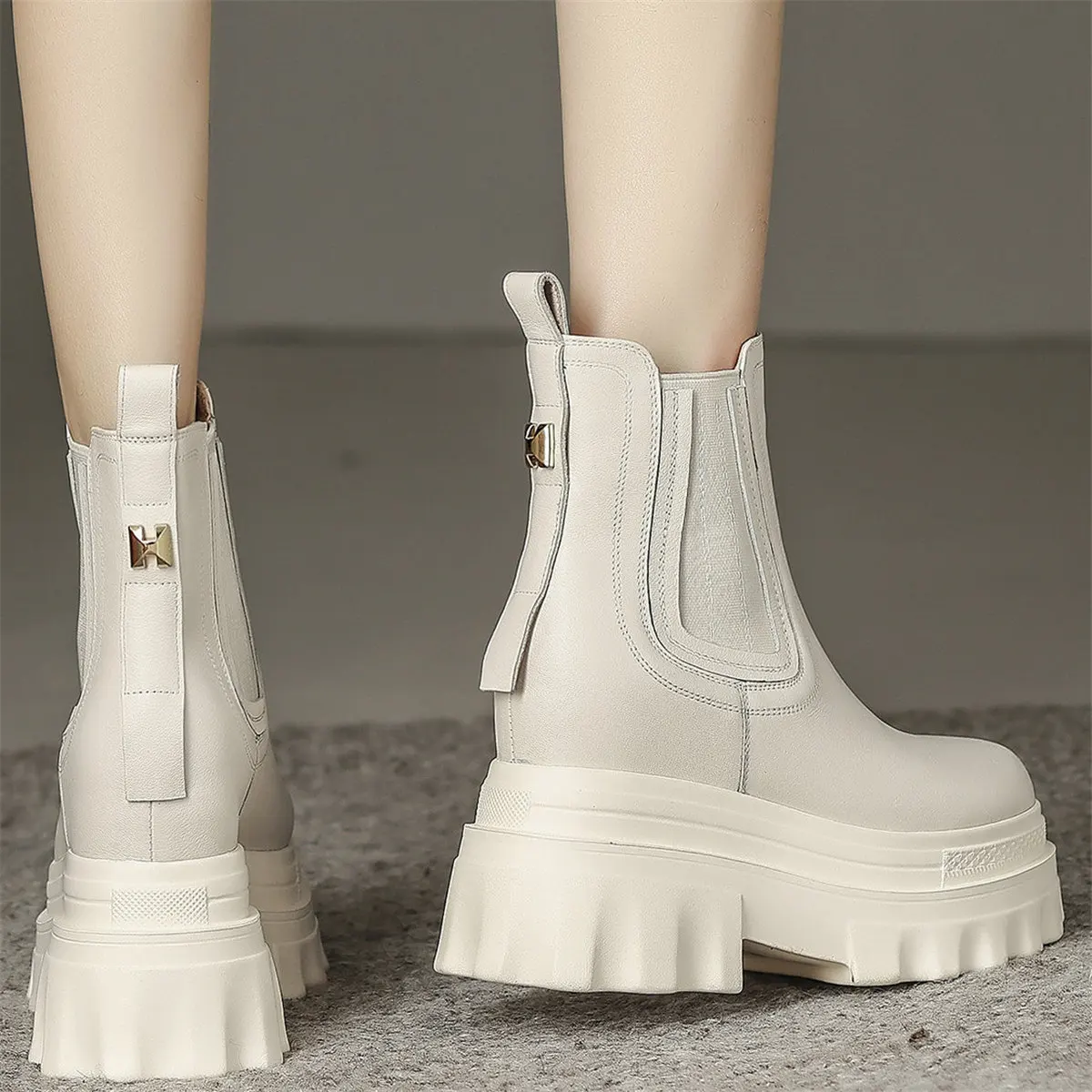 Winter Fashion Sneakers Women Genuine Leather Wedges High Heel Ankle Boots Female High Top Round Toe Platform Pumps Casual Shoes