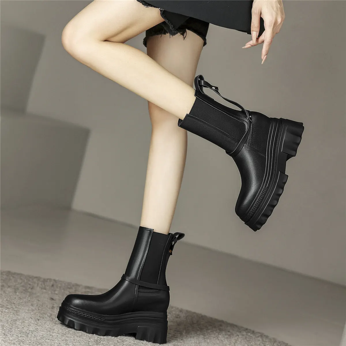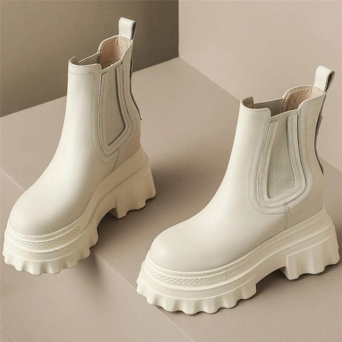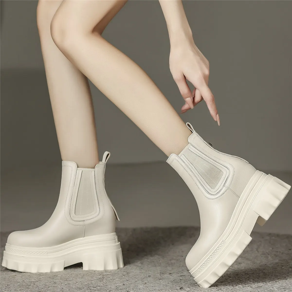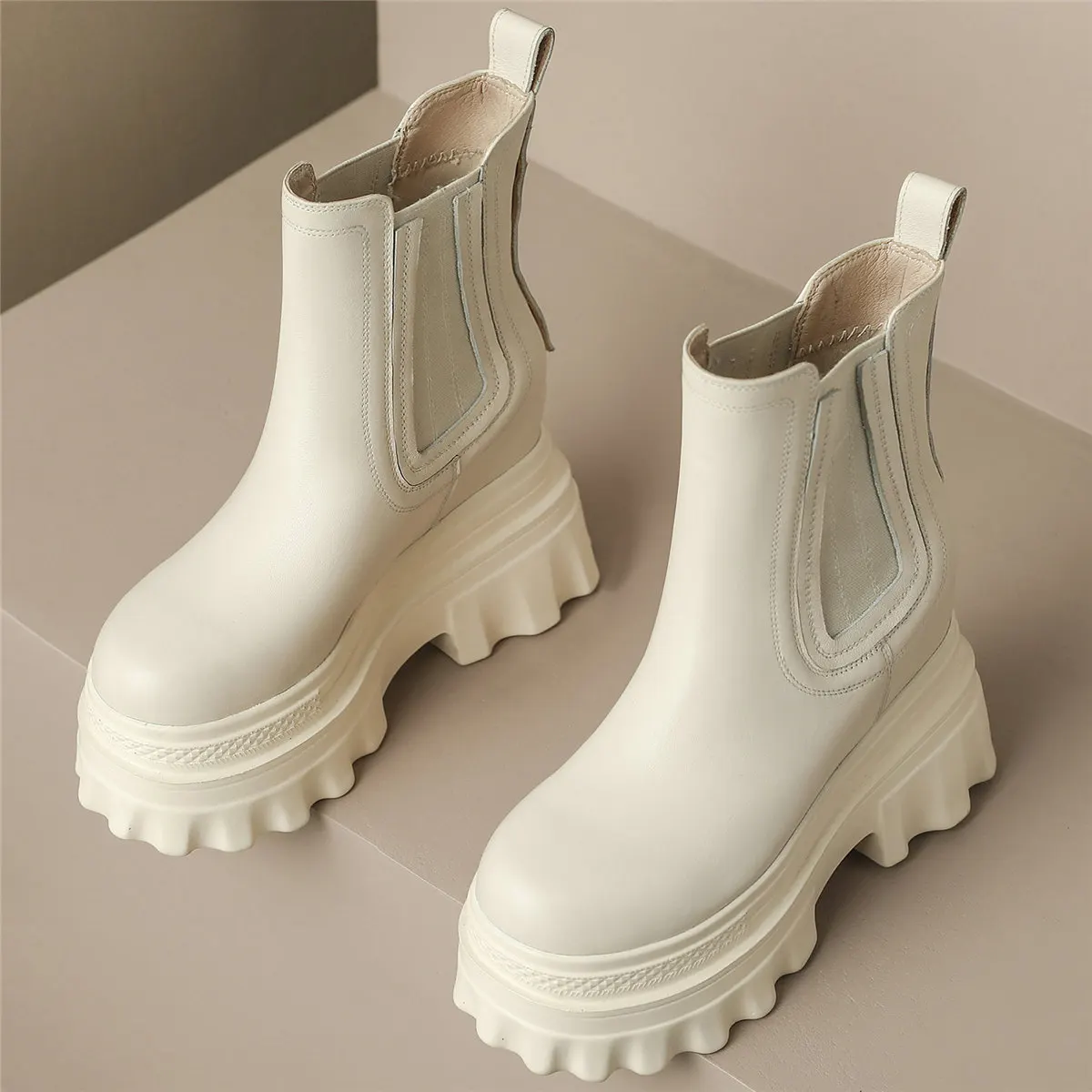 Winter Fashion Sneakers Women Genuine Leather Wedges High Heel Ankle Boots Female High Top Round Toe Platform Pumps Casual Shoes