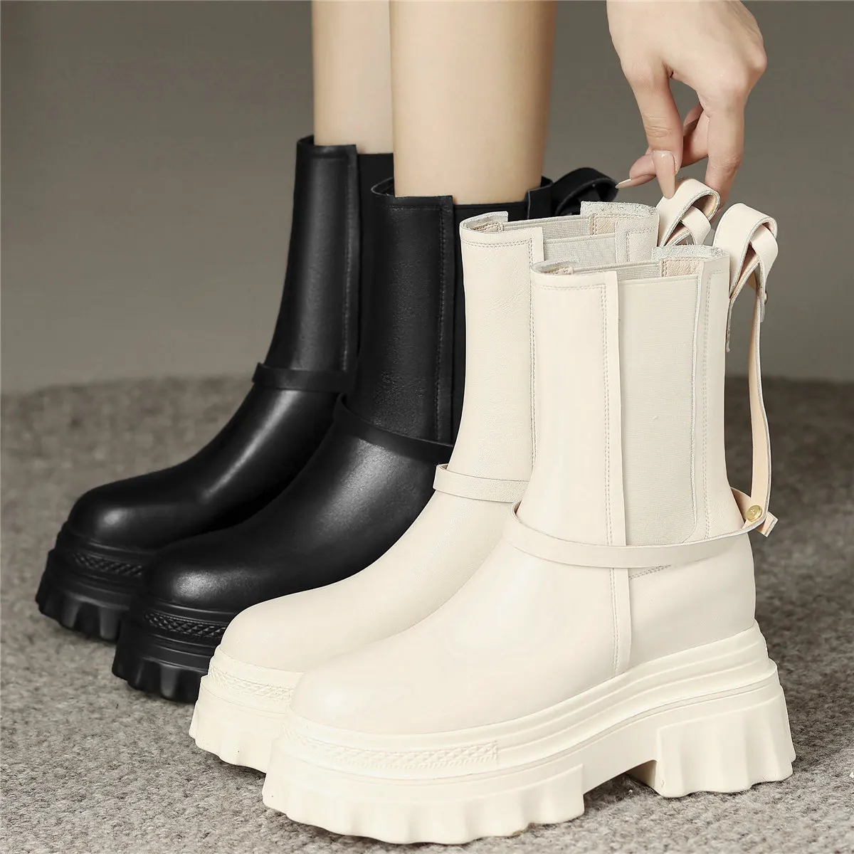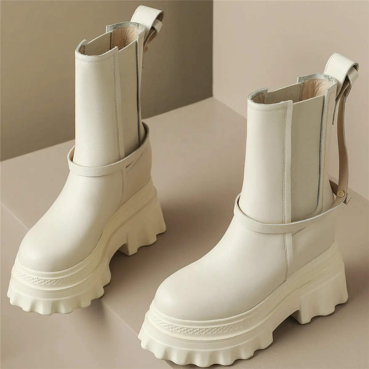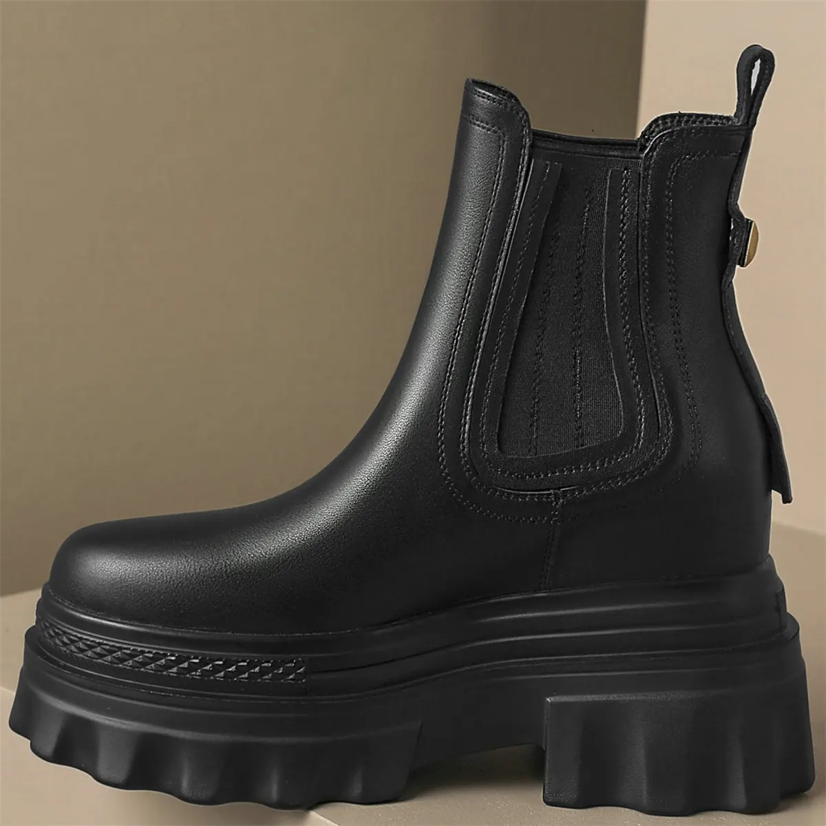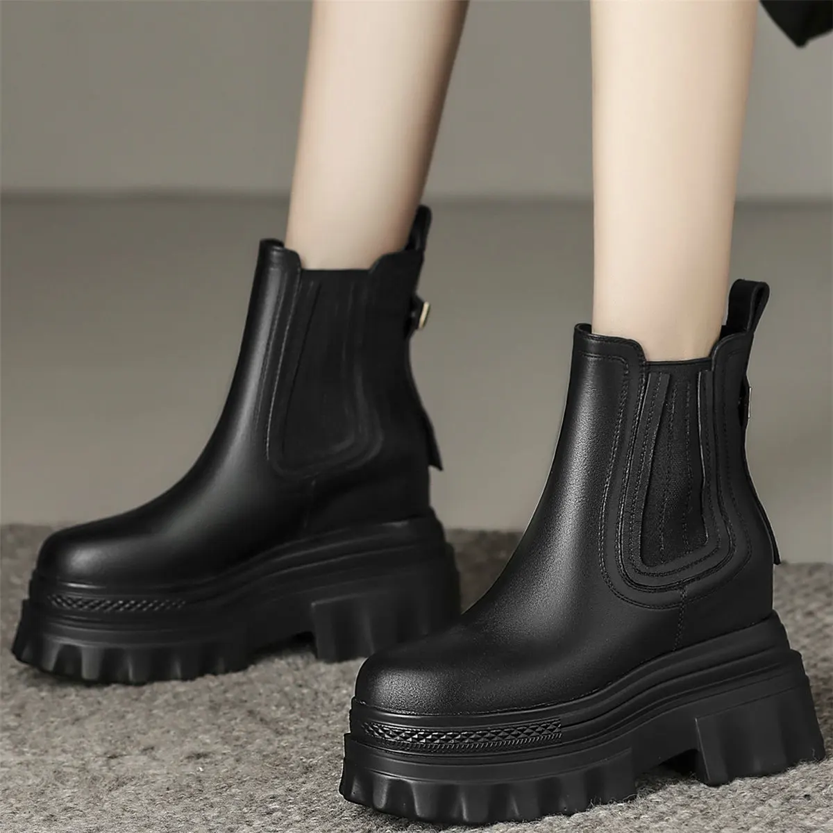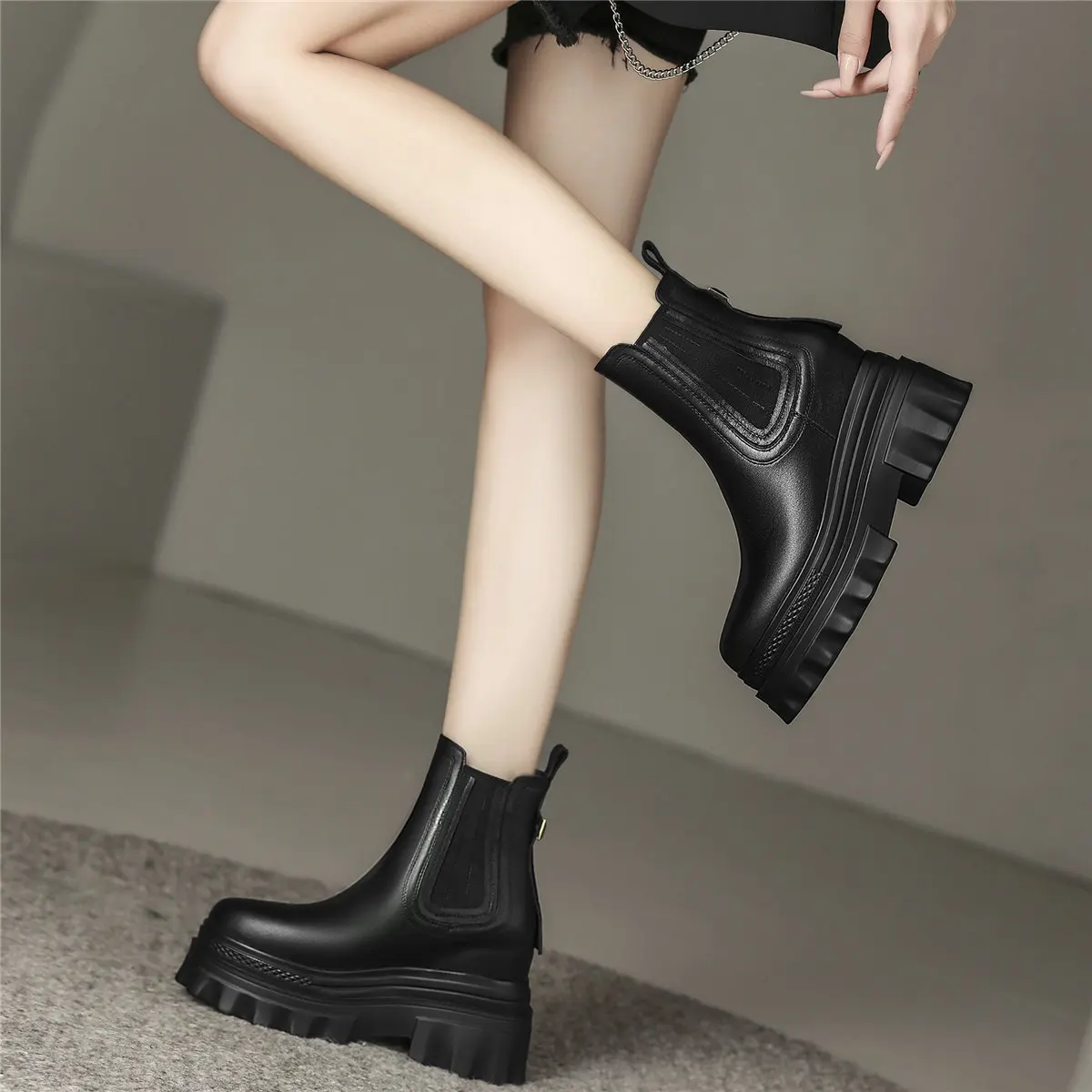Winter Fashion Sneakers Women Genuine Leather Wedges High Heel Ankle Boots Female High Top Round Toe Platform Pumps Casual Shoes