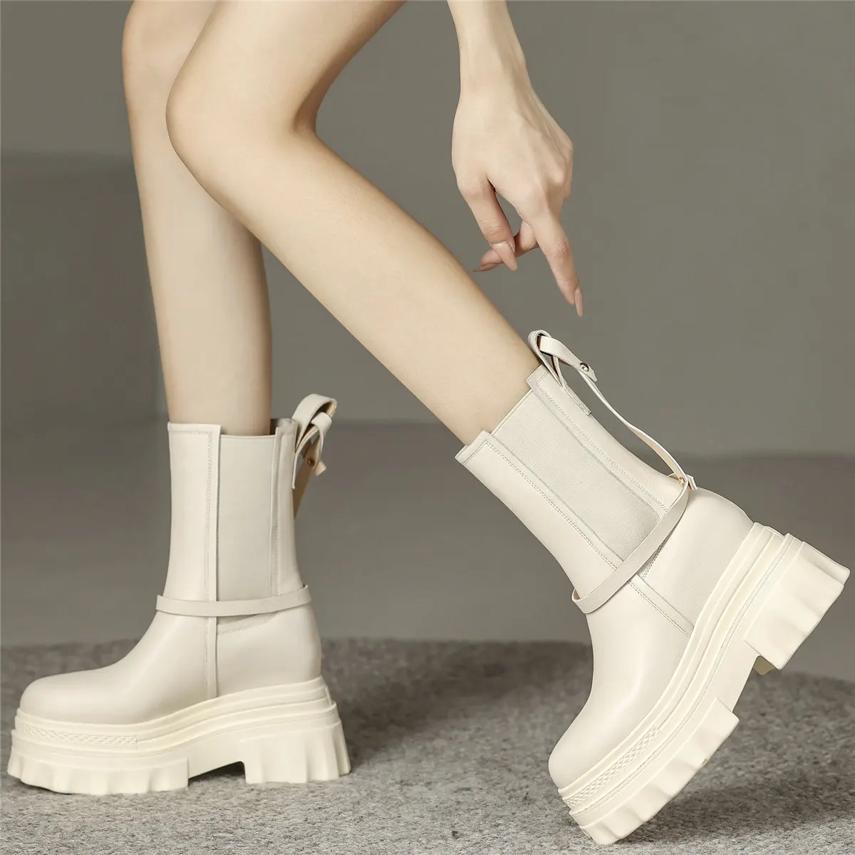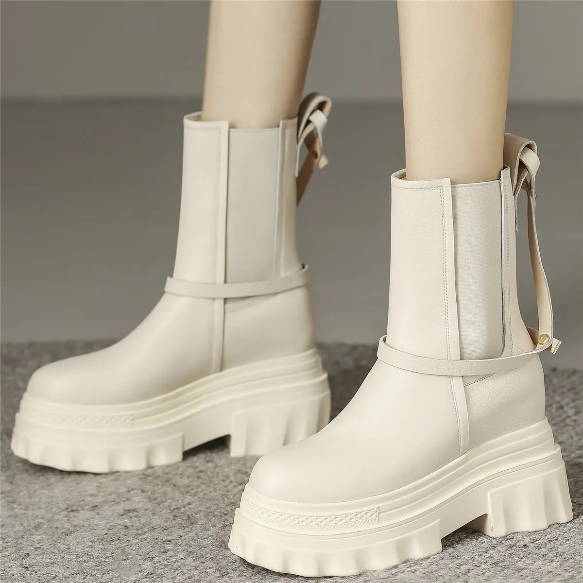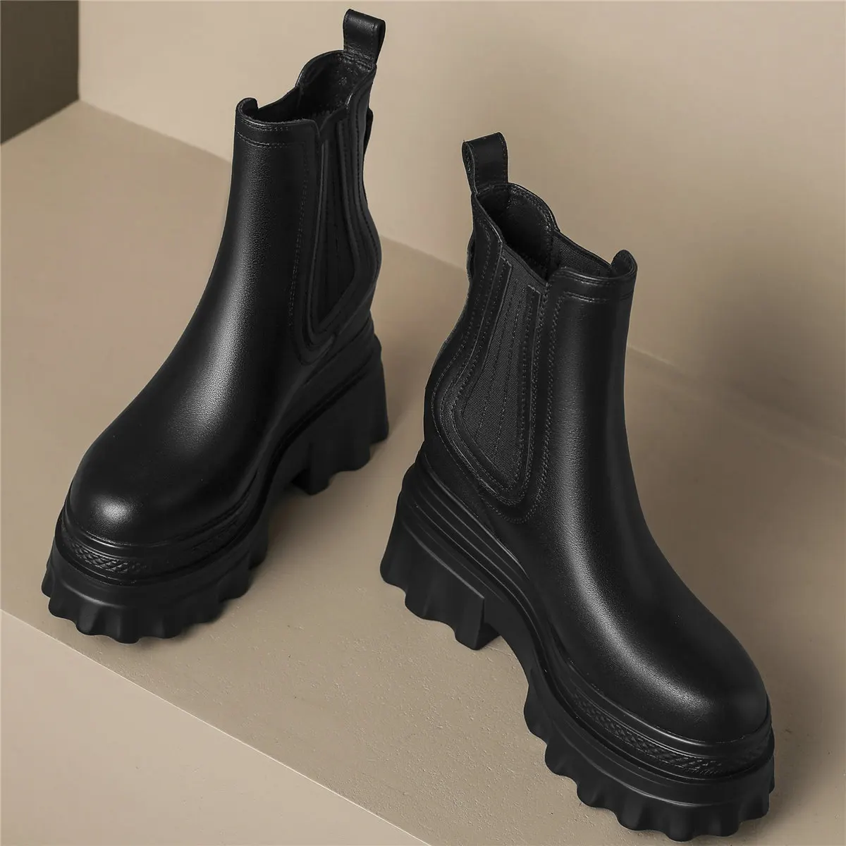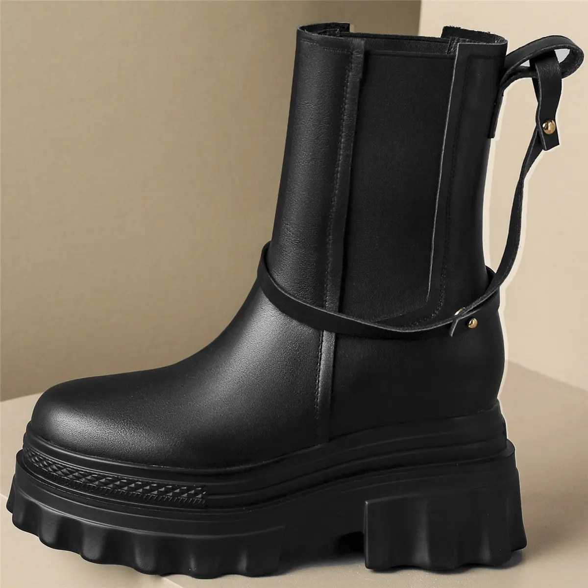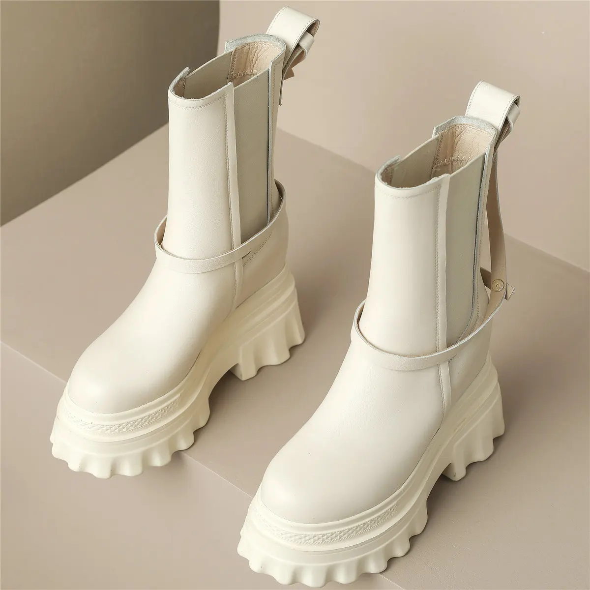 Winter Fashion Sneakers Women Genuine Leather Wedges High Heel Ankle Boots Female High Top Round Toe Platform Pumps Casual Shoes