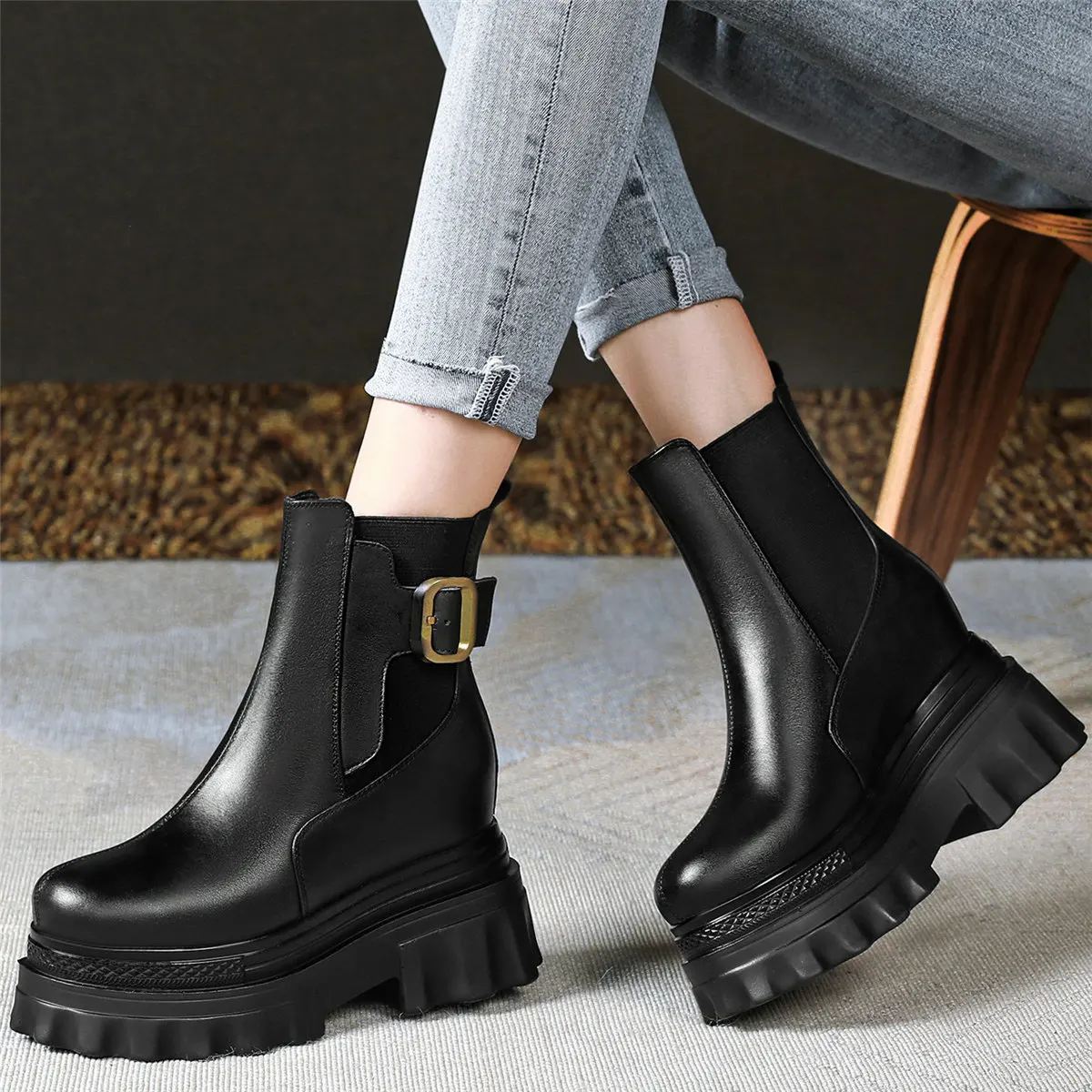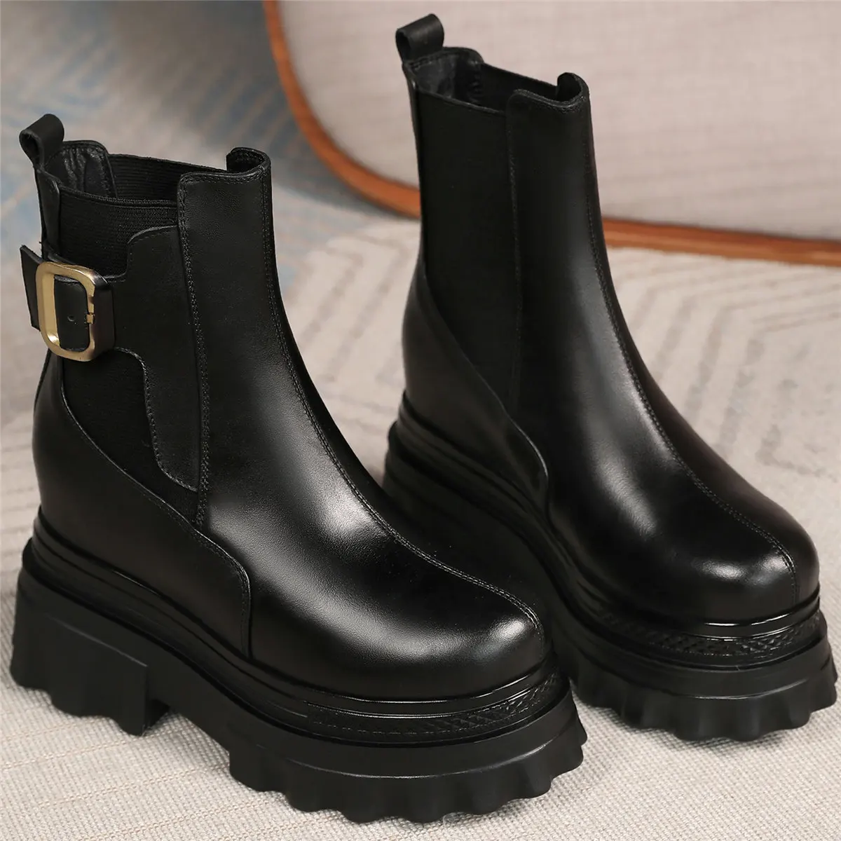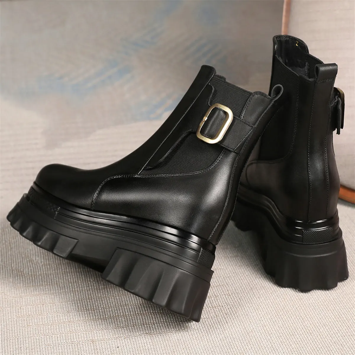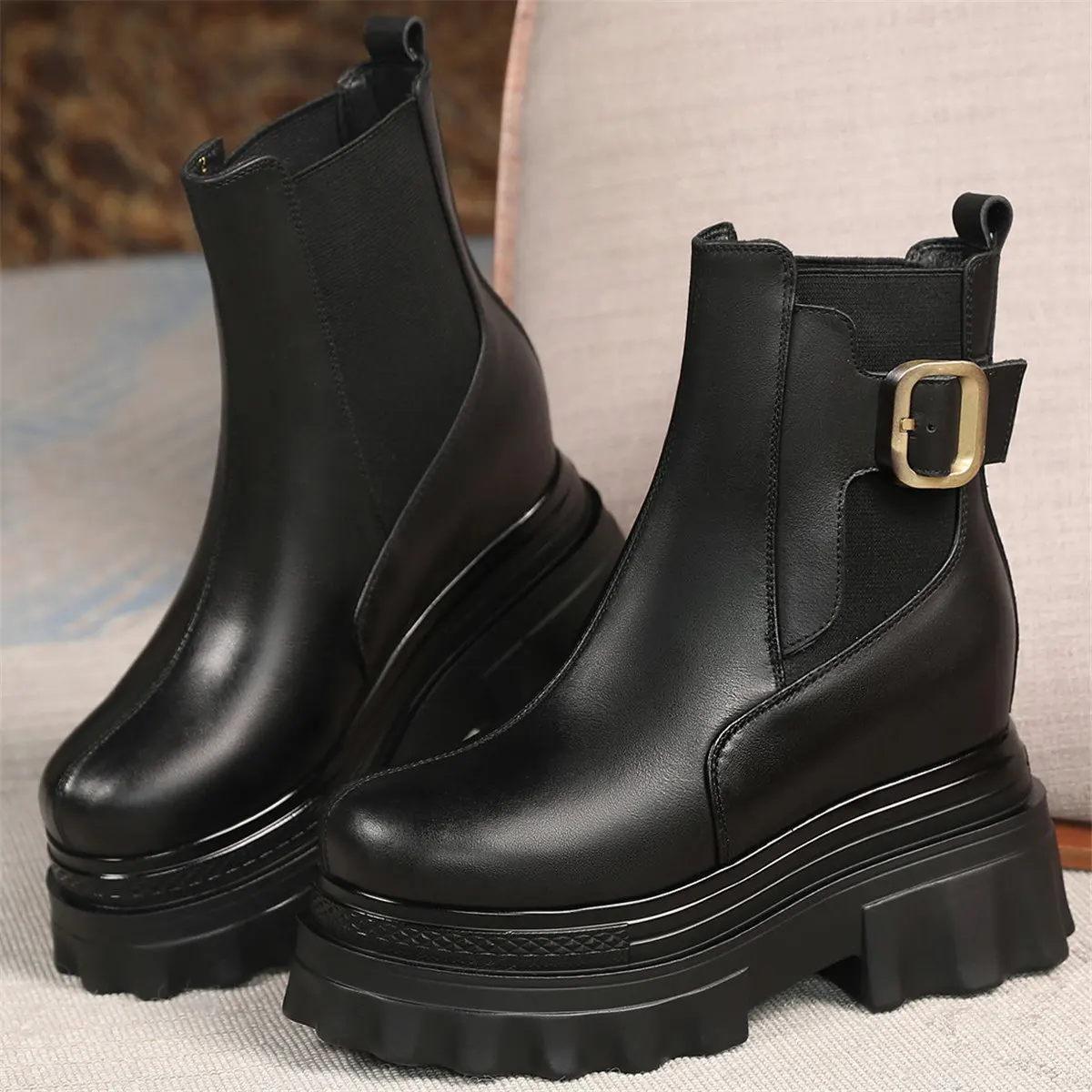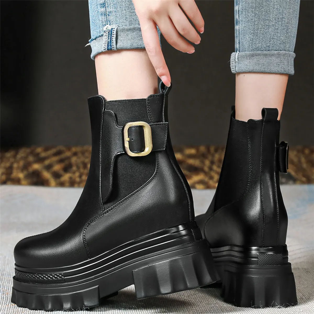 Winter Fashion Sneakers Women Genuine Leather Wedges High Heel Motorcycle Boots Female Round Toe Platform Pumps Casual Shoes