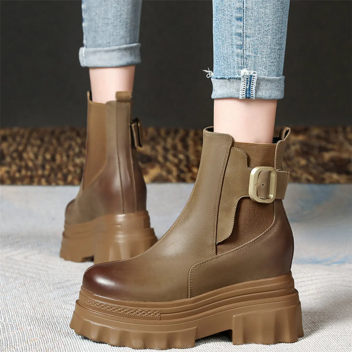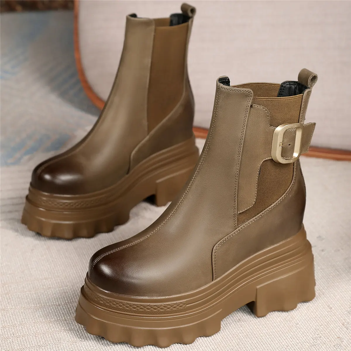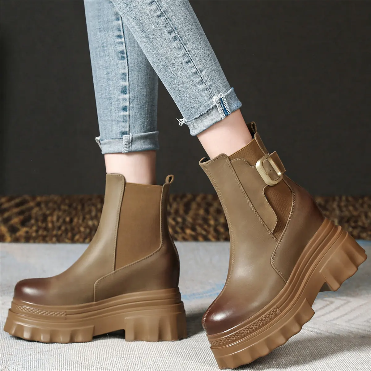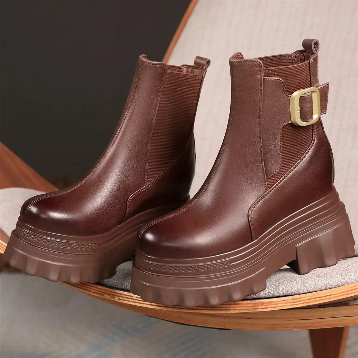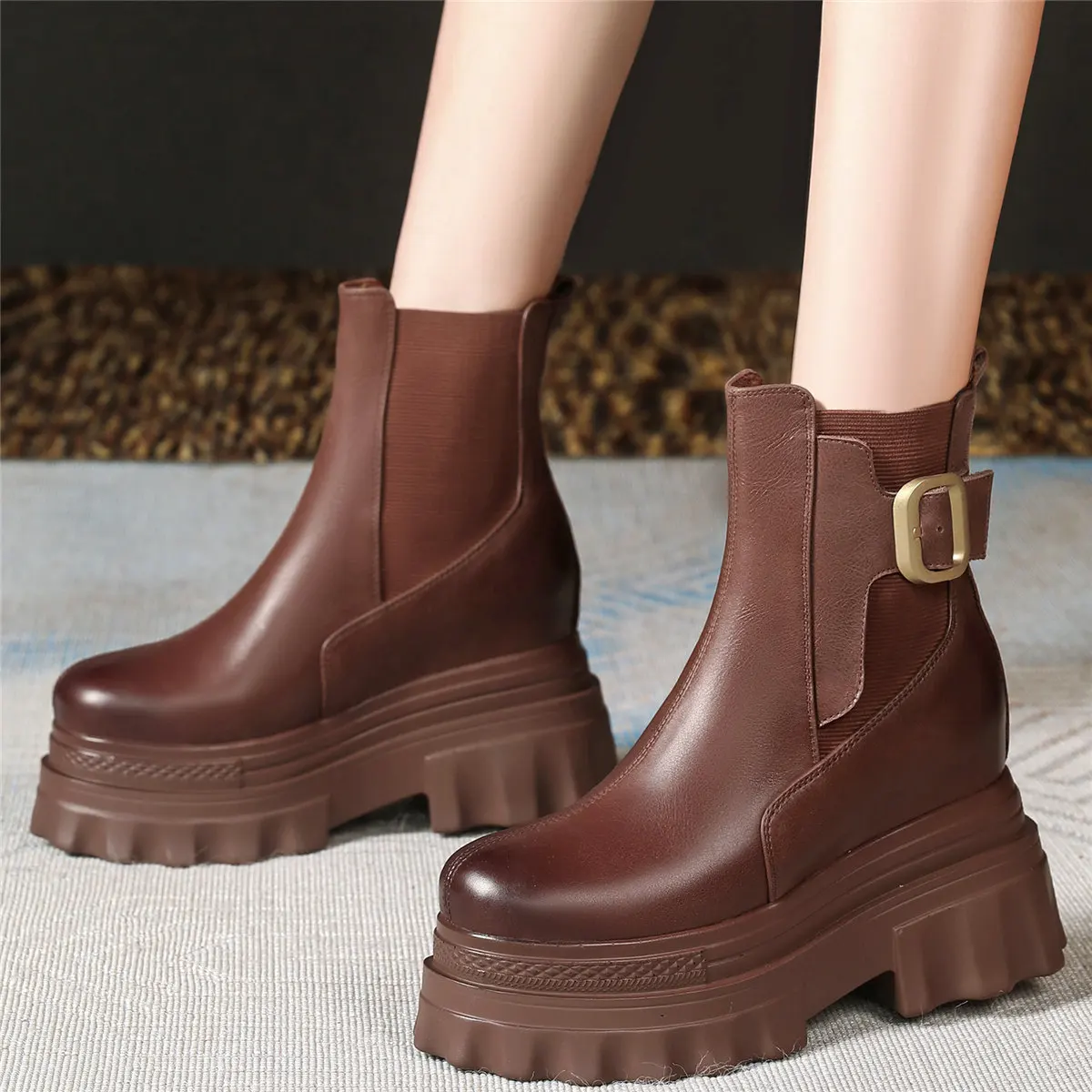 Winter Fashion Sneakers Women Genuine Leather Wedges High Heel Motorcycle Boots Female Round Toe Platform Pumps Casual Shoes