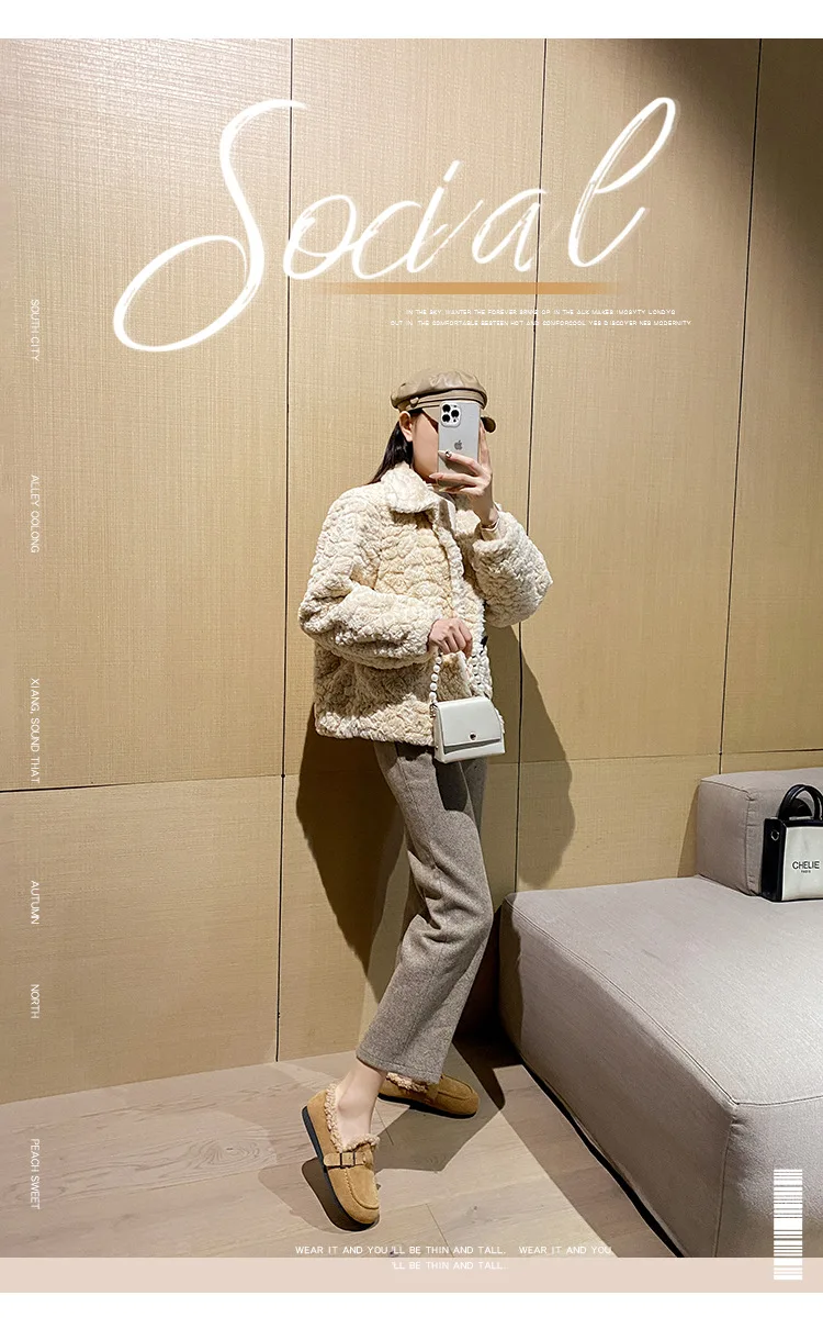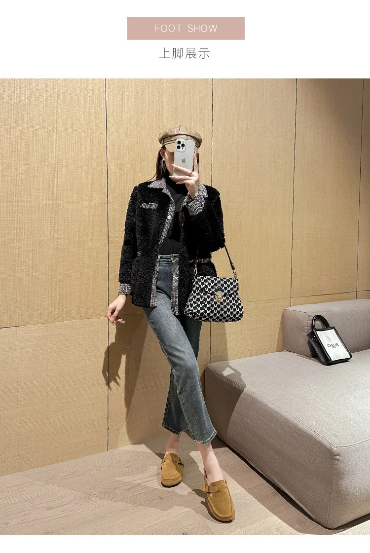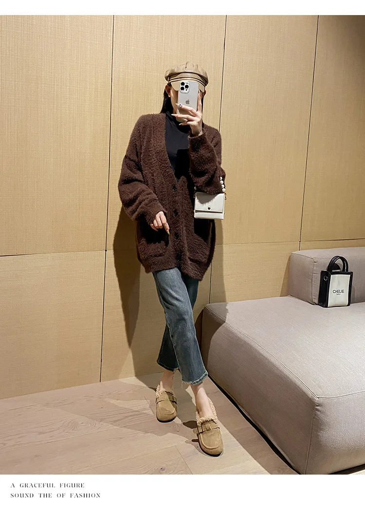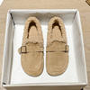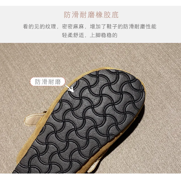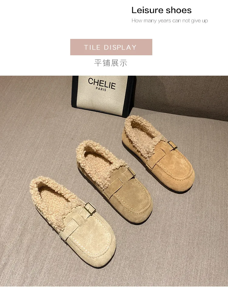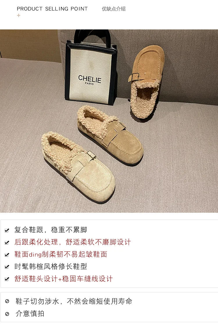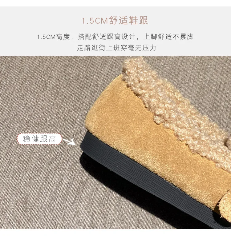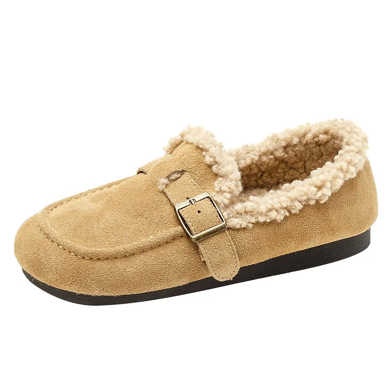 Winter Genuine Leather Pantuflas Shoes Woman Cover Toe Wool Fur Slides Femme Cork Slippers Home Slip On Warm Loafers Furry Mules
