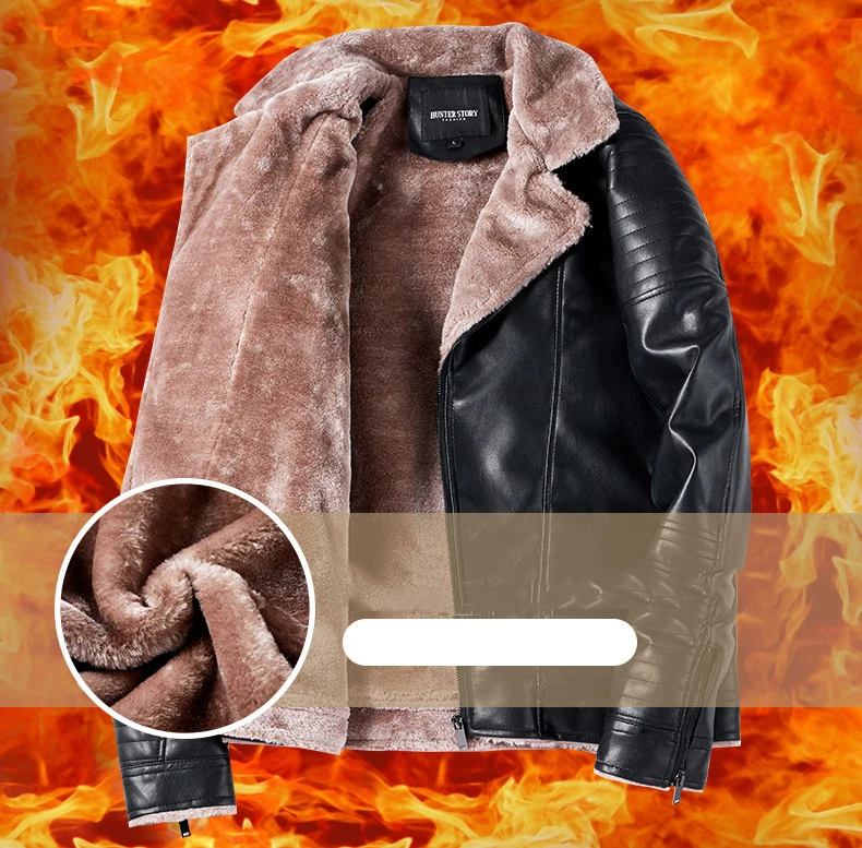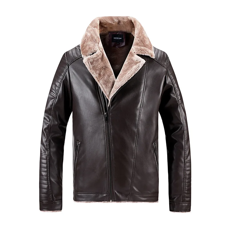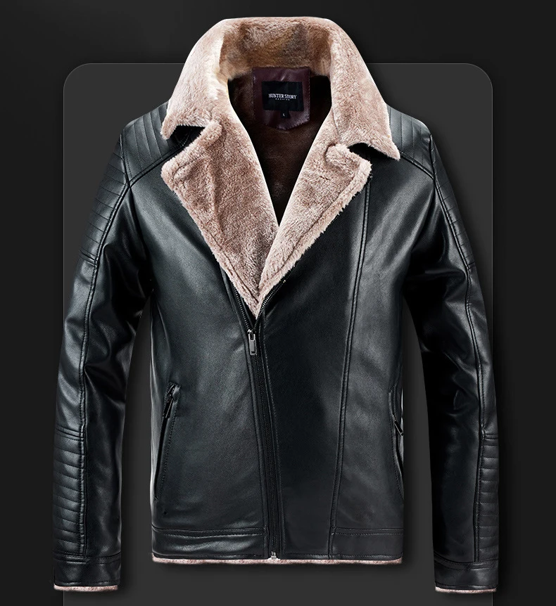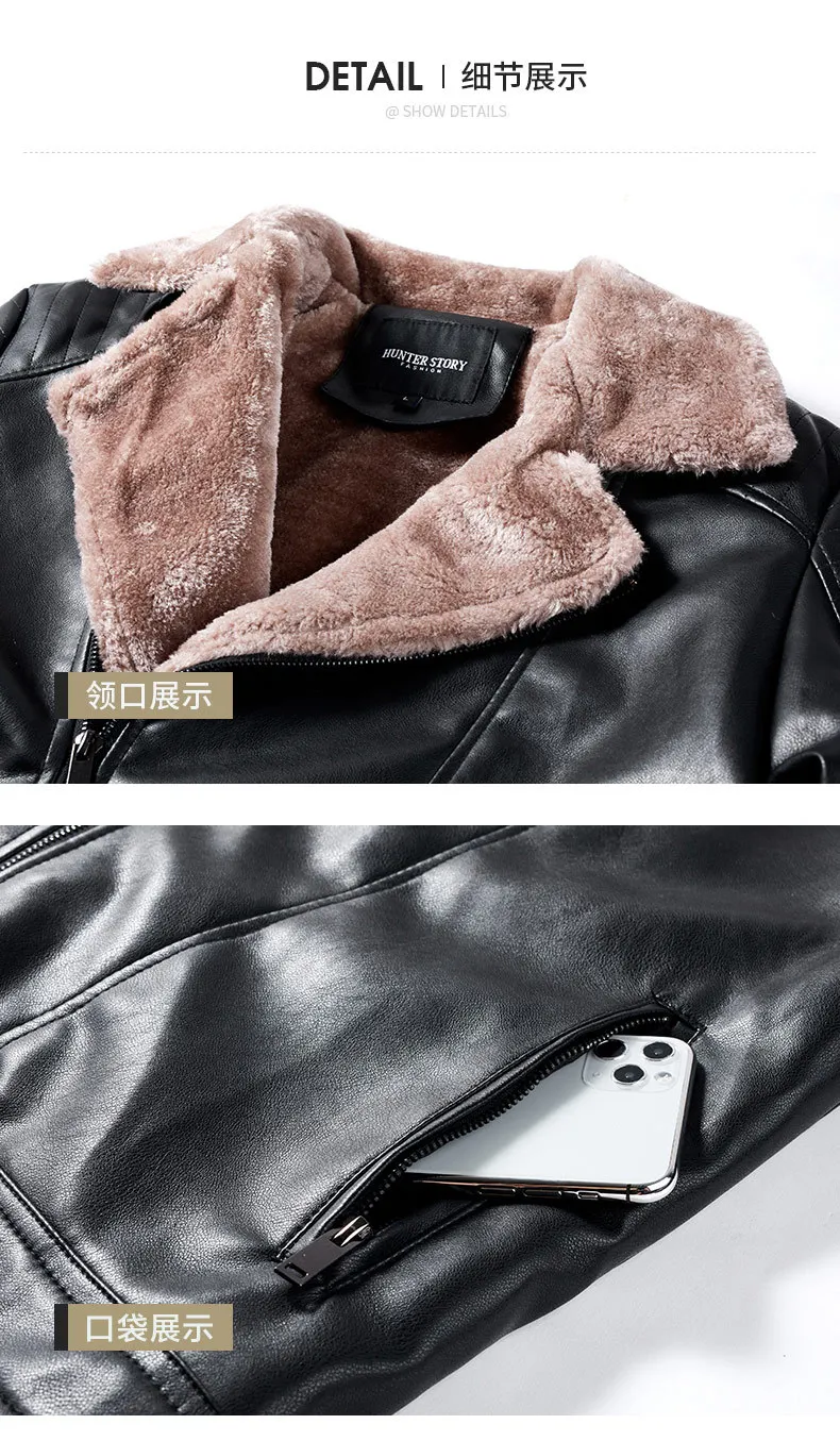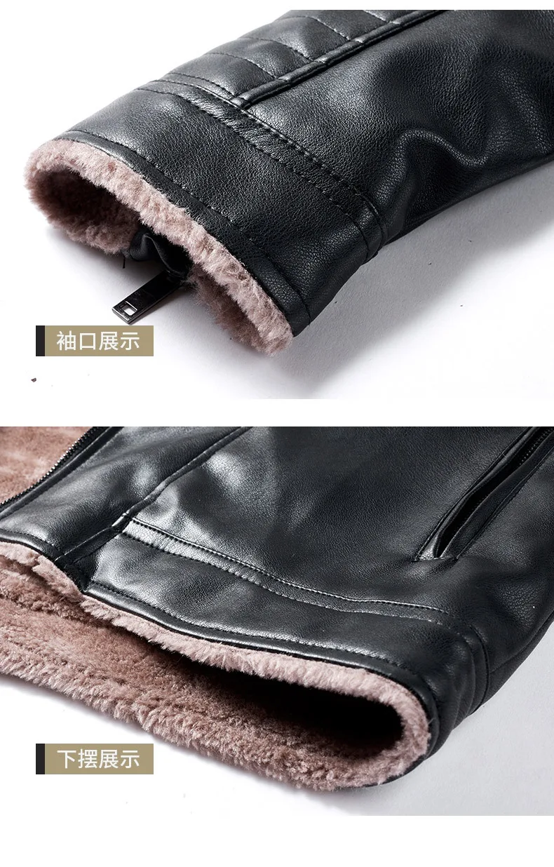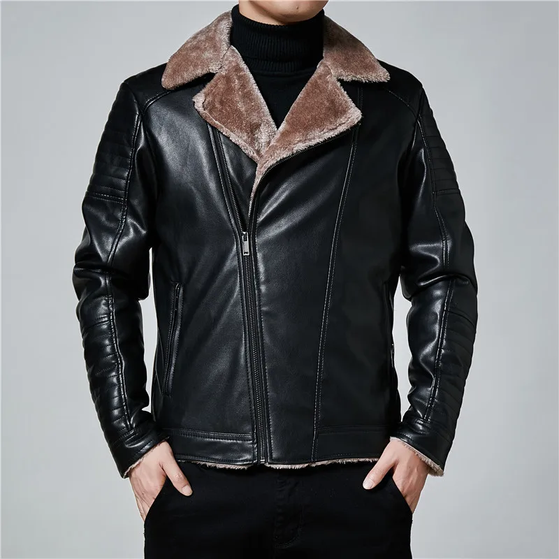 Winter Jacket Men Fleece Thick Warm Fur Collar Faux PU Leather Coat Slim Korean Motorcycle Leather Jacket Casaco Masculino M-3XL