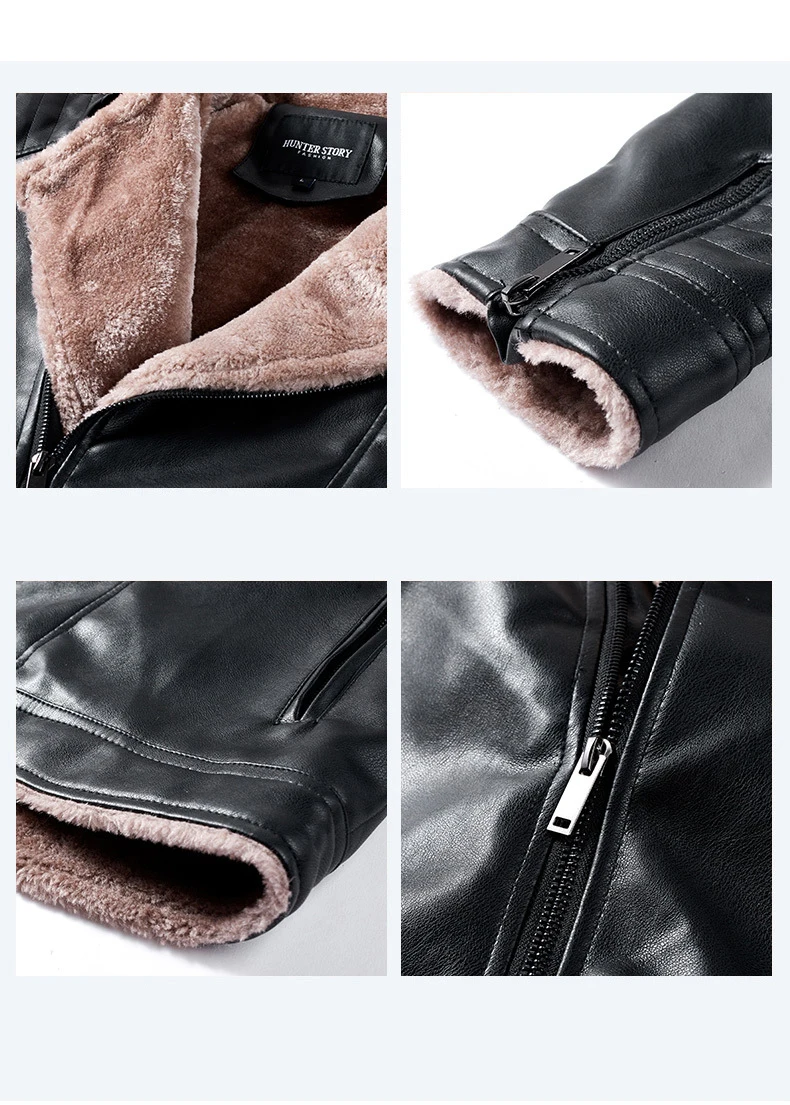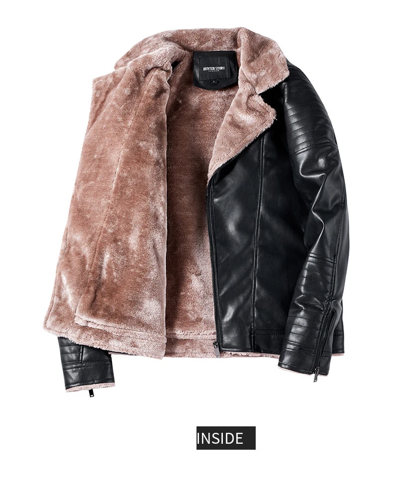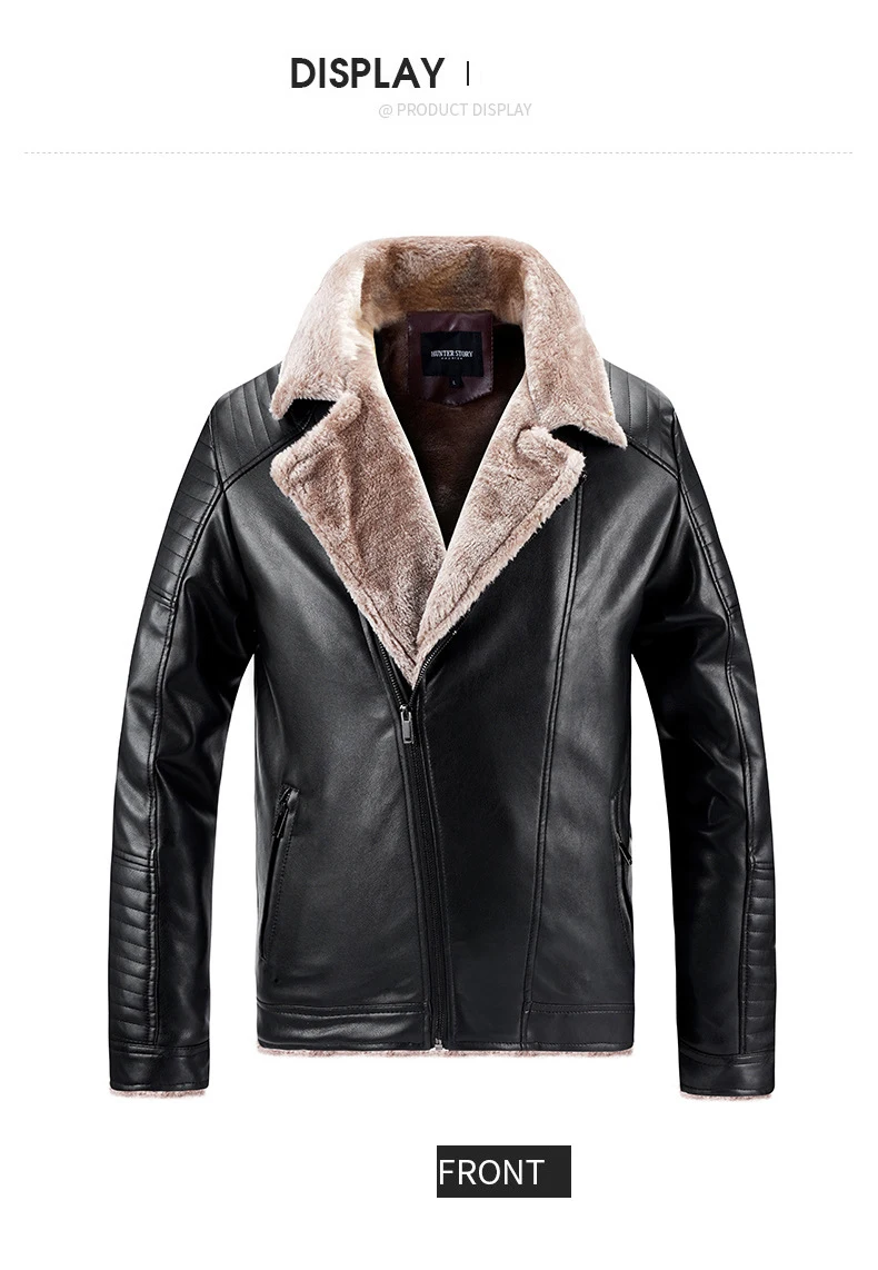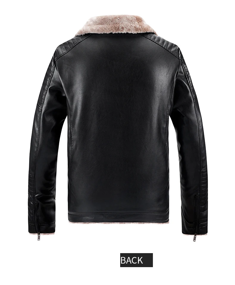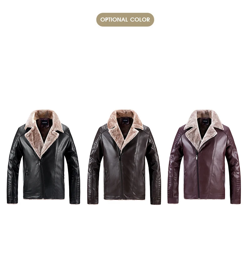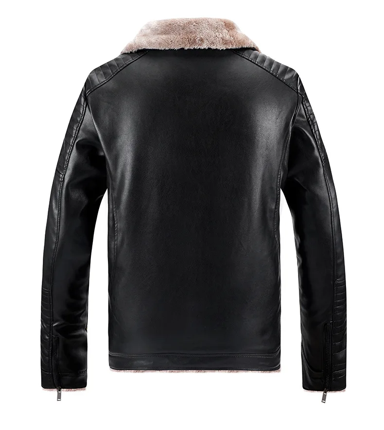 Winter Jacket Men Fleece Thick Warm Fur Collar Faux PU Leather Coat Slim Korean Motorcycle Leather Jacket Casaco Masculino M-3XL