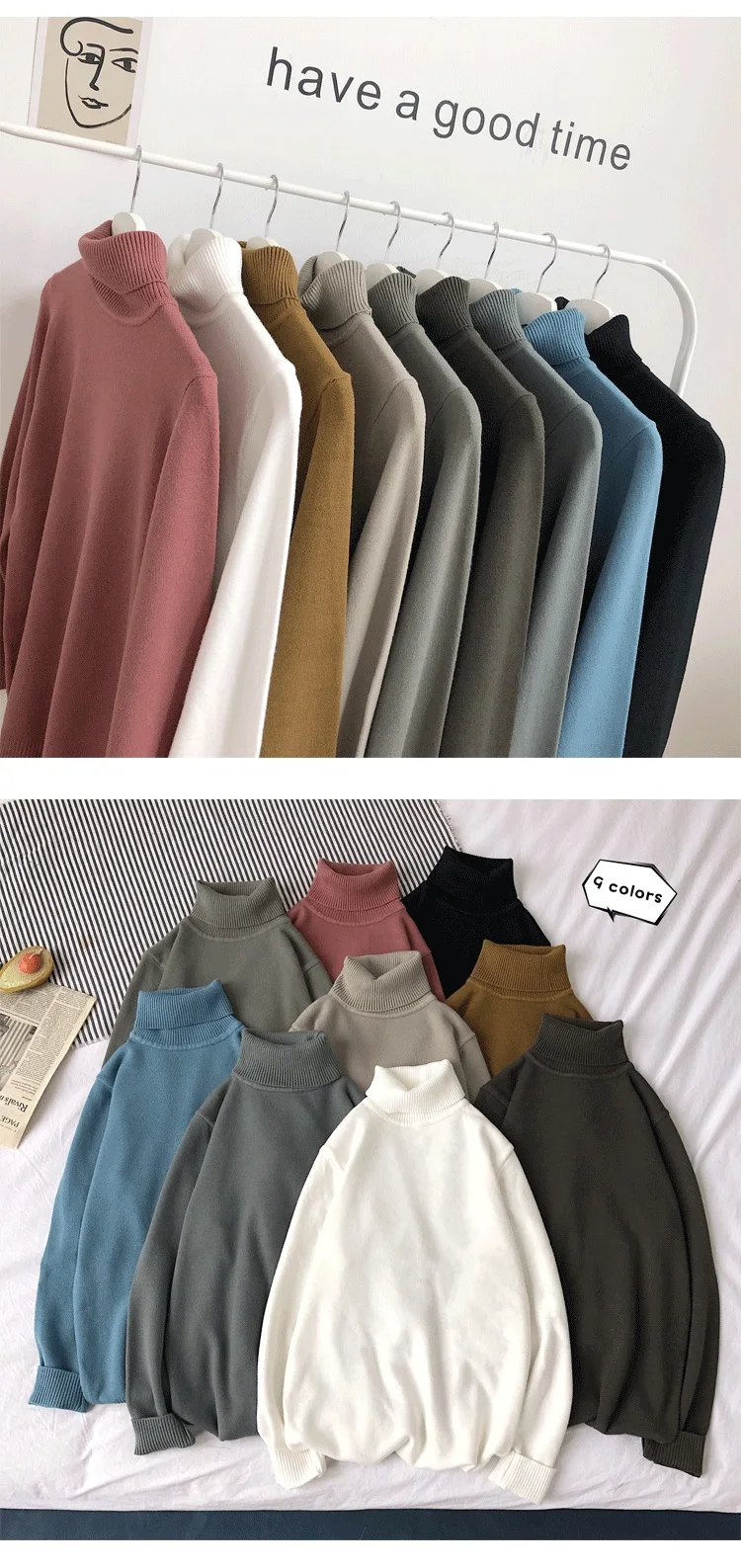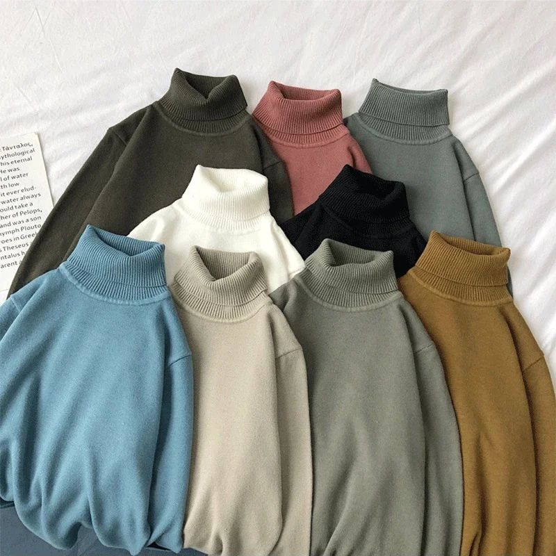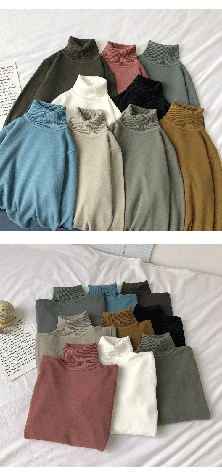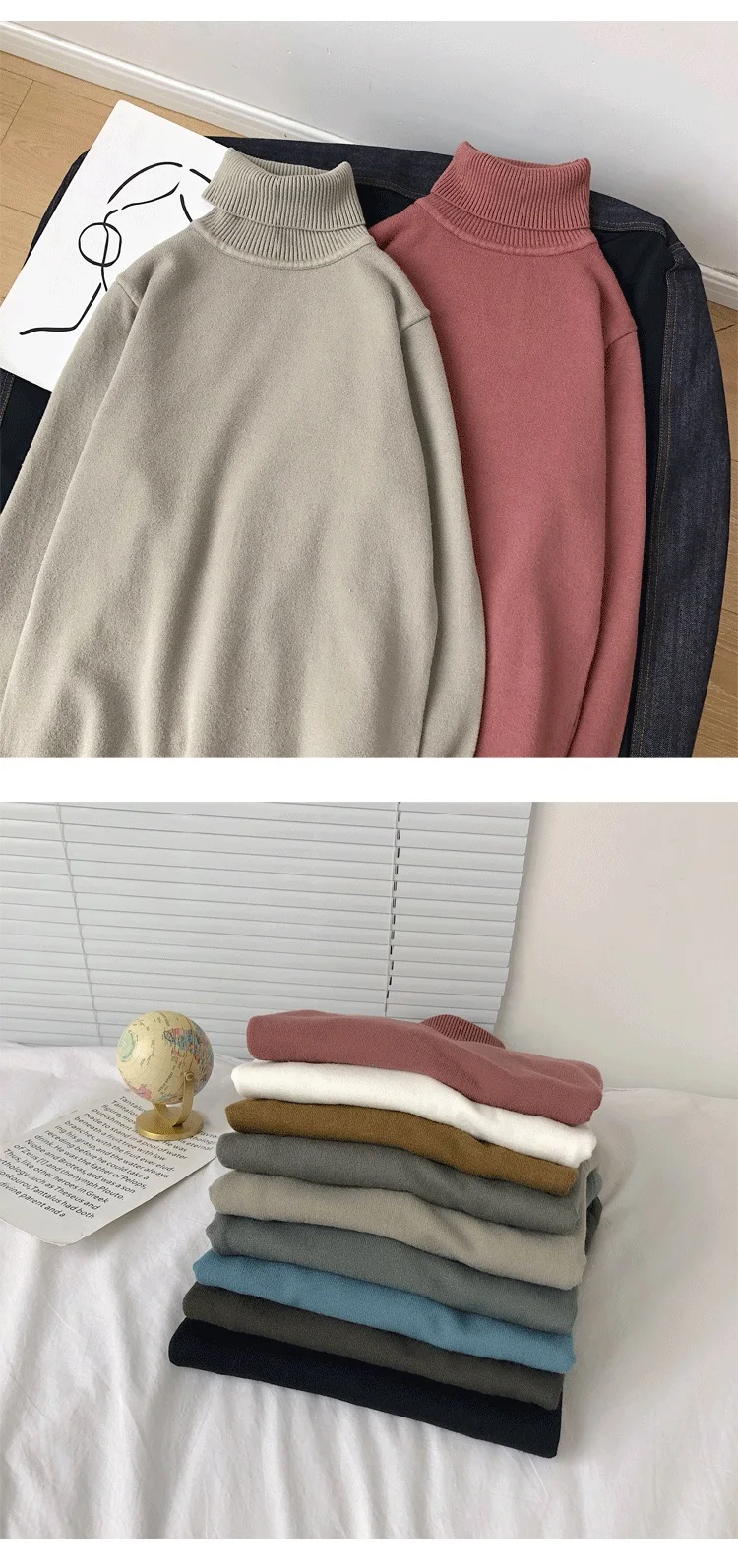 Winter Knitted Sweater Men Solid Color Korean Casual Slim Fit Warm Soft Stretch Cashmere Turtleneck Sweater Men Pullover Clothes