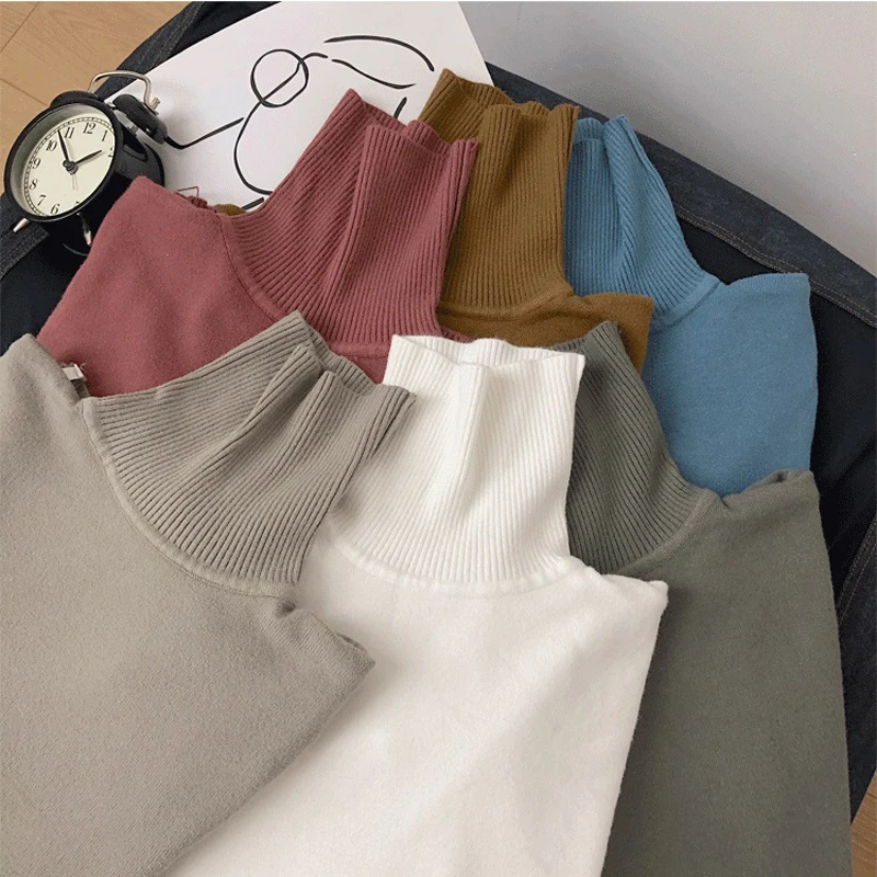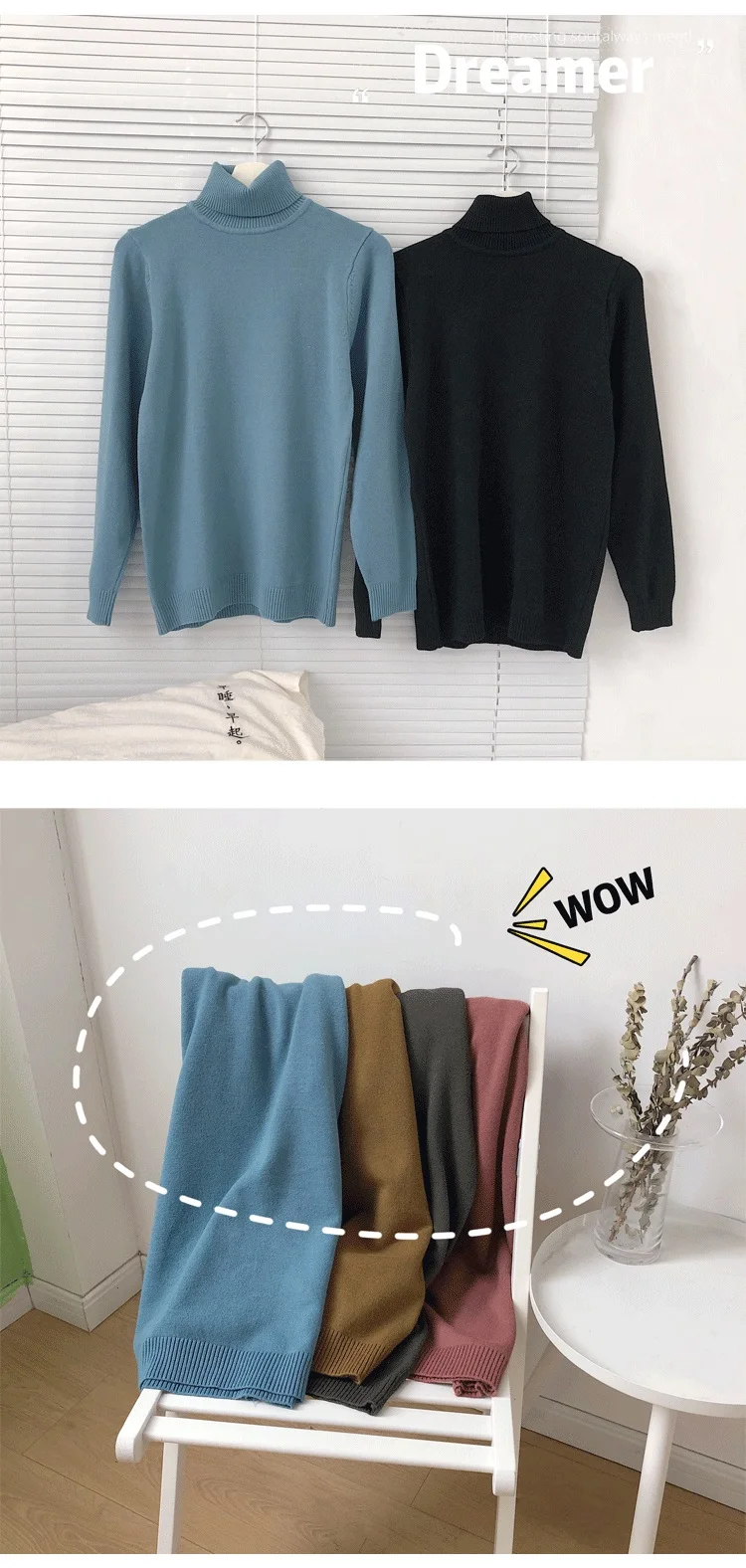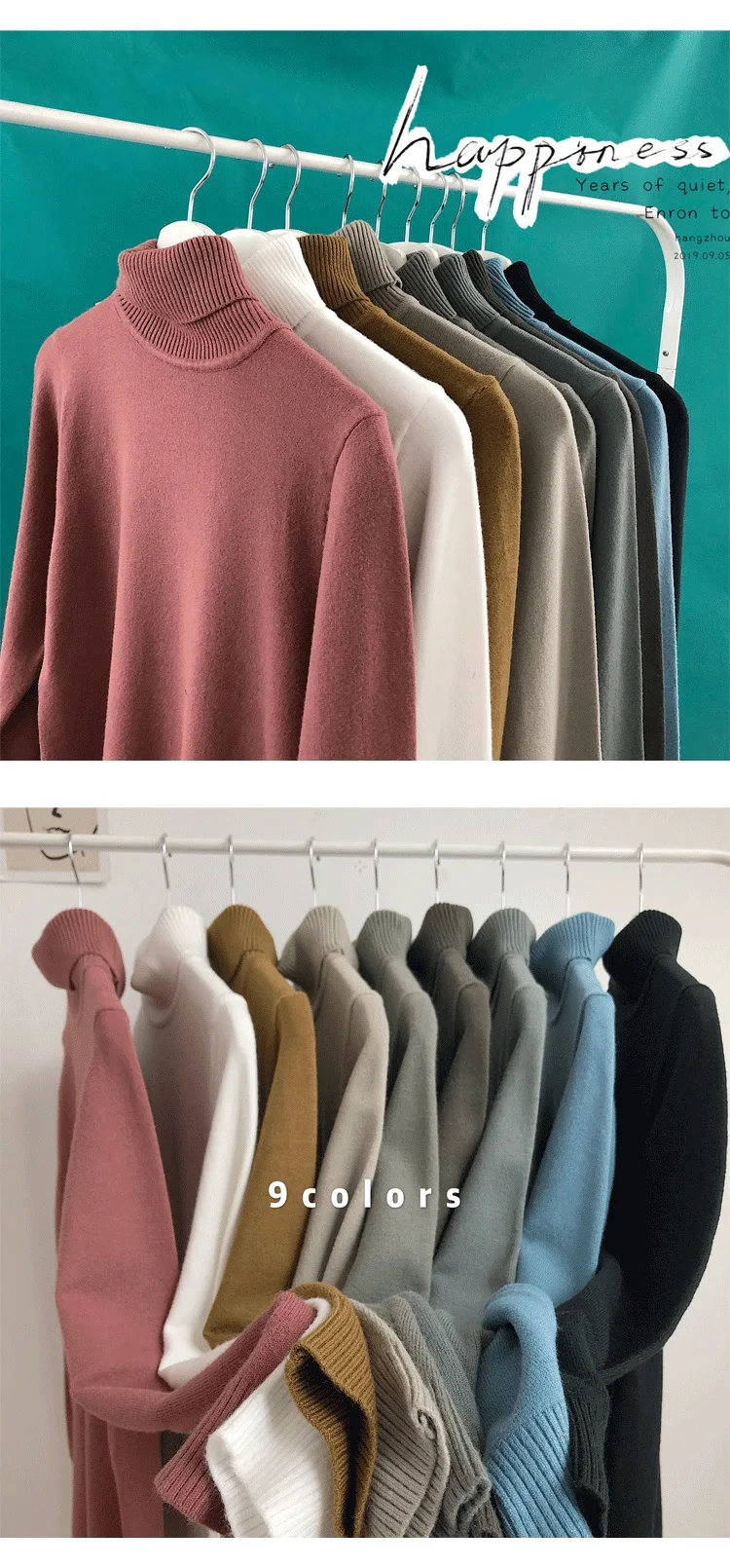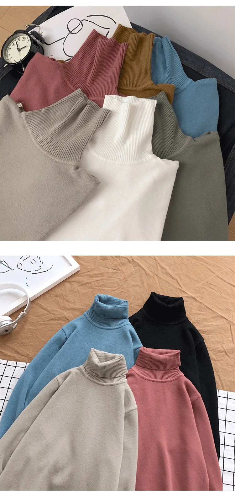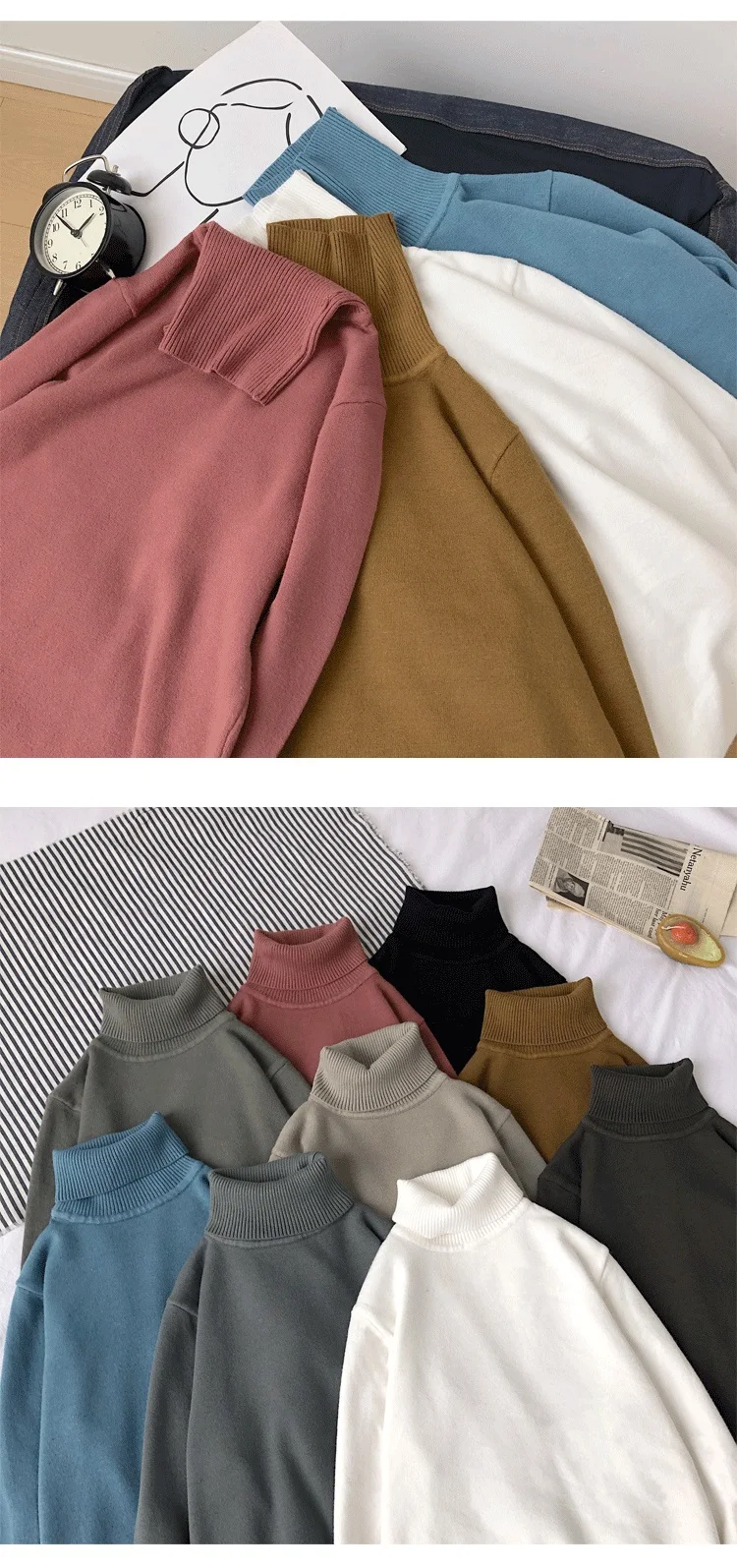 Winter Knitted Sweater Men Solid Color Korean Casual Slim Fit Warm Soft Stretch Cashmere Turtleneck Sweater Men Pullover Clothes