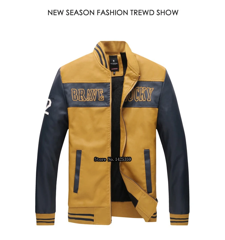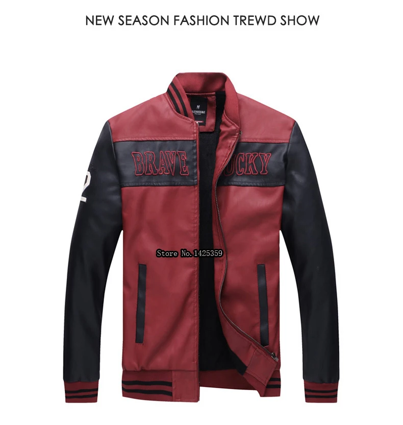 Winter Leather Jacket Men Thick Warm Fleece Jackets Coats Male Baseball Collar Faux Leather Motorcycle PU Leather Jacket Hombre