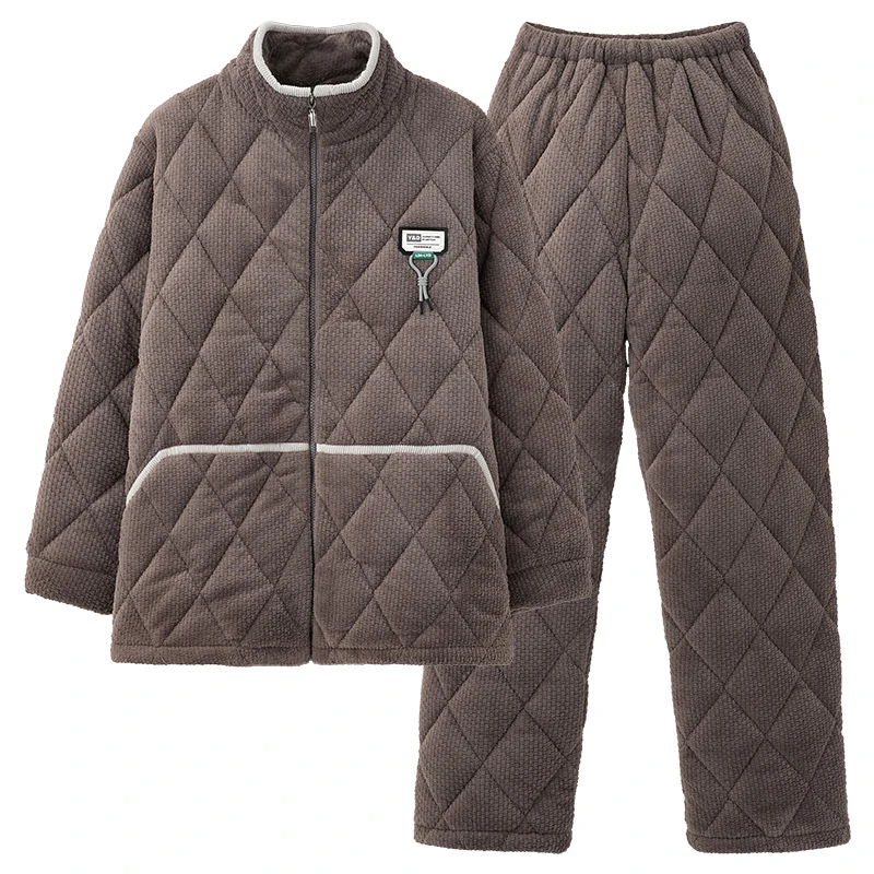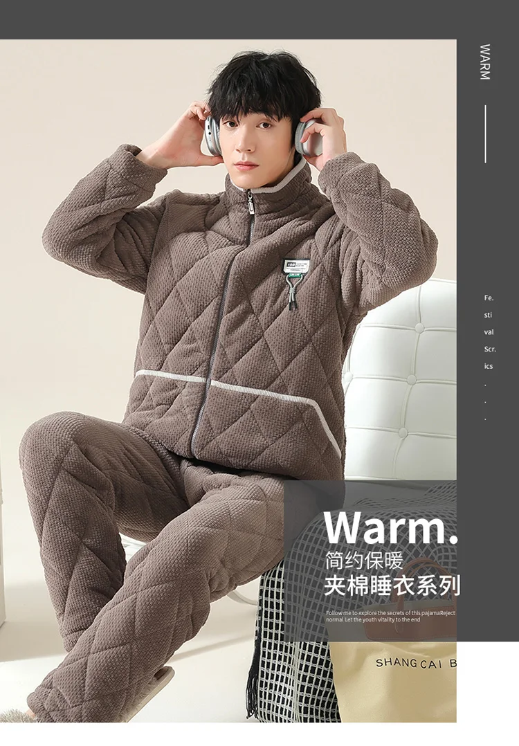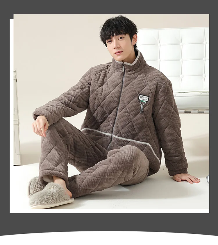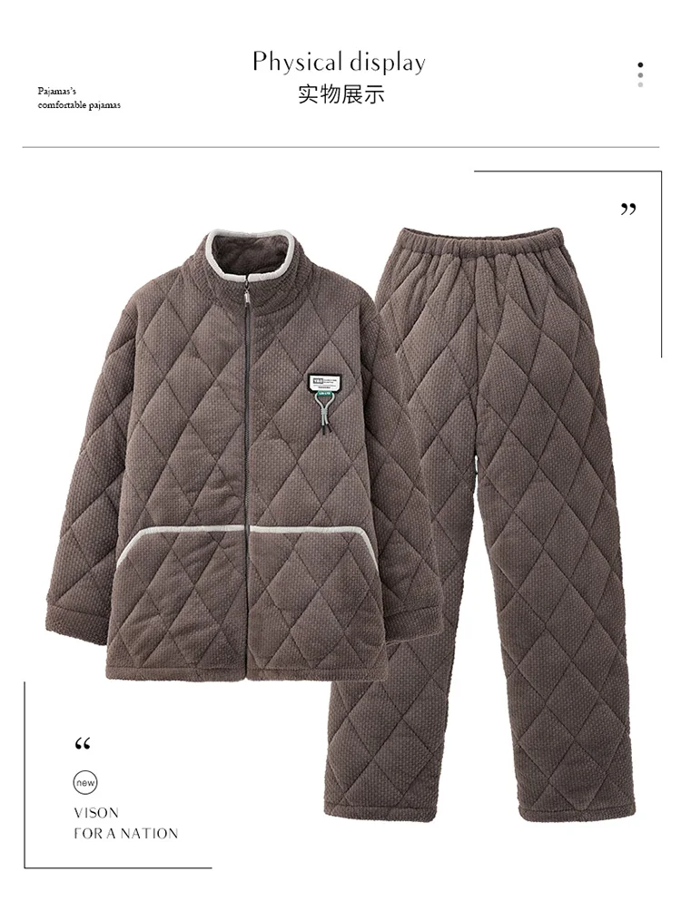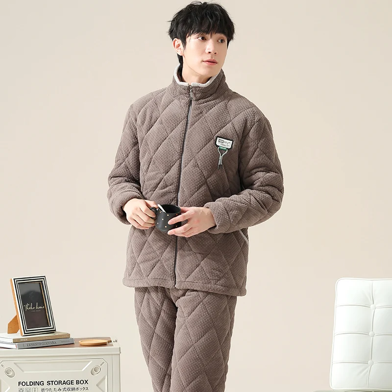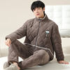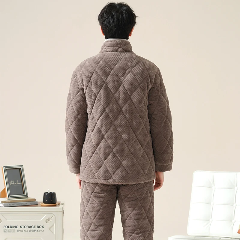 Winter Men Pajamas Set Thick Warm Mens Sleepwear 3 Layer Clip Cotton Pyjamas Male Homewear