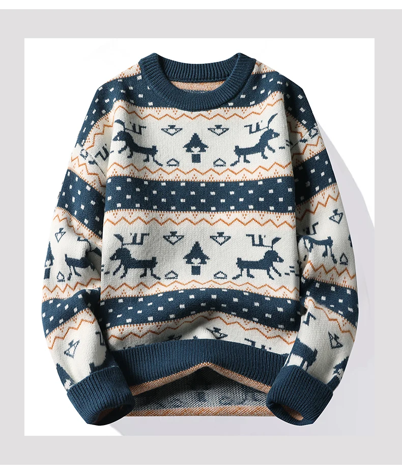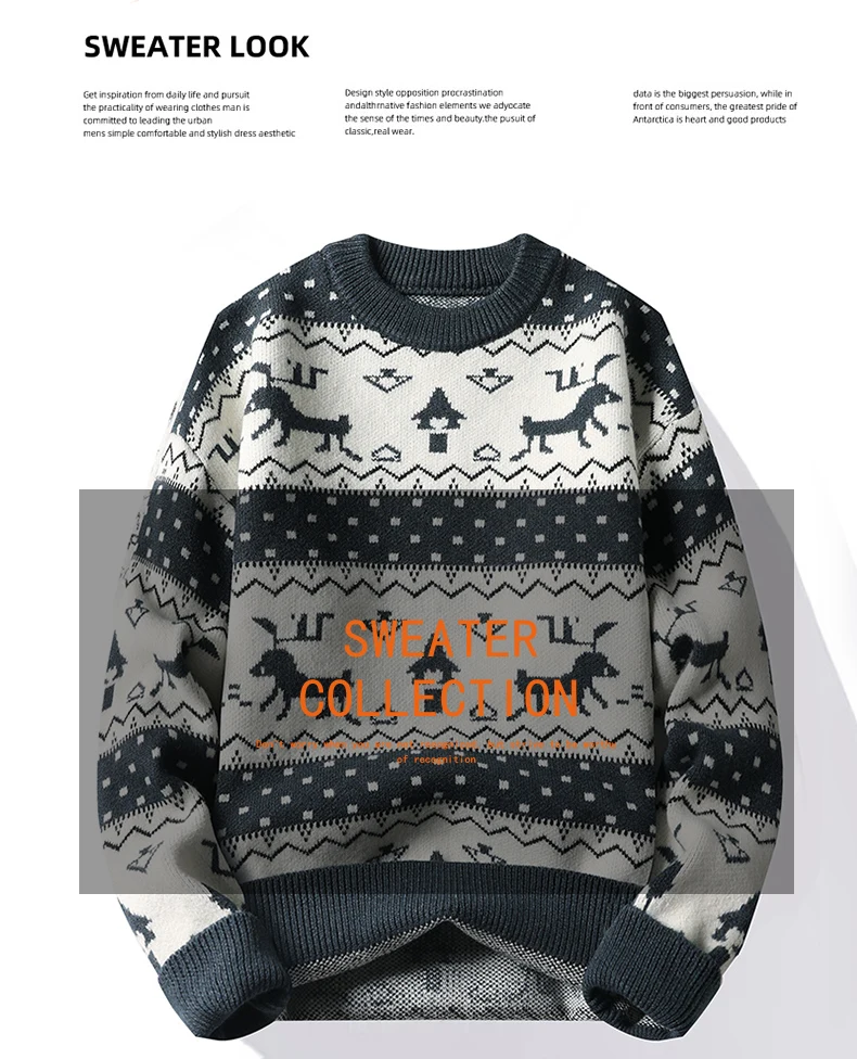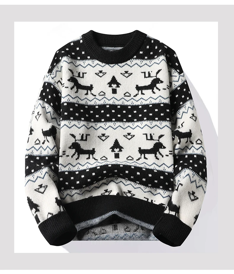 Winter Men Striped Sweater Men Harajuku Mens Jumper Thick Warm O Neck Pullover Men High Quality Male Cartoon Christmas Sweaters