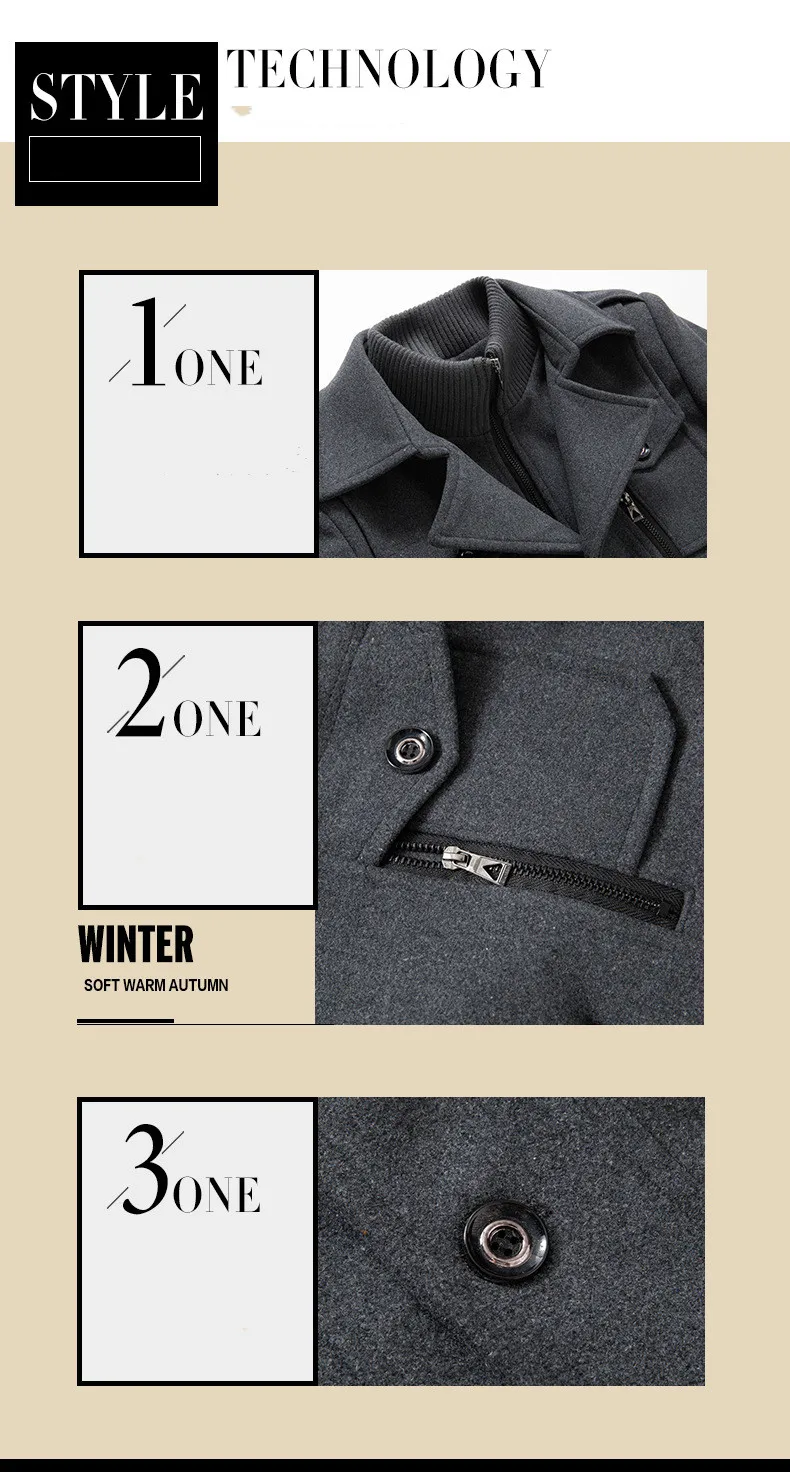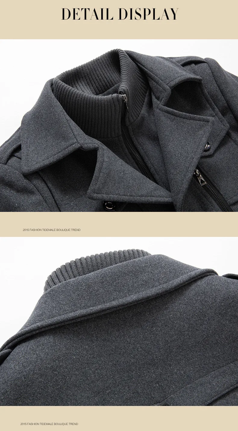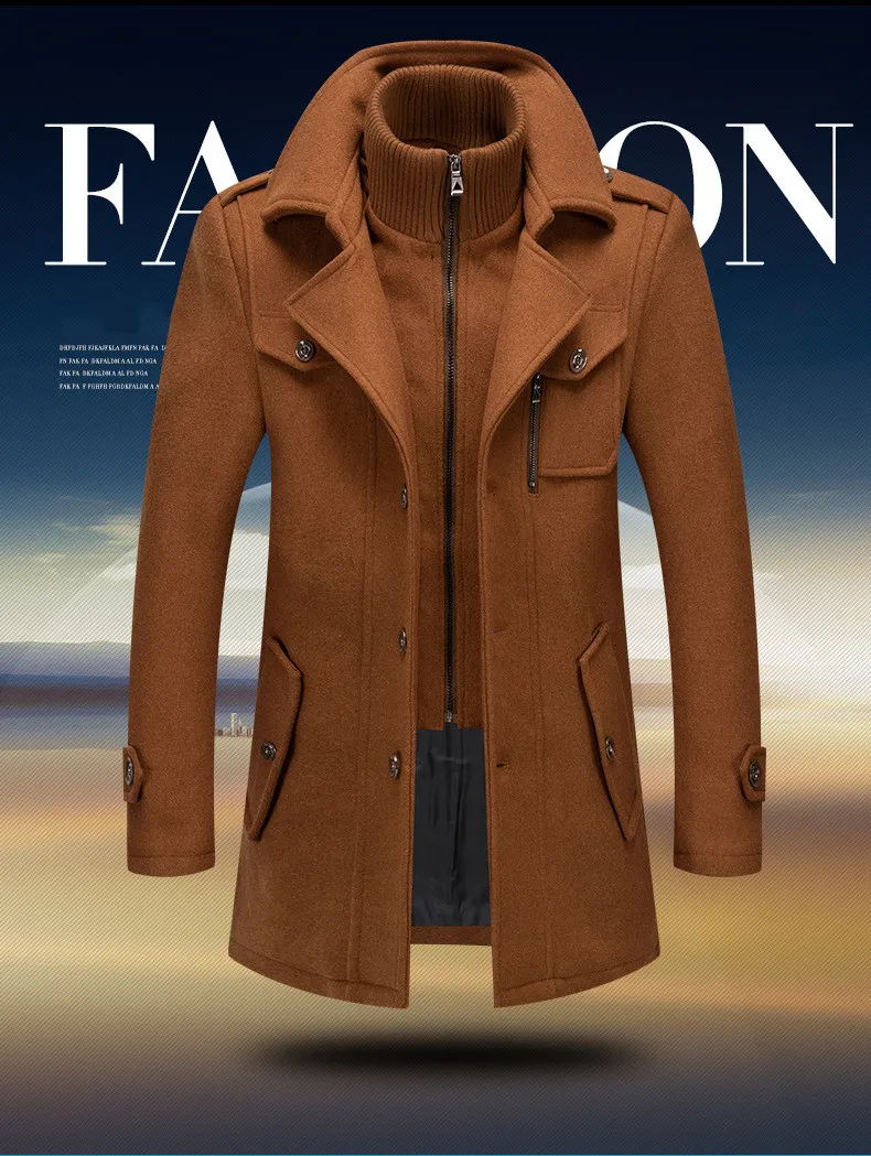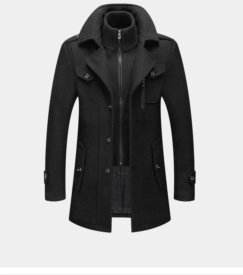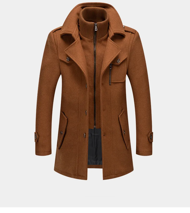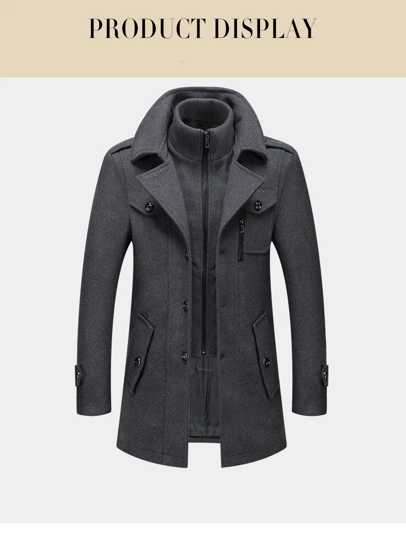 Winter Men Wool Blends Coats Autumn Solid Color Cold Resistant Men Woolen Overcoat Double Collar Business Casual Trench Jacket