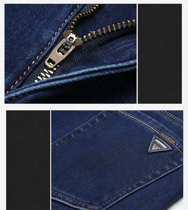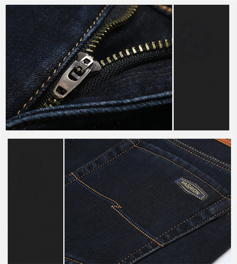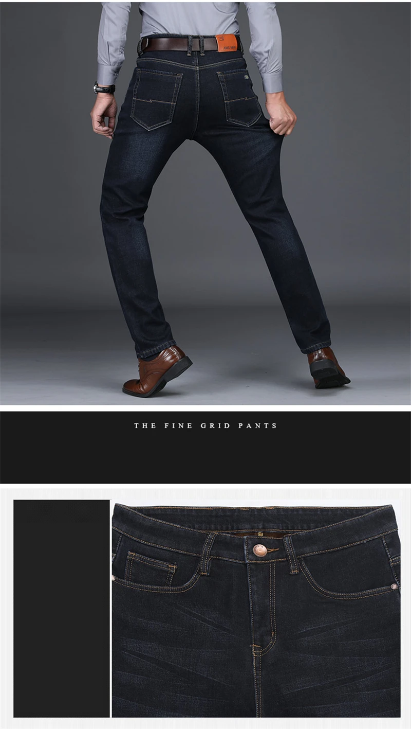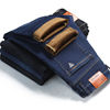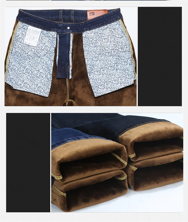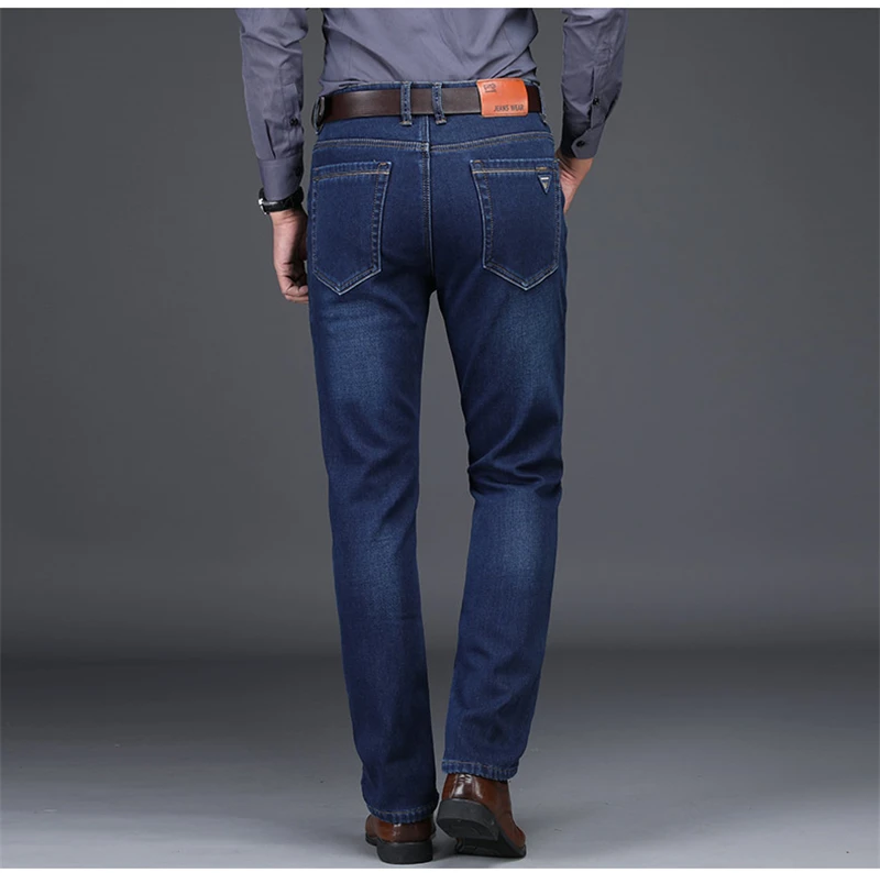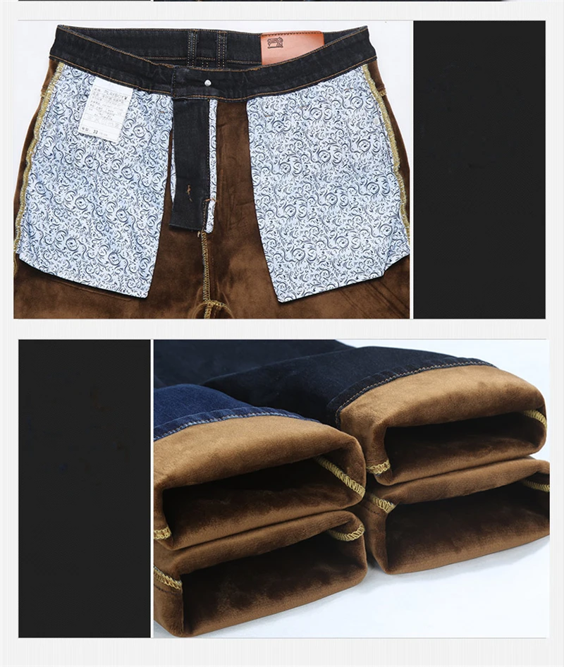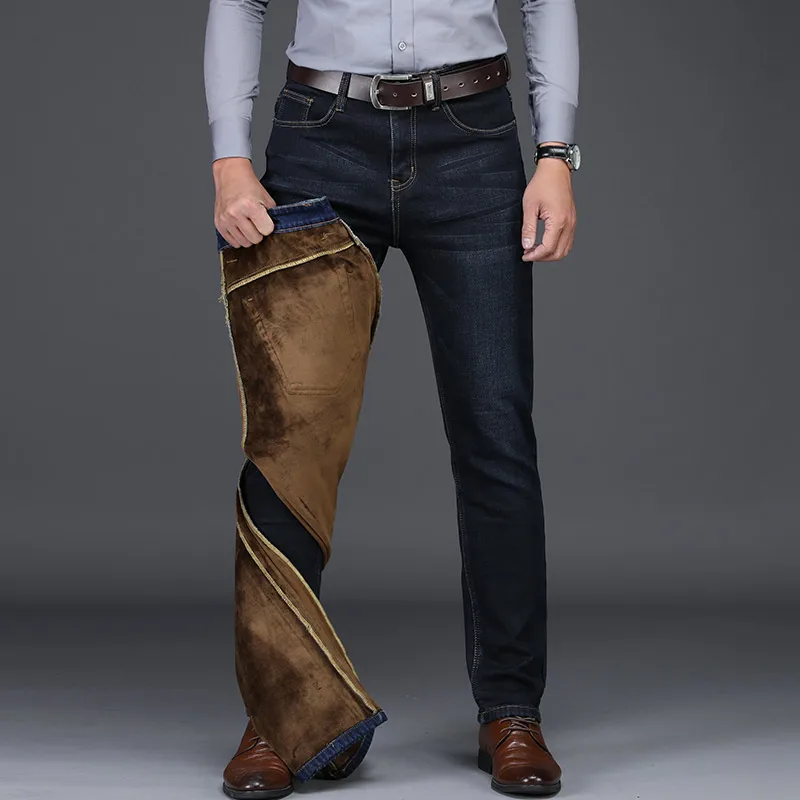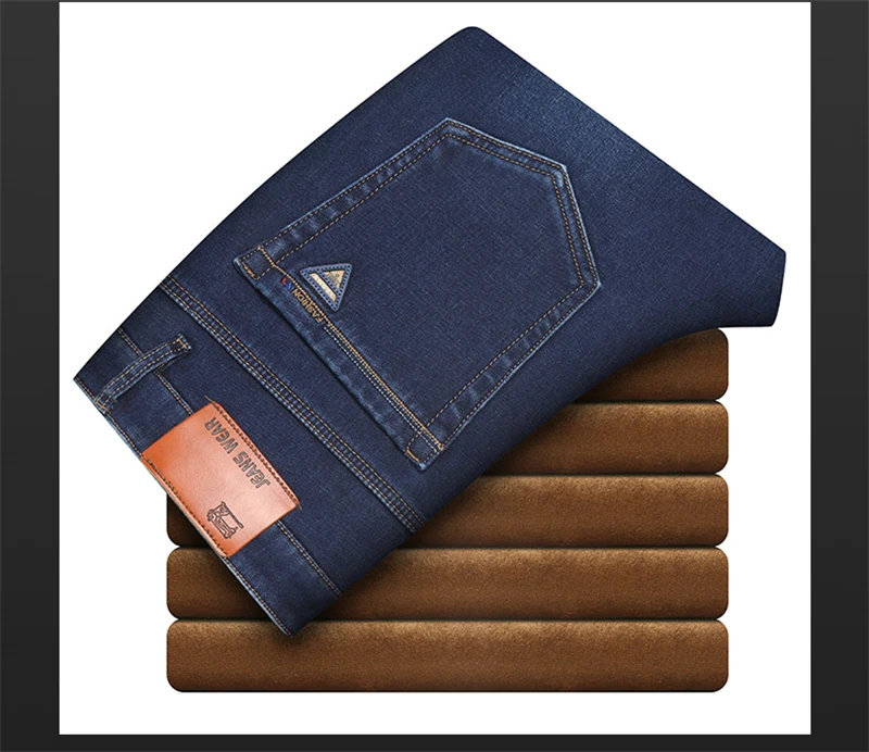 Winter Men’s Fleece Baggy Jeans Business Casual Straight Thick Warm Denim Pants Stretch Black Blue Trousers Male Clothing
