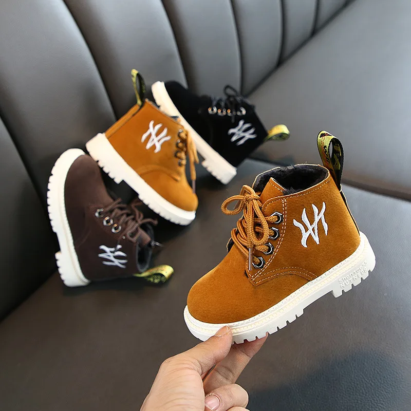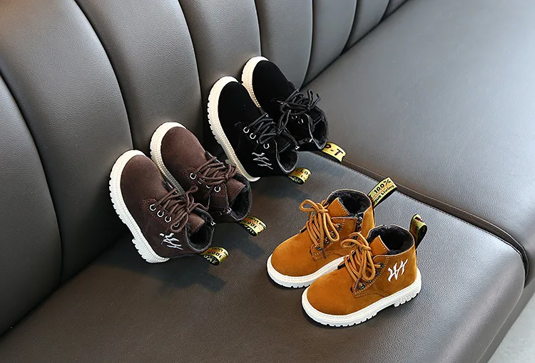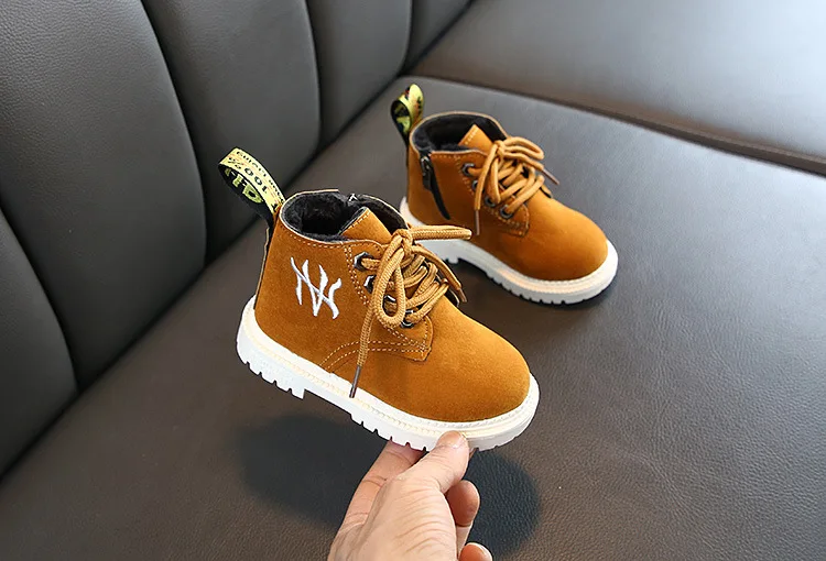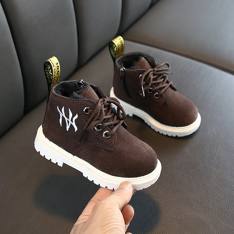 Winter new children’s Martin boots 1-6 years old baby girls boys cotton shoes boots kid’s side zipper plus velvet leather boots