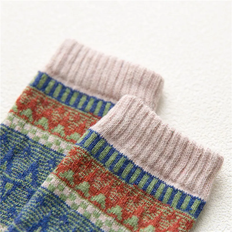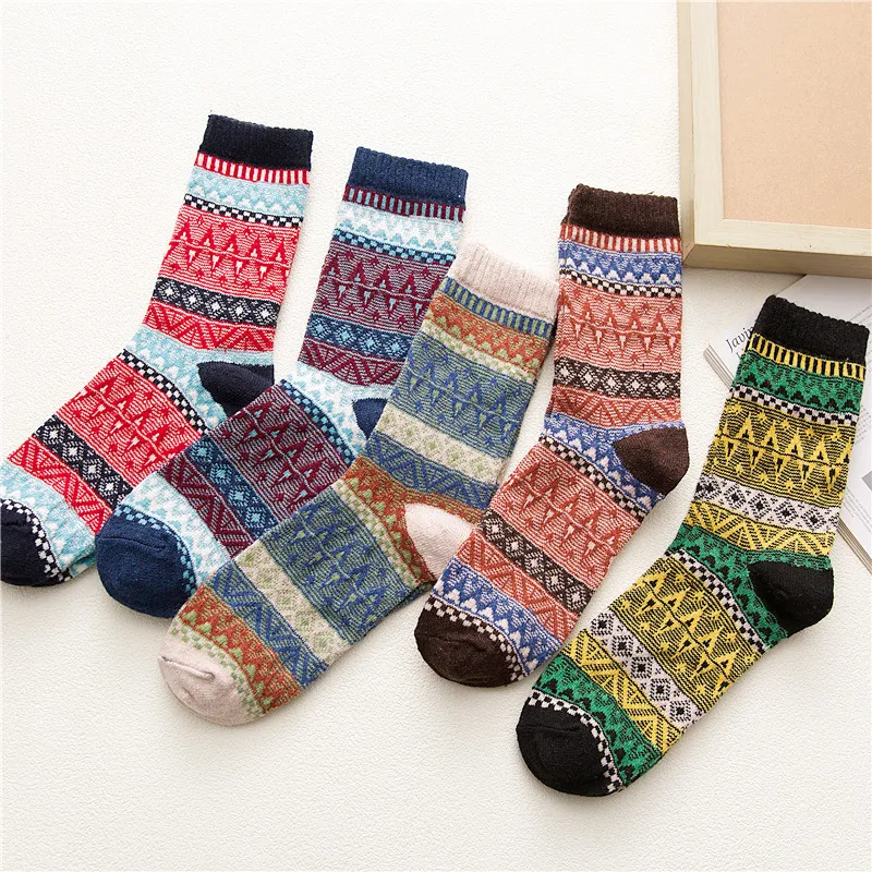 Winter New Men’s Thick Warmth Harajuku Retro High Quality sStriped Fashion Wool Casual Socks 5 Pair