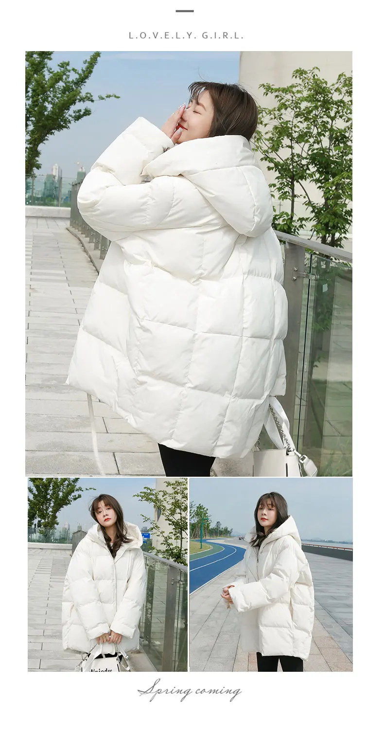 Winter New Style Puffer Jackets Women White Zipper Long Down Jacket Woman Korean Loose Hooded Bubble Coats Female