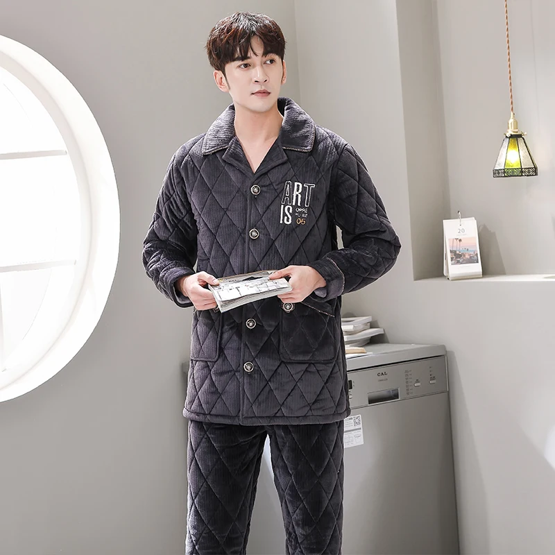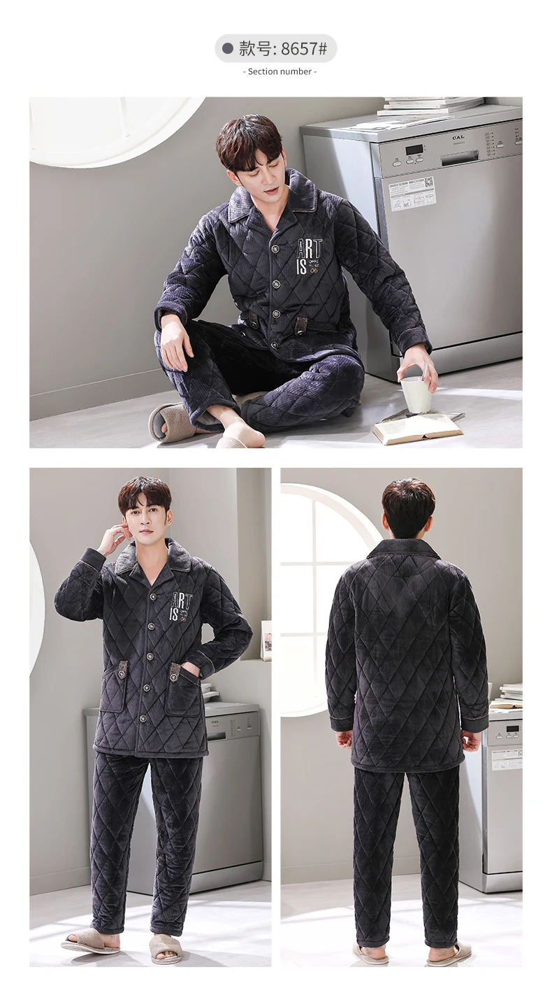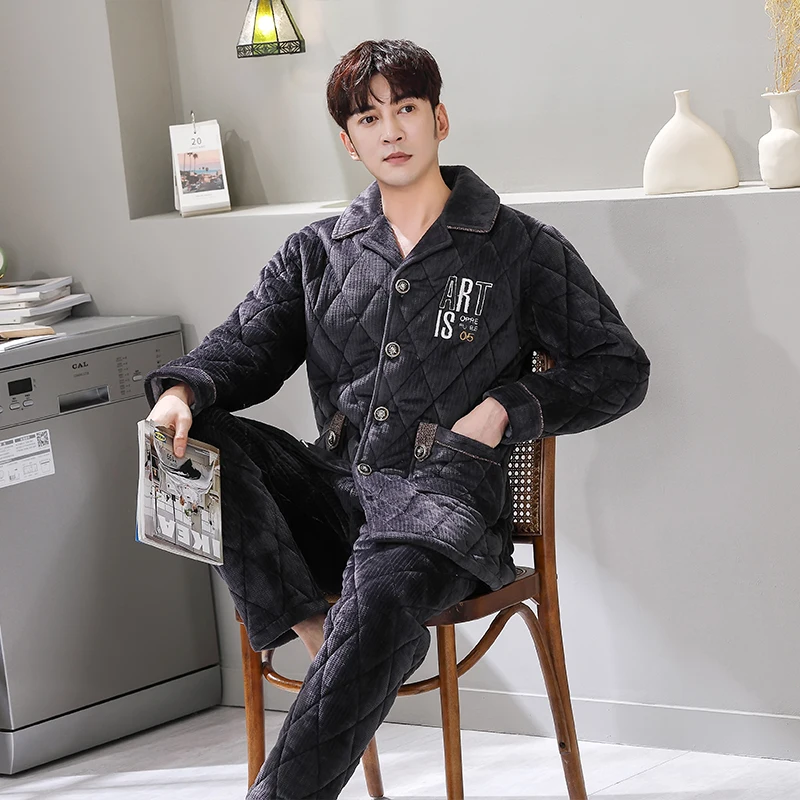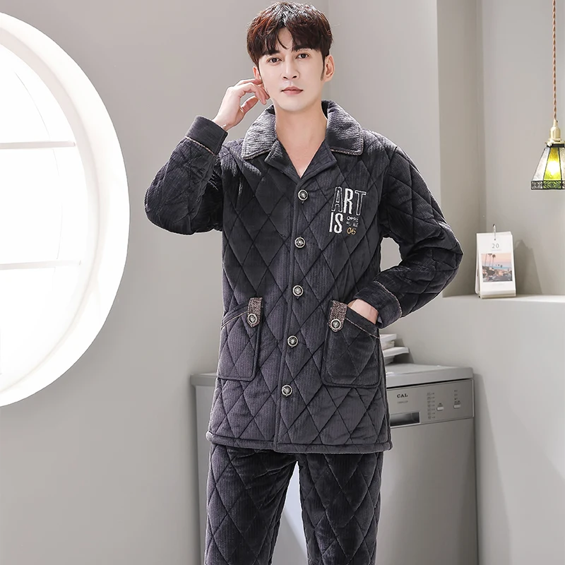 Winter Pajamas For Men Thick Three-layer Quilted Sleepwear Suit 2 Pcs Pyjama Homme Warm Casual Home Clothing Pijamas Hombre