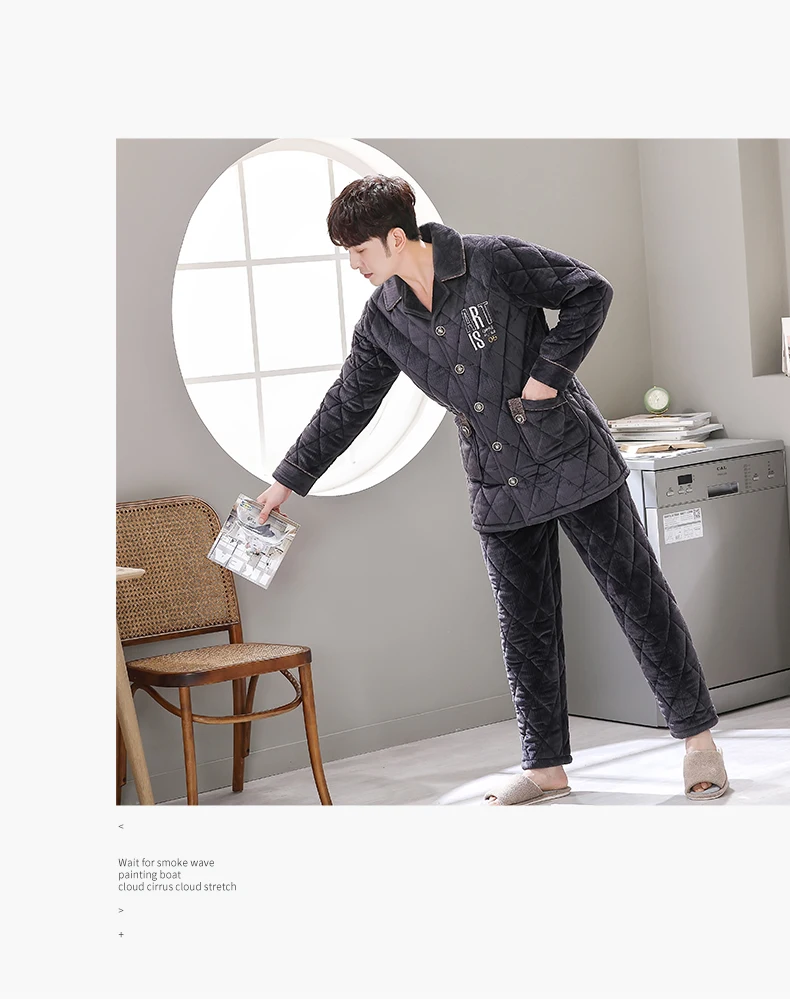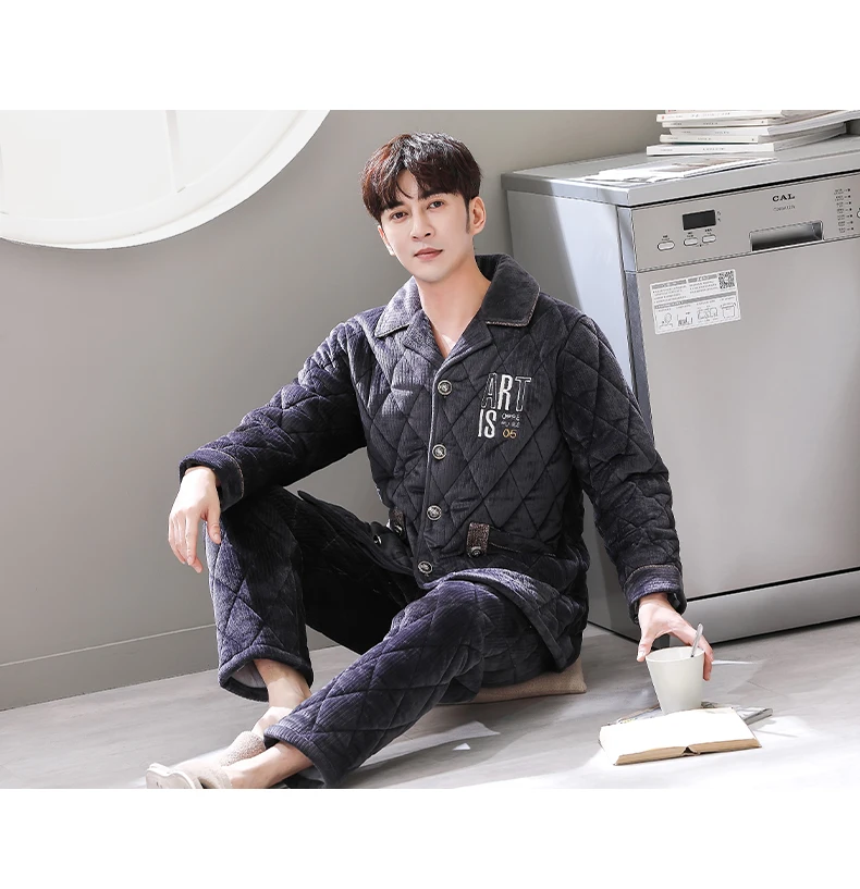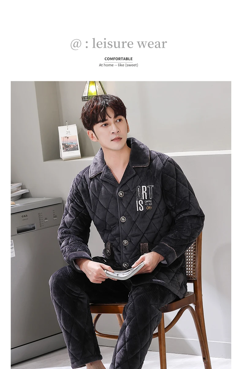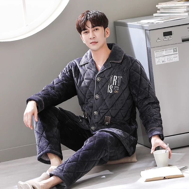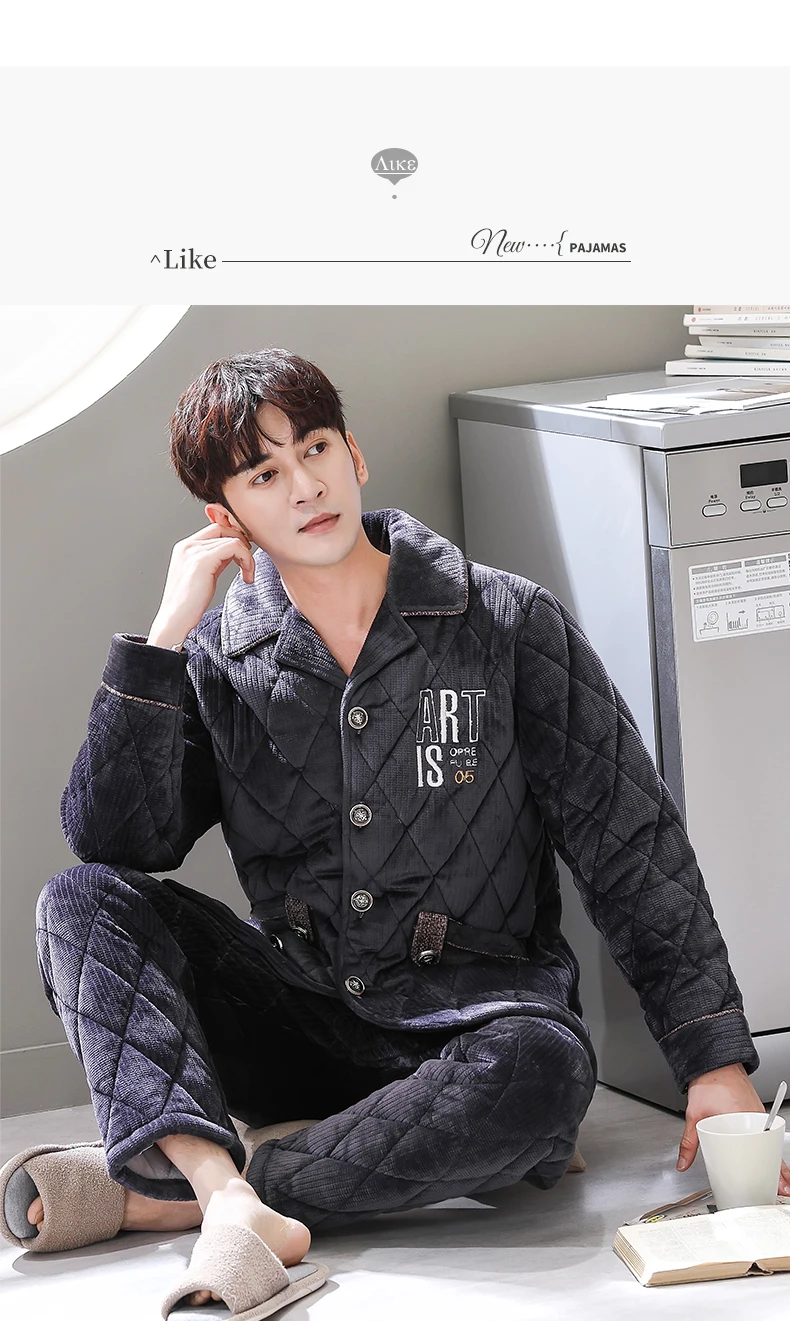 Winter Pajamas For Men Thick Three-layer Quilted Sleepwear Suit 2 Pcs Pyjama Homme Warm Casual Home Clothing Pijamas Hombre