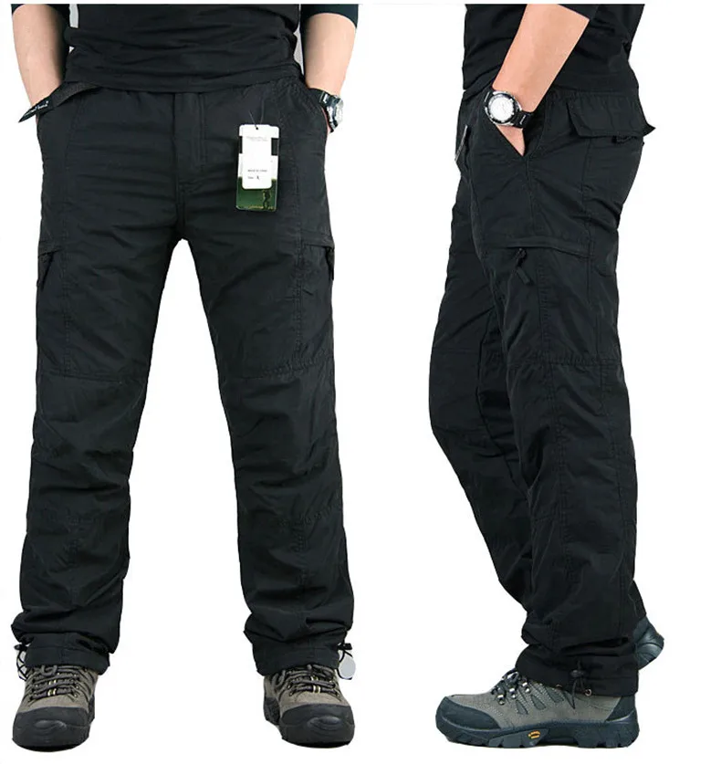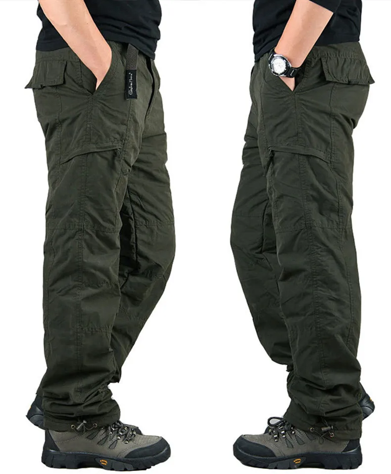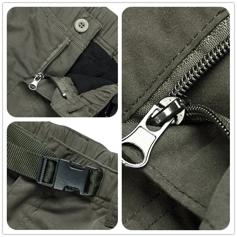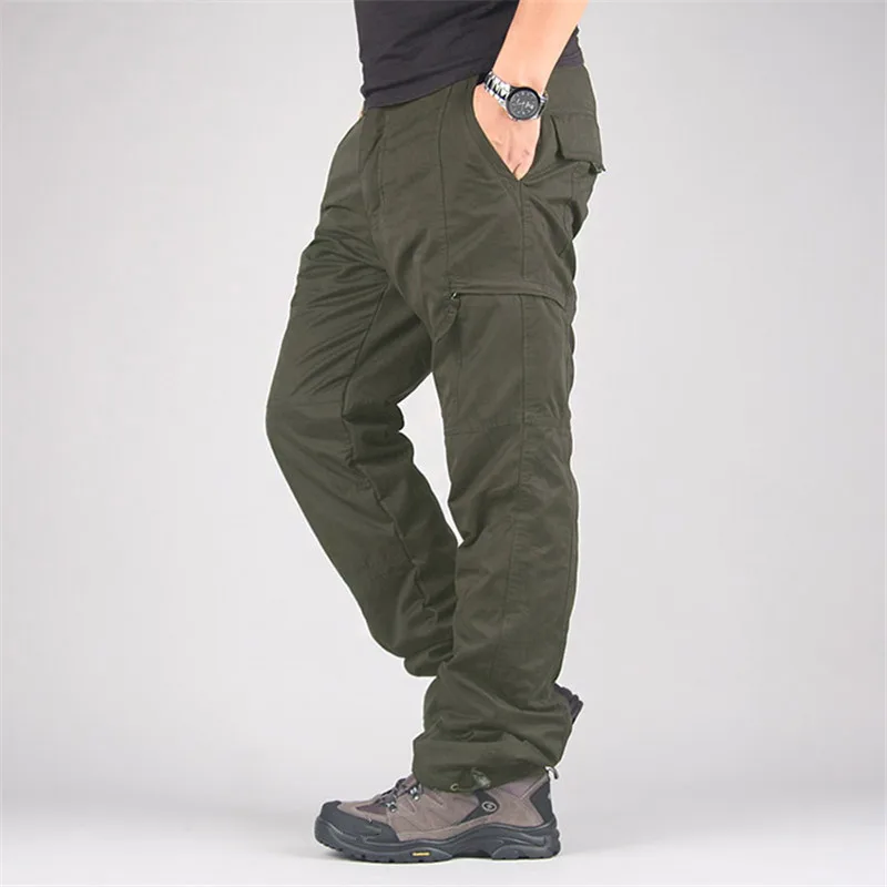 Winter Pants Men Double Layer Fleece Cargo Pants Waterproof Overalls Thick Warm Baggy Rip-Stop Trousers Military Tactical Pants