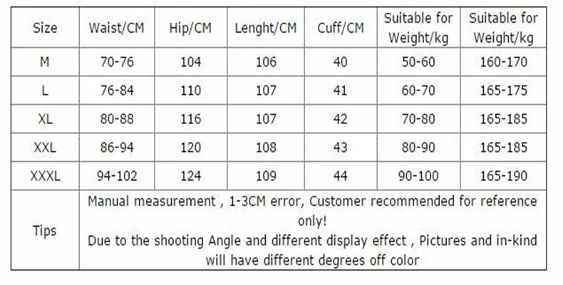 (There are 1-3cm margin of error, If you are not sure the size, Please send the information of your Height, Weight and Chest to me, I will help you choose the correct size. )