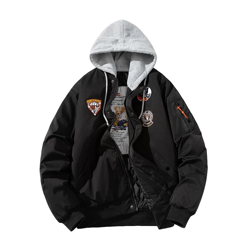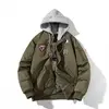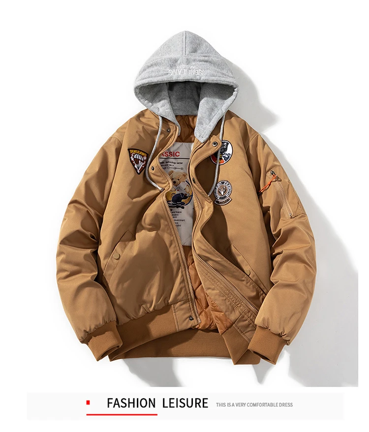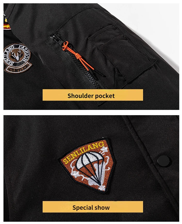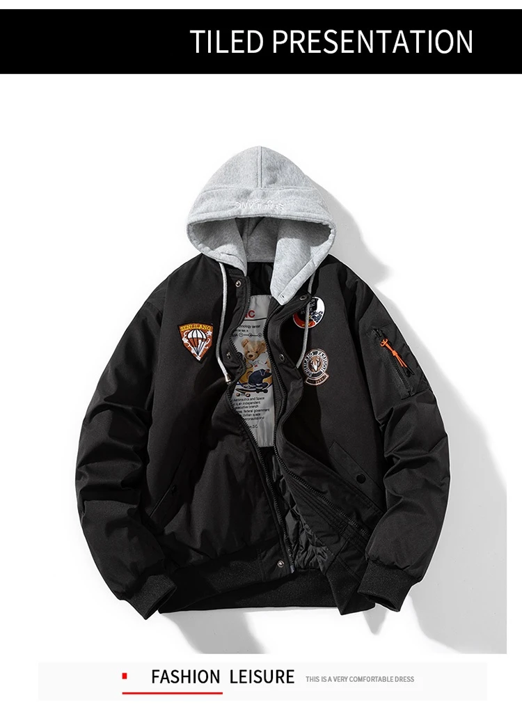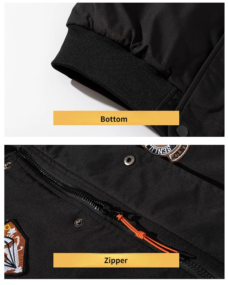 Winter Pilot Jackets Men Military Bomber Jacket Badge Embriodery Basketball Coat Hooded Parkas Male Fashion Autumn Black Brown