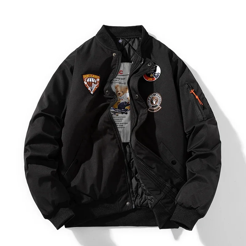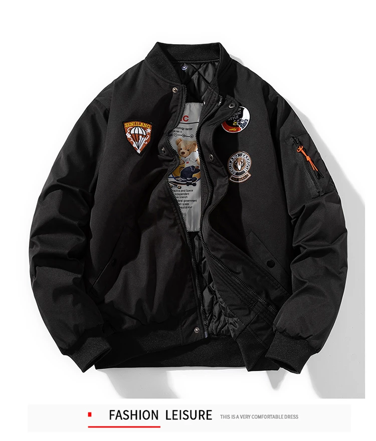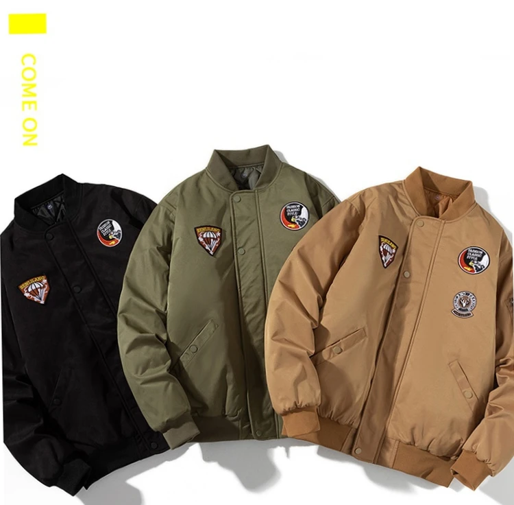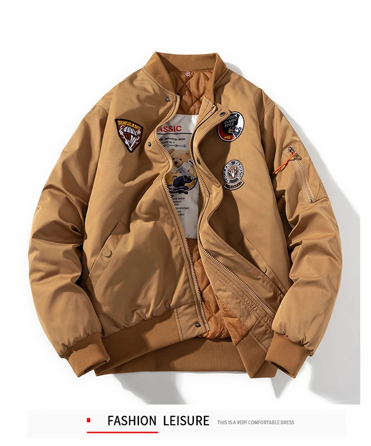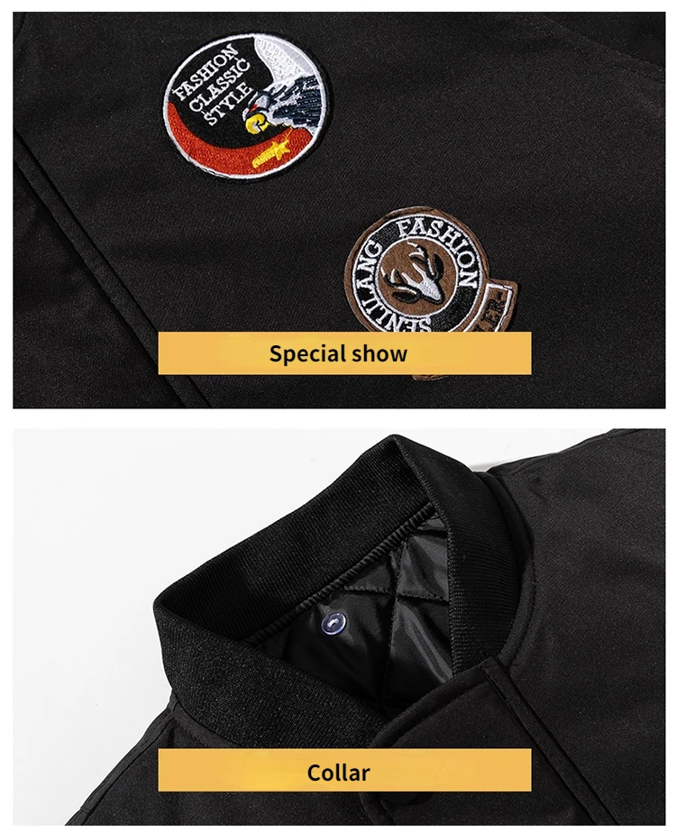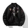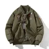 Winter Pilot Jackets Men Military Bomber Jacket Badge Embriodery Basketball Coat Hooded Parkas Male Fashion Autumn Black Brown